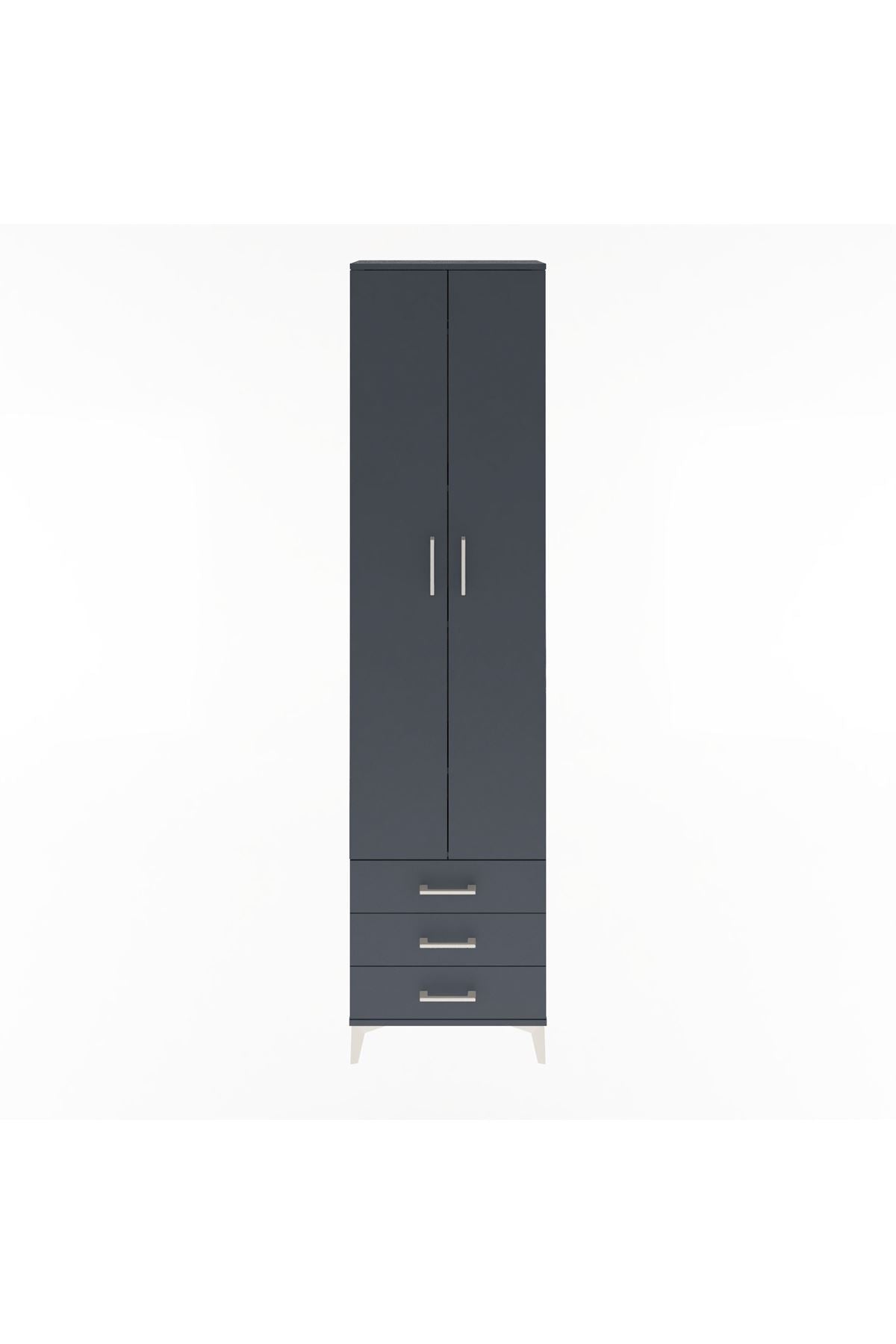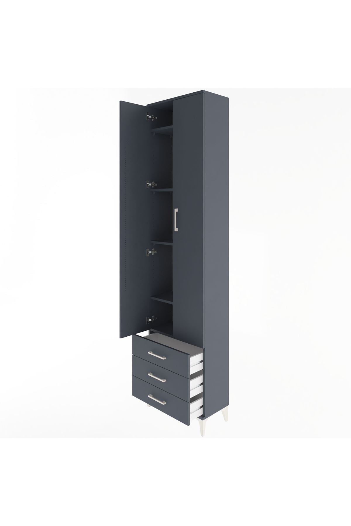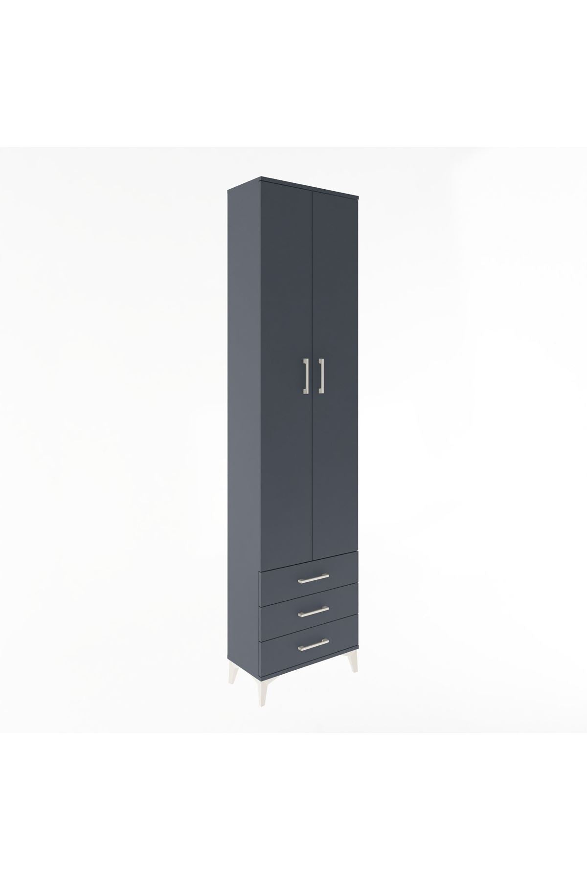Arges Dolap 5 Raflı 3 Çekmeceli 2 Kapaklı 60x30x243 Antrasit-Antrasit