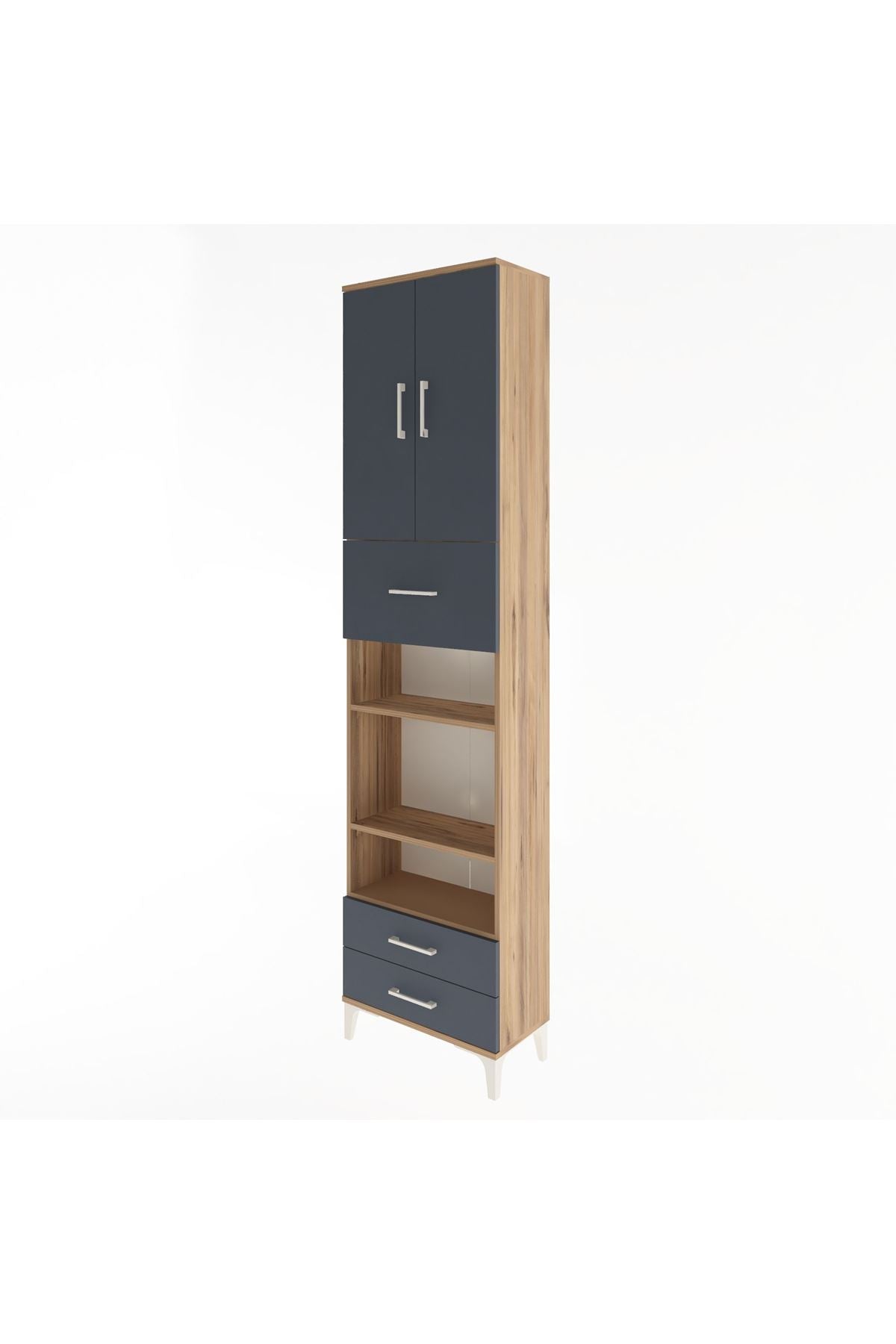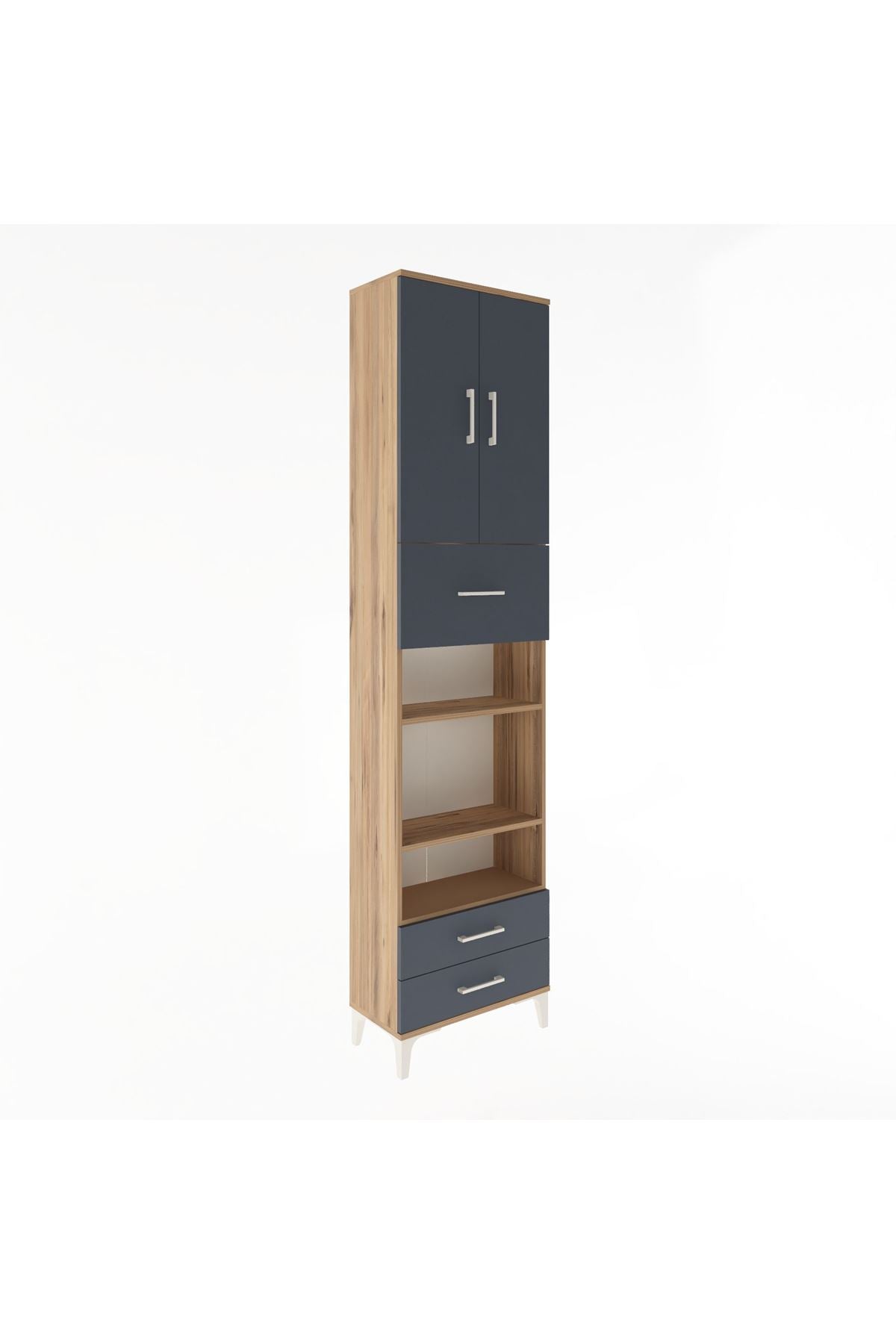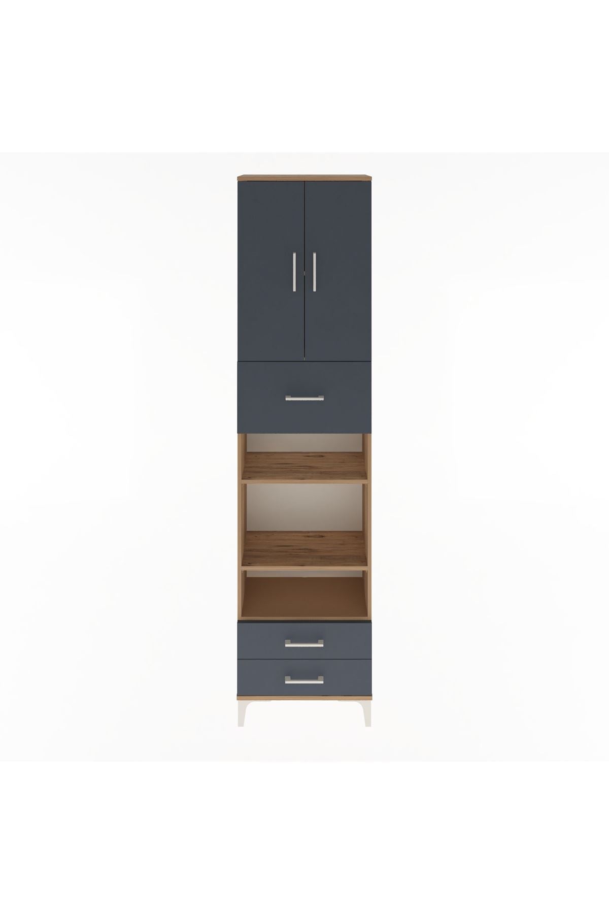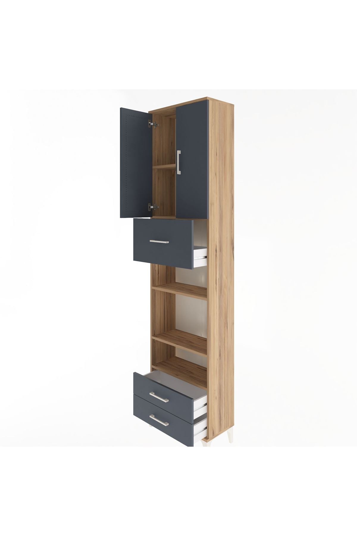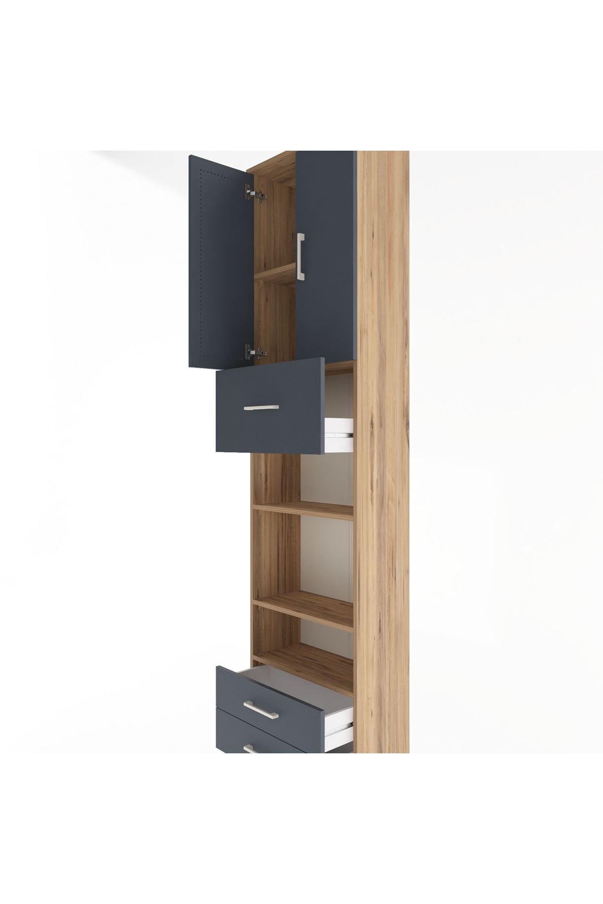 Arges Dolap 5 Raflı 3 Çekmeceli 2 Kapaklı 60x30x243 Çam-Antrasit