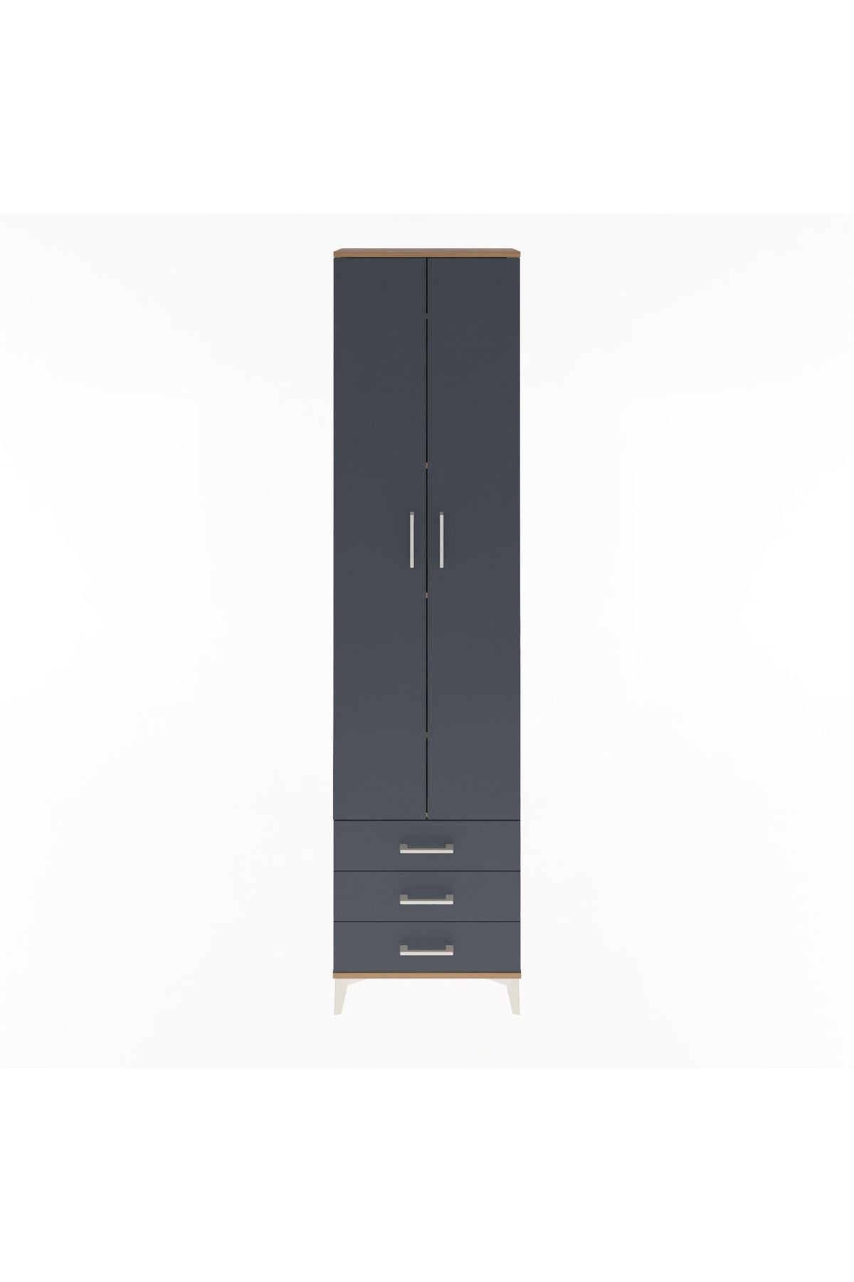 Arges Dolap 5 Raflı 3 Çekmeceli 2 Kapaklı 60x30x243 Çam-Antrasit