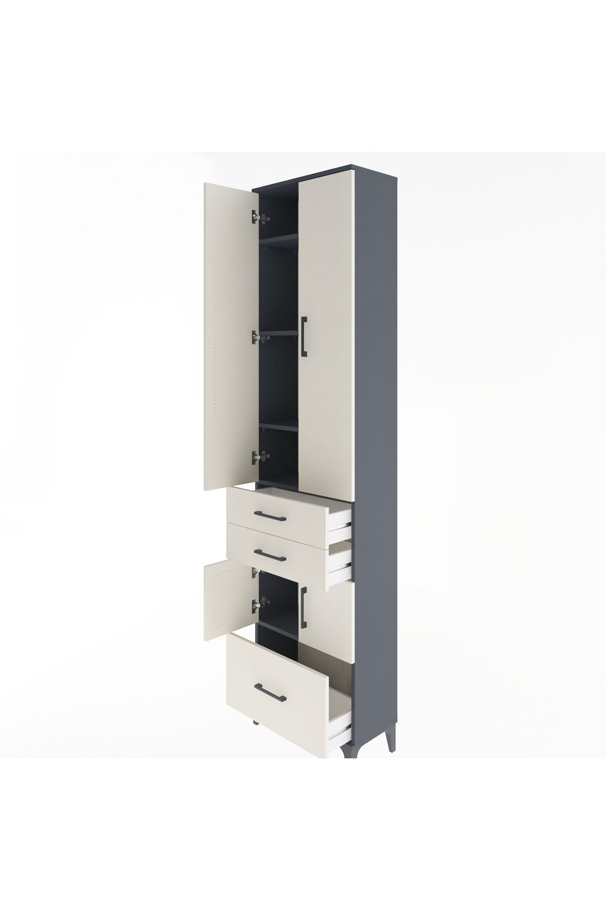 Arges Dolap 5 Raflı 3 Çekmeceli 4 Kapaklı 60x30x243 Antrasit-Aytaşı