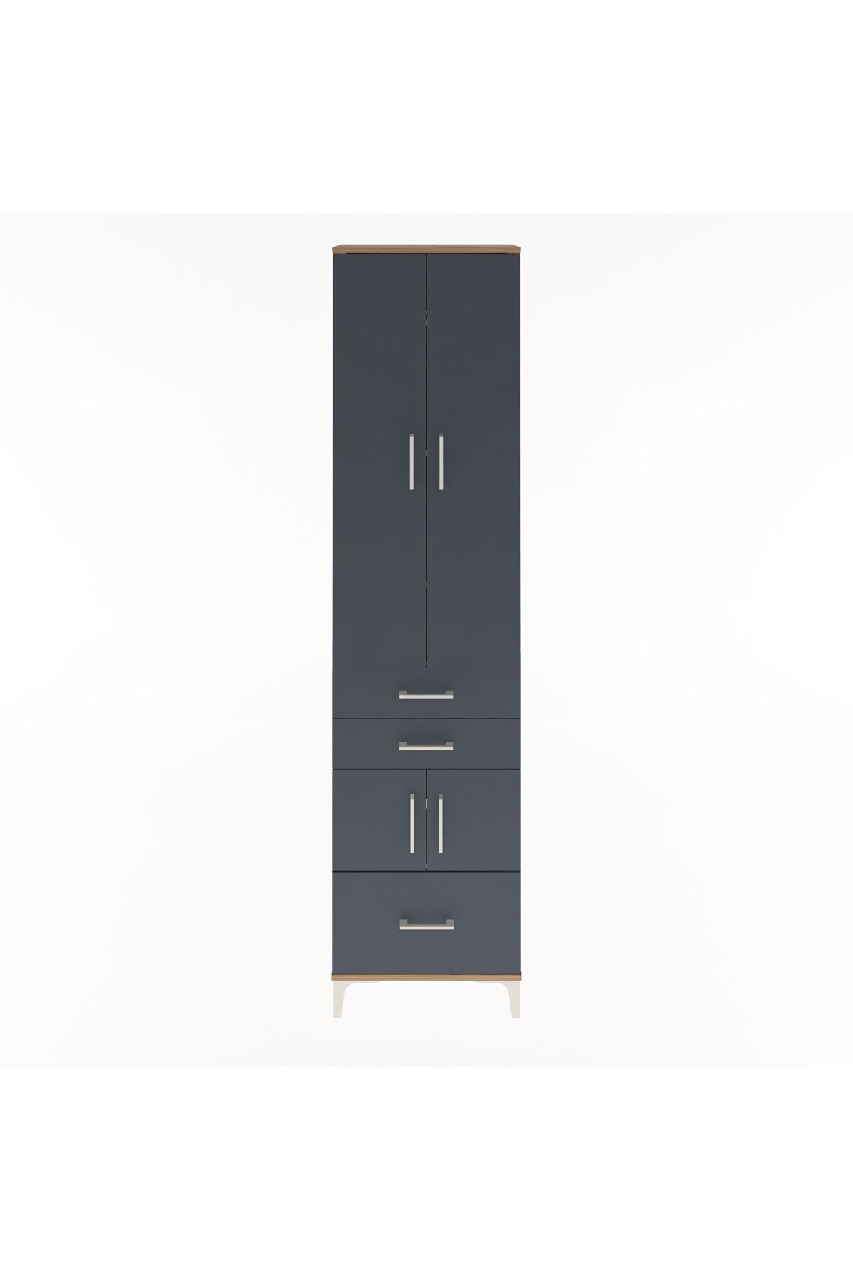 Arges Dolap 5 Raflı 3 Çekmeceli 4 Kapaklı 60x30x243 Çam-Antrasit
