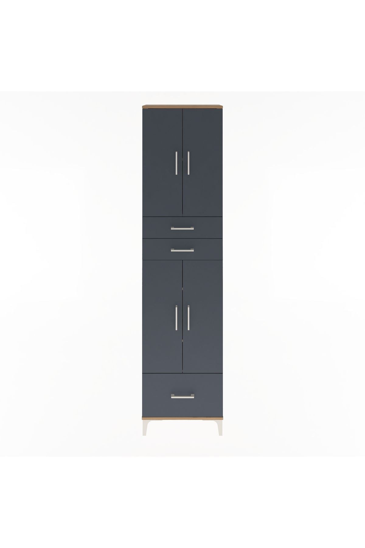 Arges Dolap 5 Raflı 3 Çekmeceli 4 Kapaklı 60x30x243 Çam-Antrasit