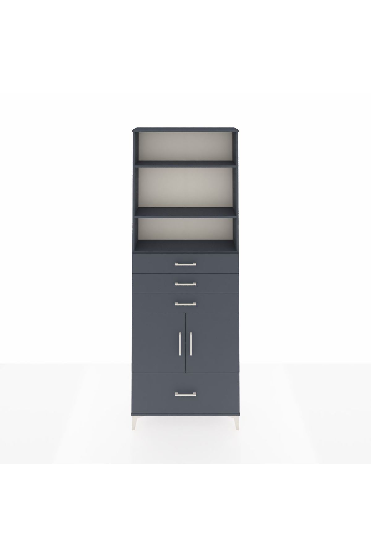 Arges Dolap 5 Raflı 4 Çekmeceli 2 Kapaklı 88x30x243 Antrasit-Antrasit