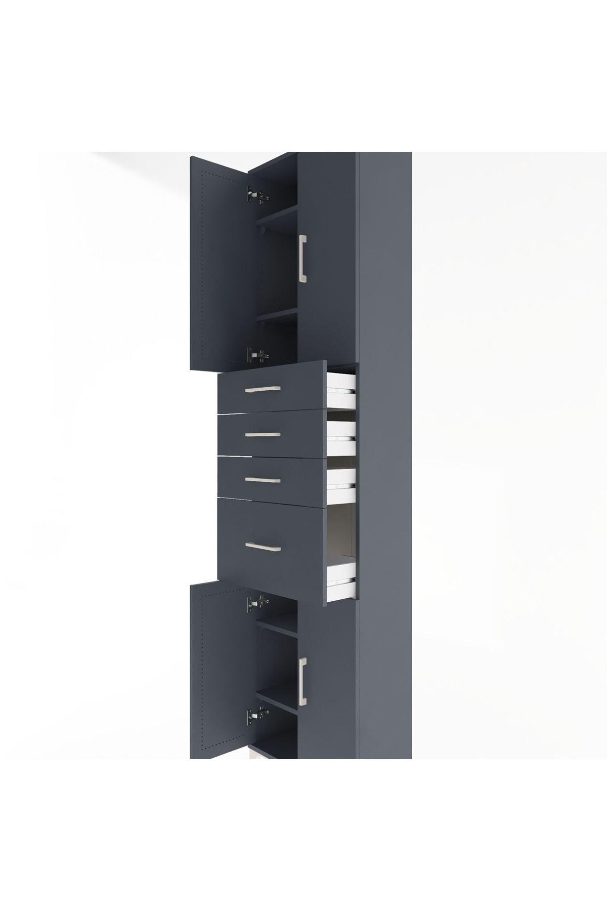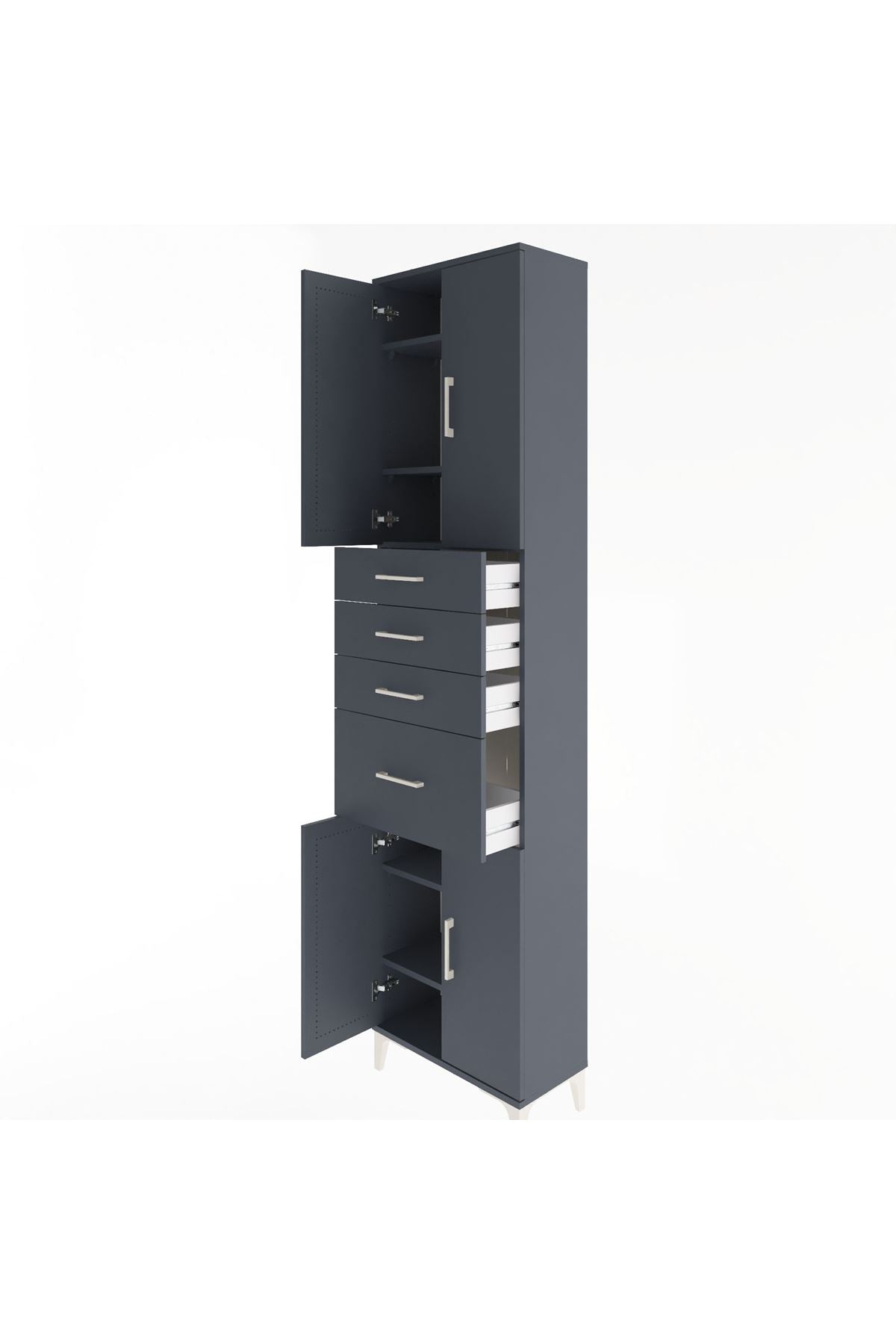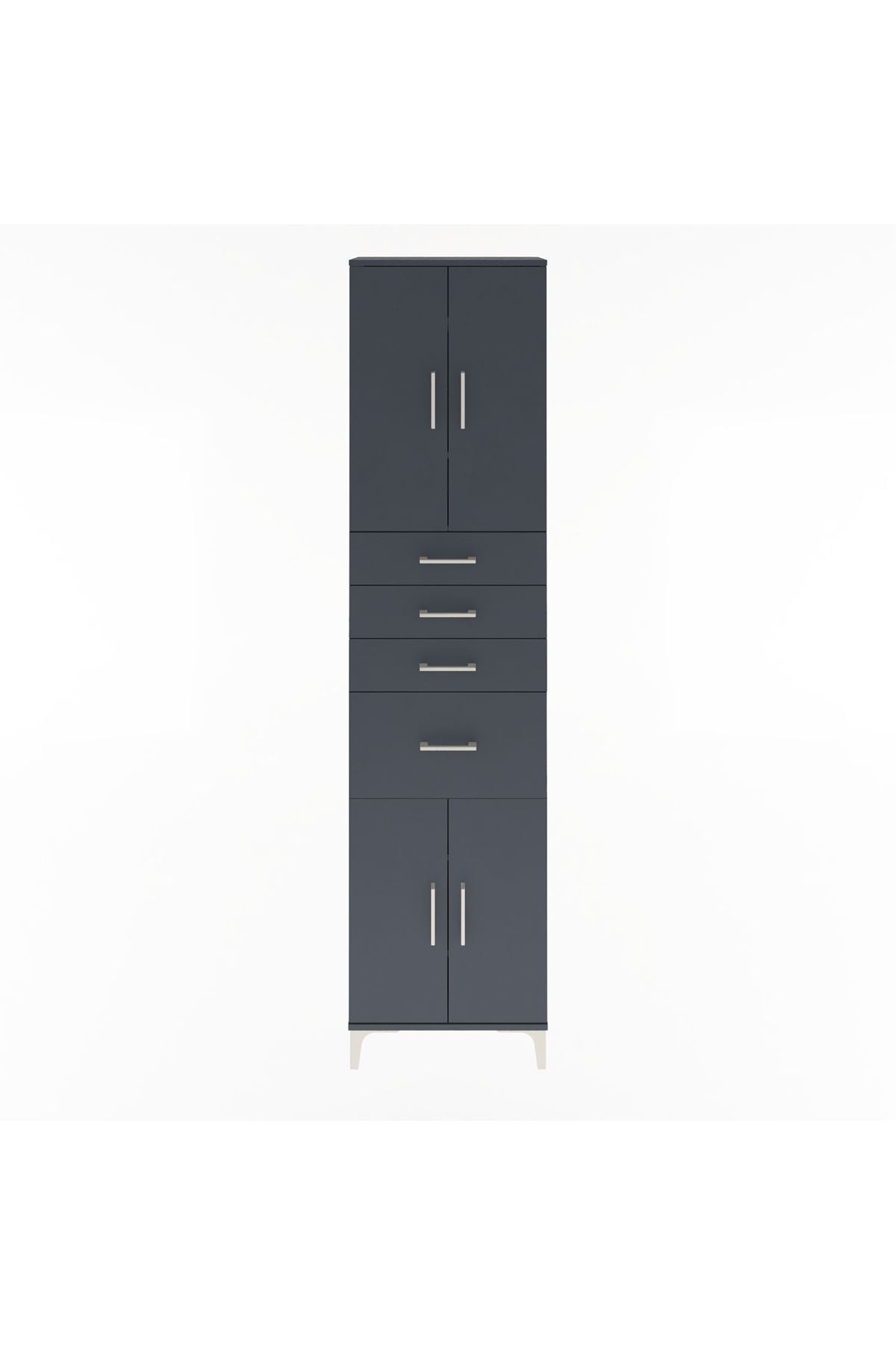 Arges Dolap 5 Raflı 4 Çekmeceli 4 Kapaklı 60x30x243 Antrasit-Antrasit