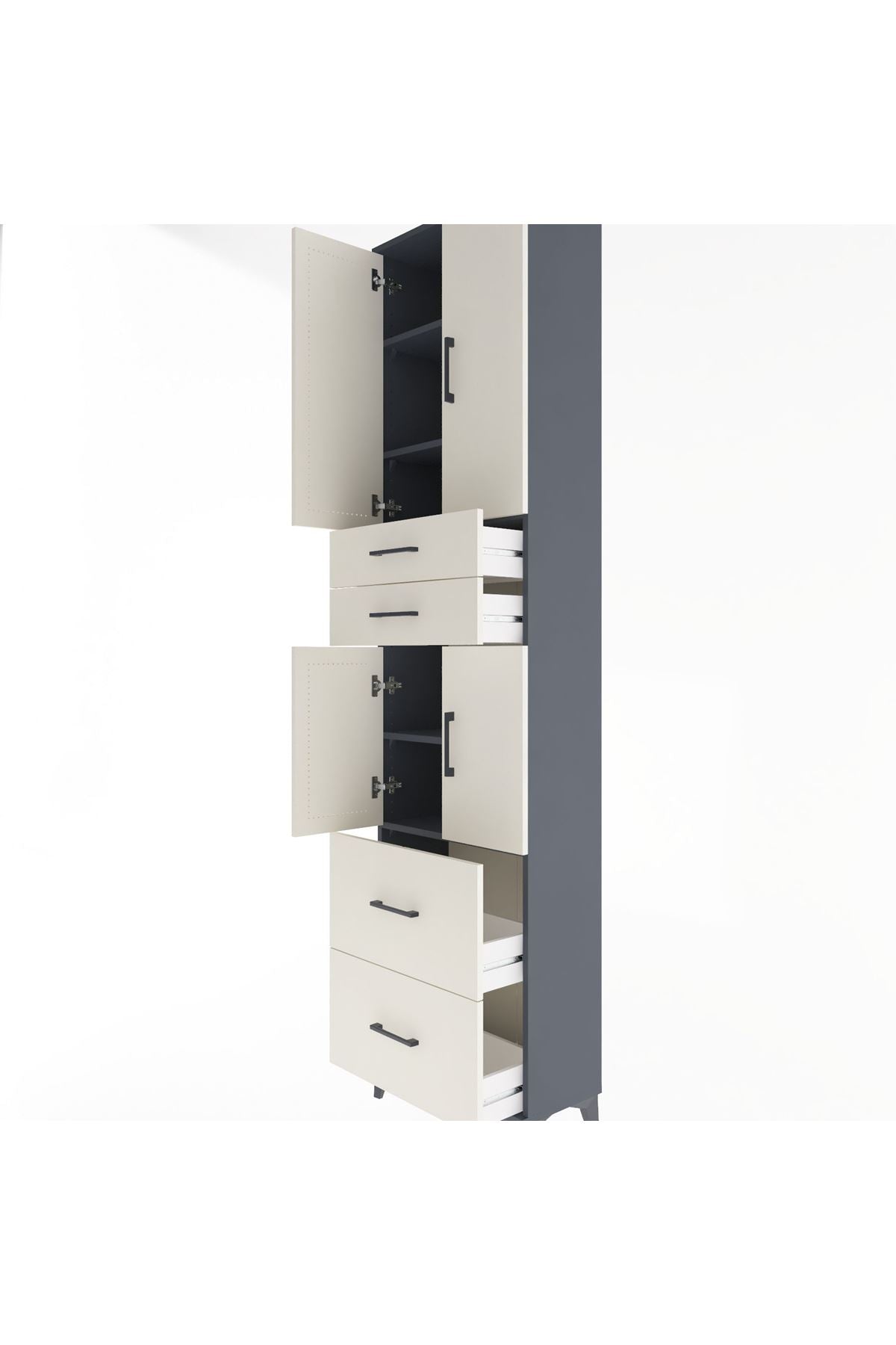 Arges Dolap 5 Raflı 4 Çekmeceli 4 Kapaklı 60x30x243 Antrasit-Aytaşı