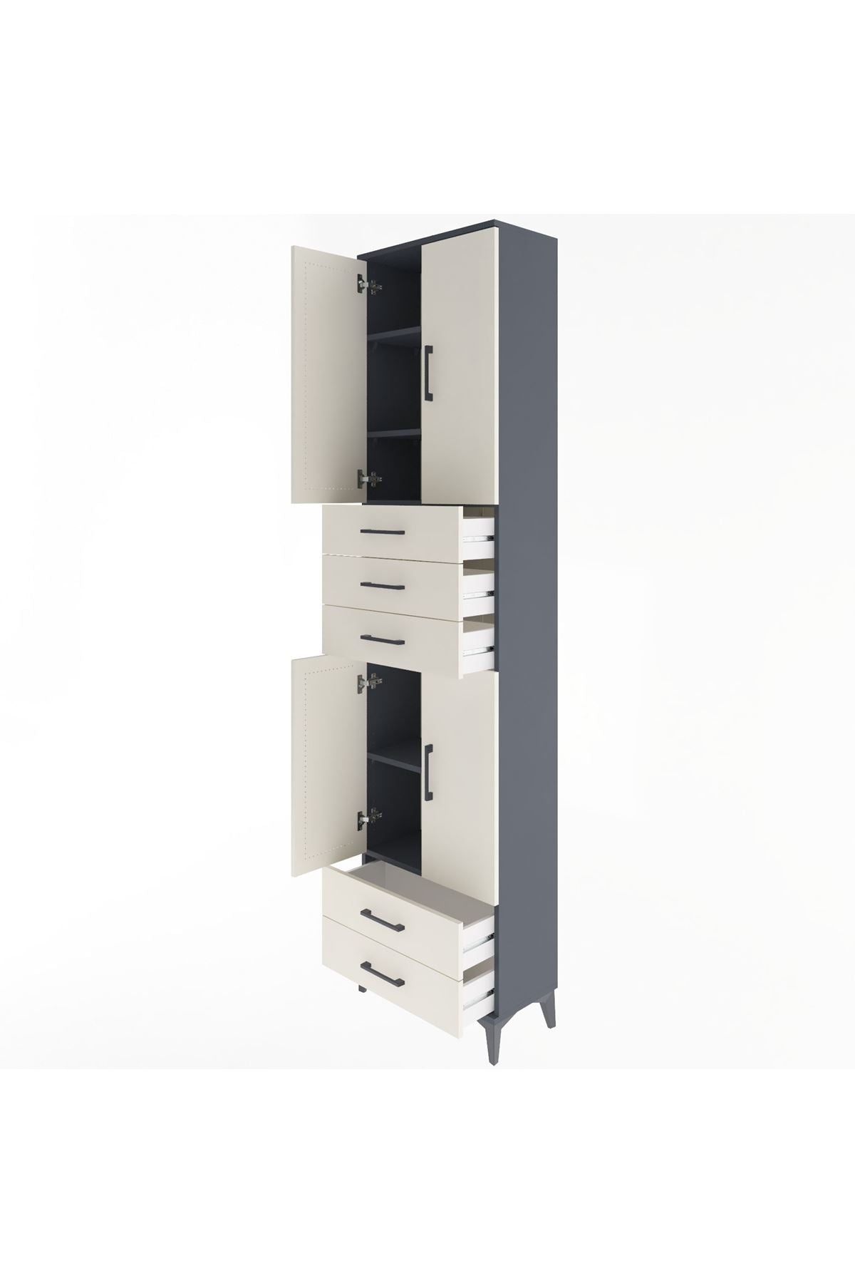 Arges Dolap 5 Raflı 5 Çekmeceli 4 Kapaklı 60x30x243 Antrasit-Aytaşı