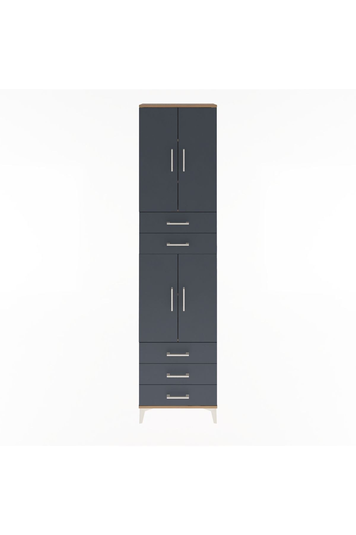 Arges Dolap 5 Raflı 5 Çekmeceli 4 Kapaklı 60x30x243 Çam-Antrasit