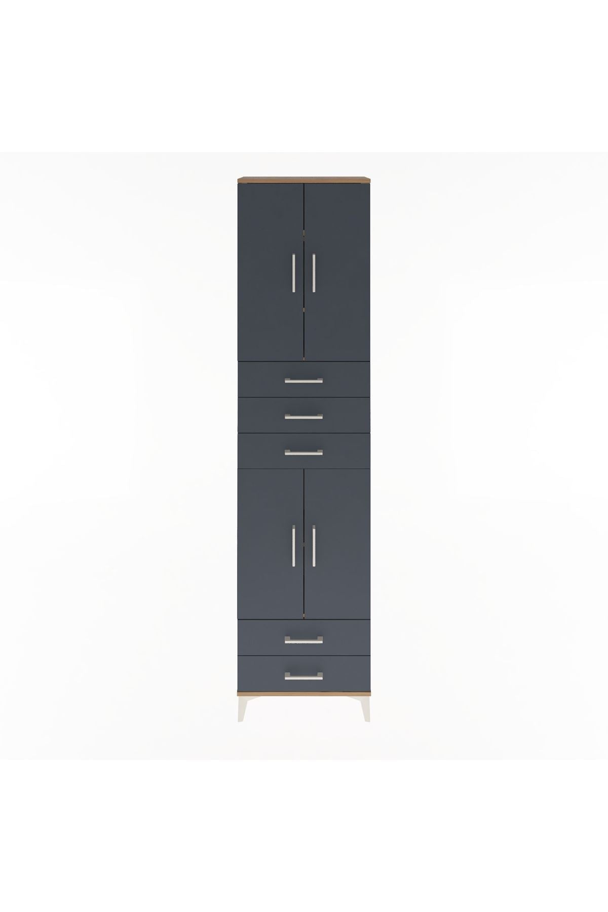 Arges Dolap 5 Raflı 5 Çekmeceli 4 Kapaklı 60x30x243 Çam-Antrasit