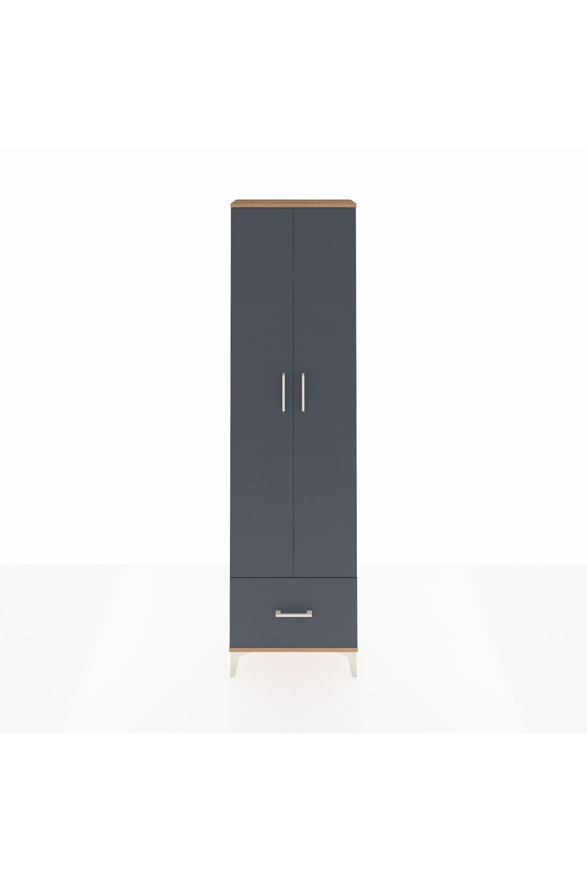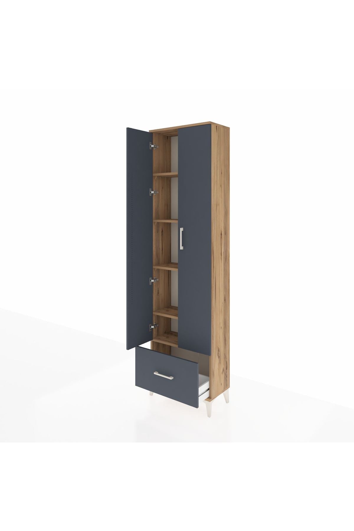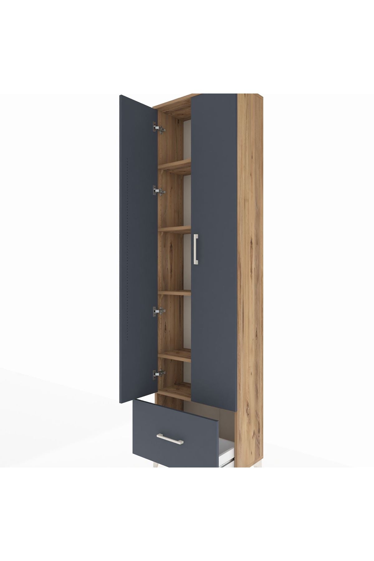 Arges Dolap 5 Raflı Tek Çekmeceli 2 Kapaklı 60x30x221 Çam-Antrasit
