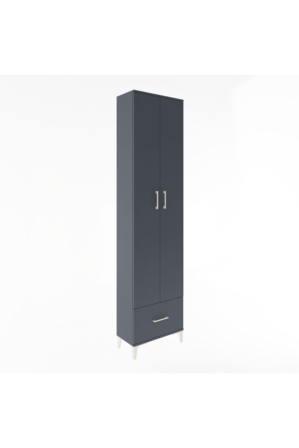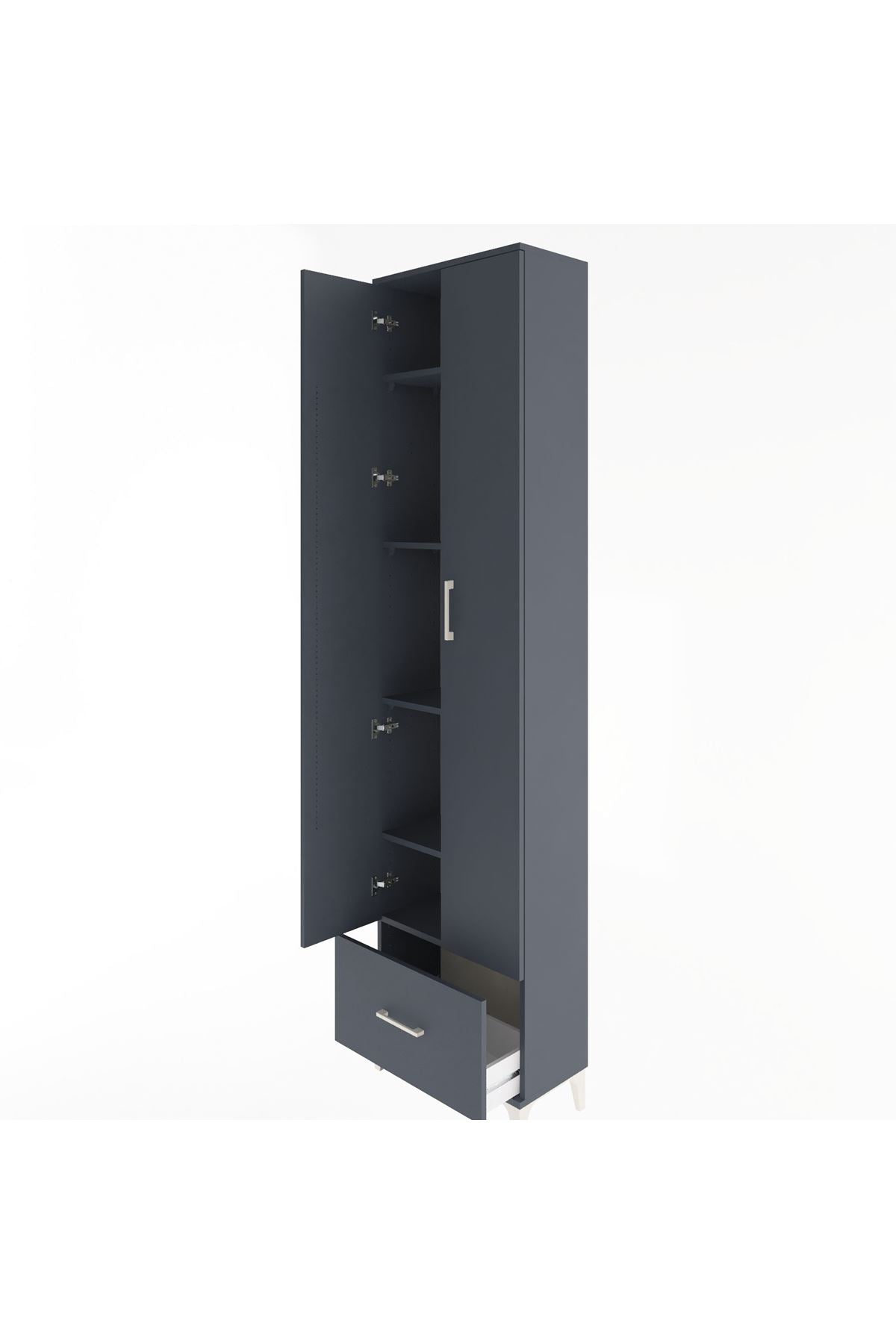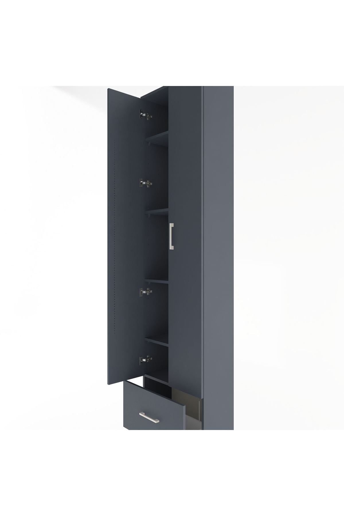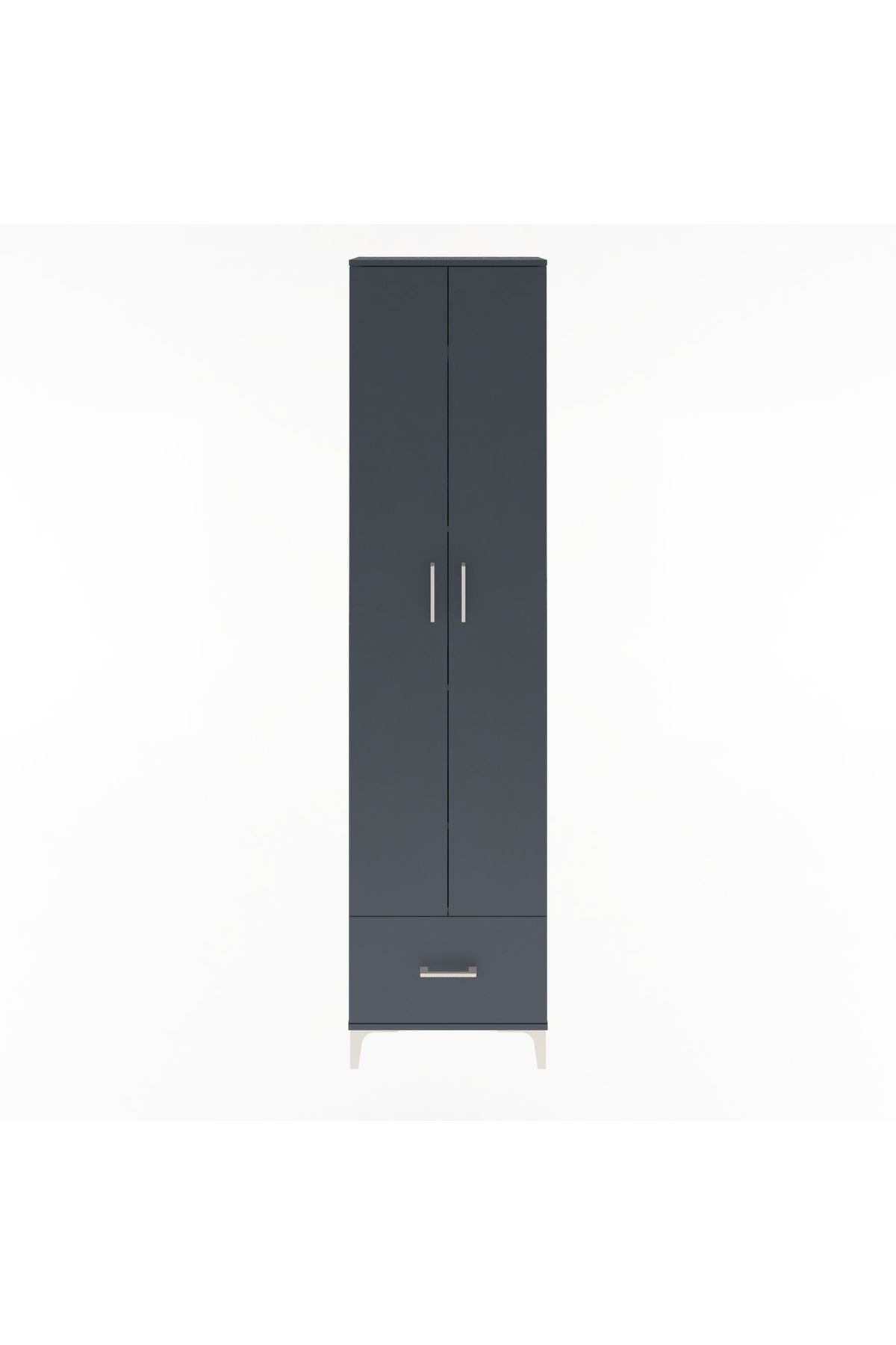 Arges Dolap 5 Raflı Tek Çekmeceli 2 Kapaklı 60x30x243 Antrasit-Antrasit