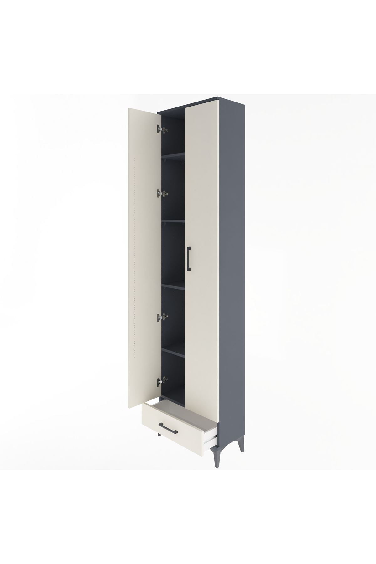 Arges Dolap 5 Raflı Tek Çekmeceli 2 Kapaklı 60x30x243 Antrasit-Aytaşı