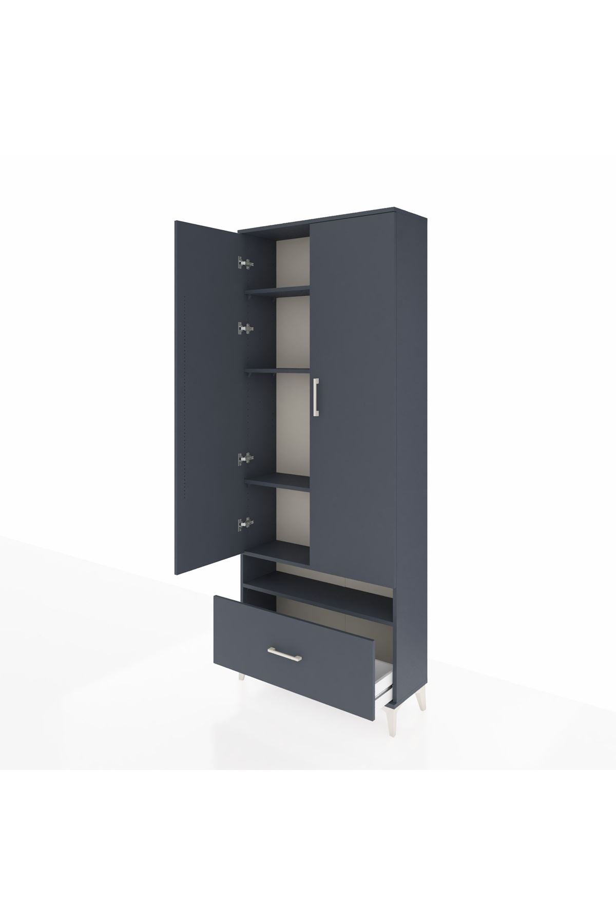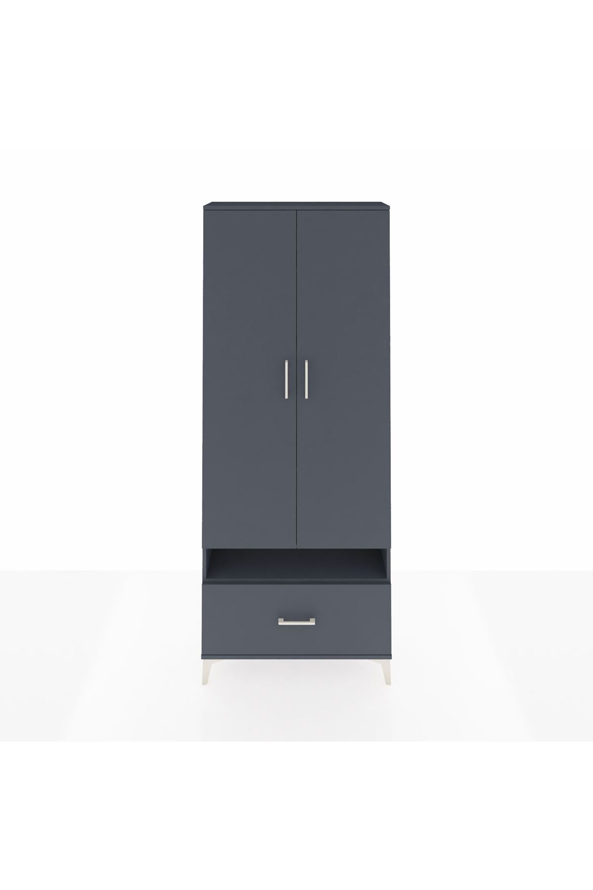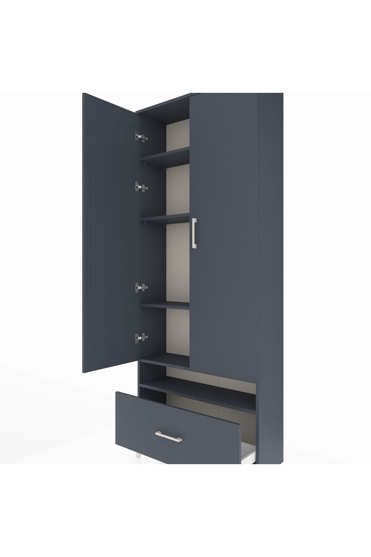 Arges Dolap 5 Raflı Tek Çekmeceli 2 Kapaklı 88x30x221 Antrasit-Antrasit