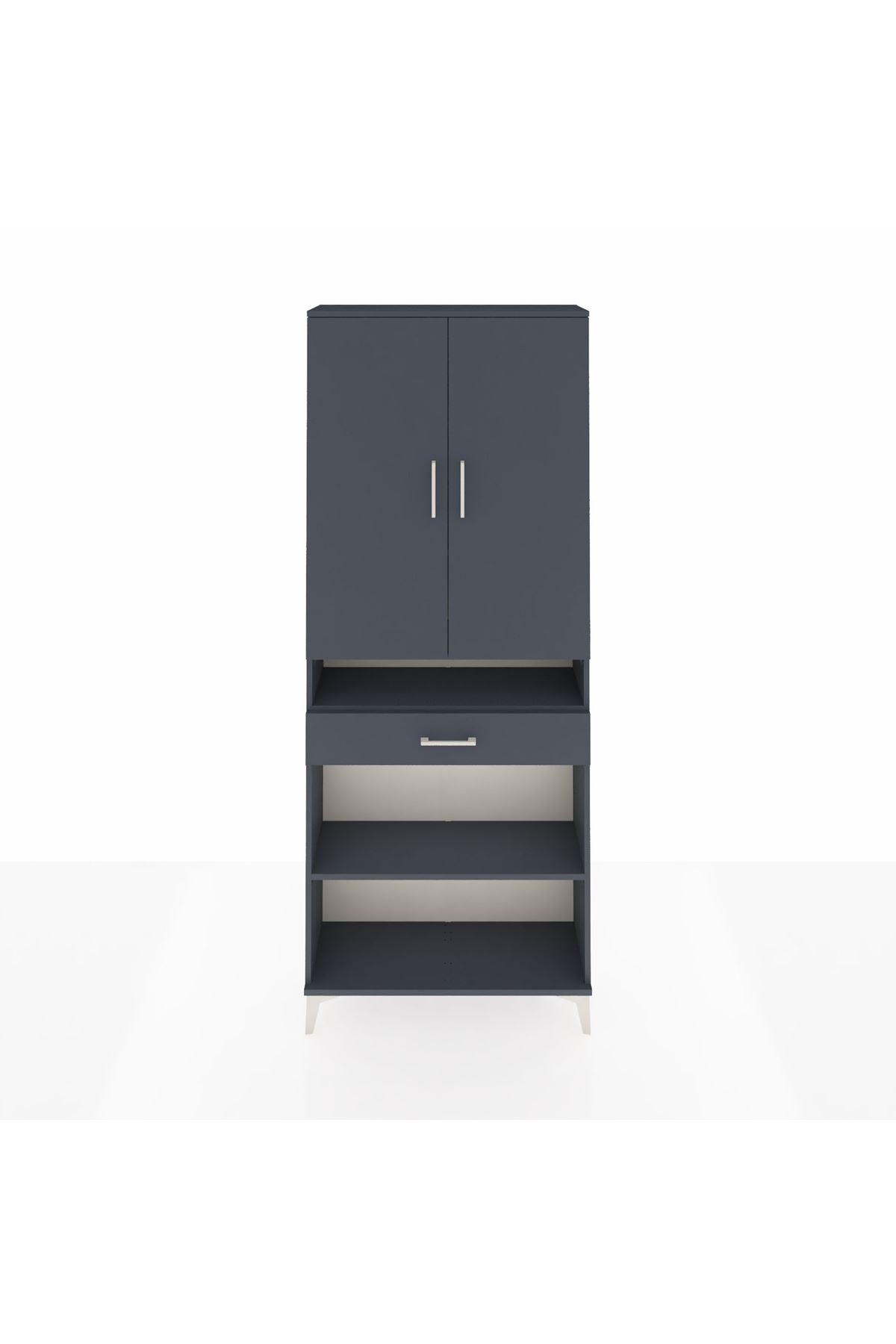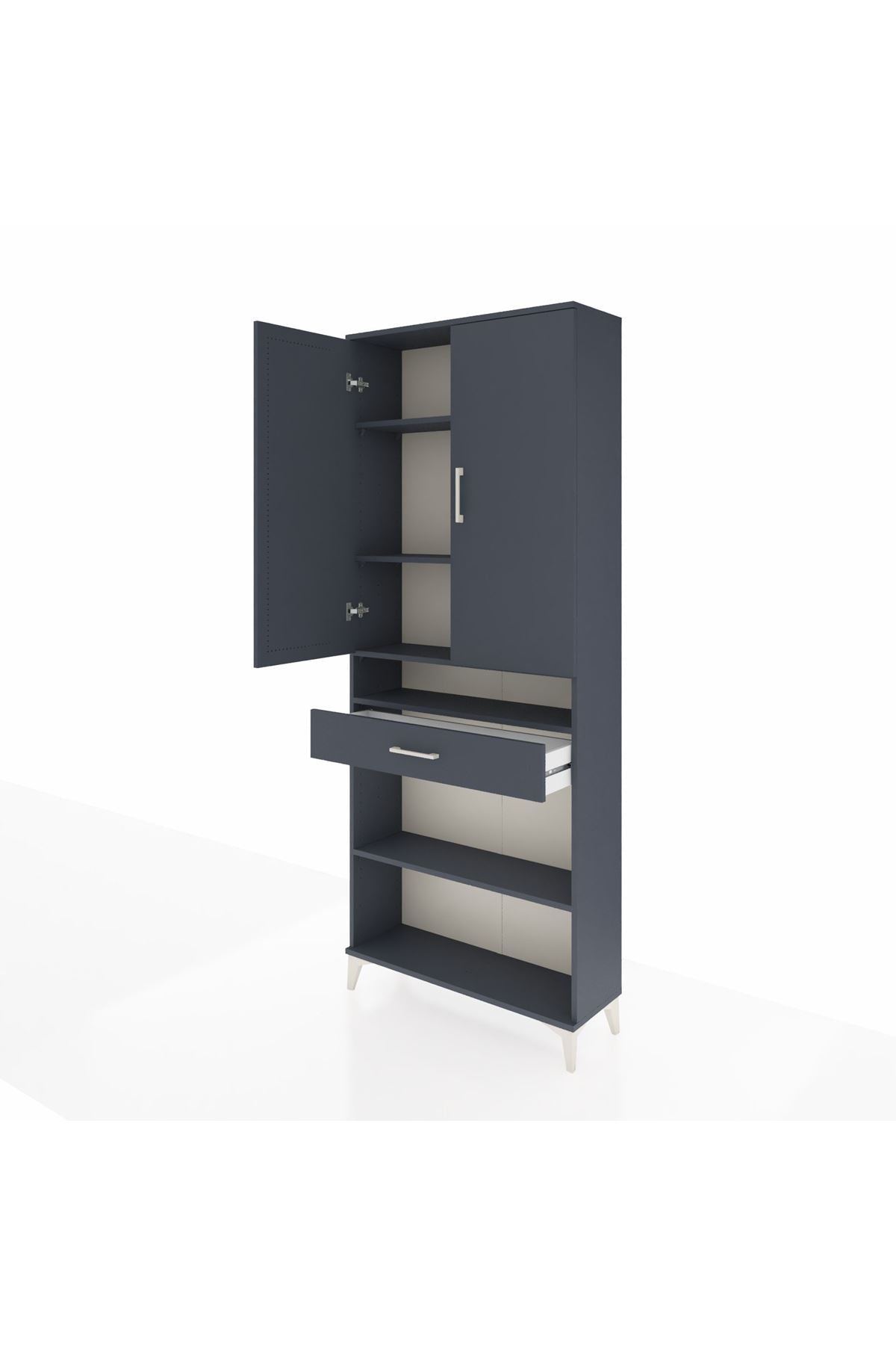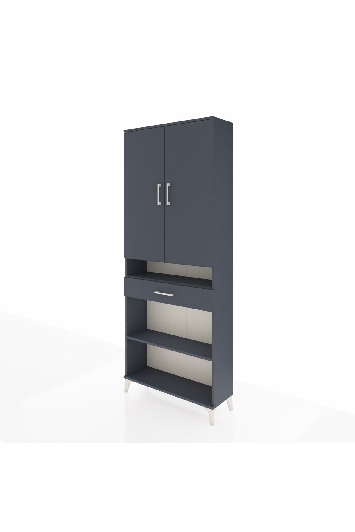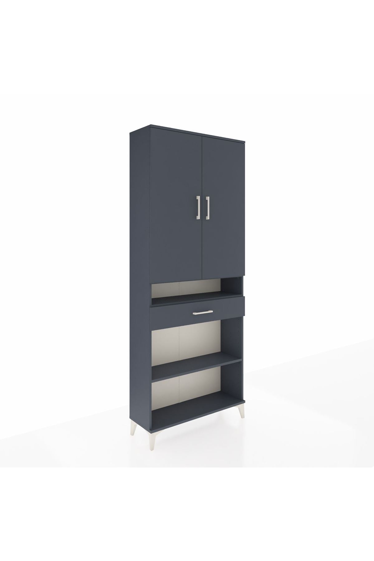 Arges Dolap 5 Raflı Tek Çekmeceli 2 Kapaklı 88x30x221 Antrasit-Antrasit