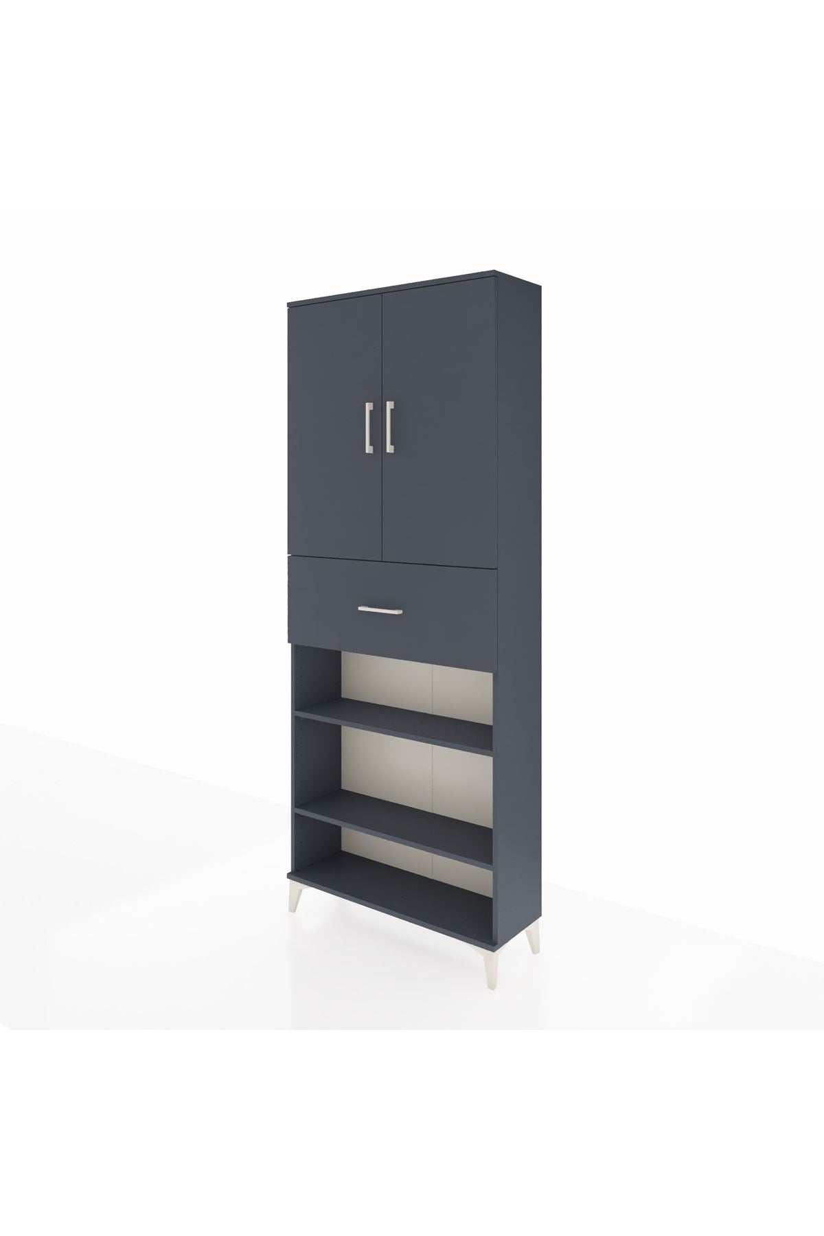 Arges Dolap 5 Raflı Tek Çekmeceli 2 Kapaklı 88x30x221 Antrasit-Antrasit