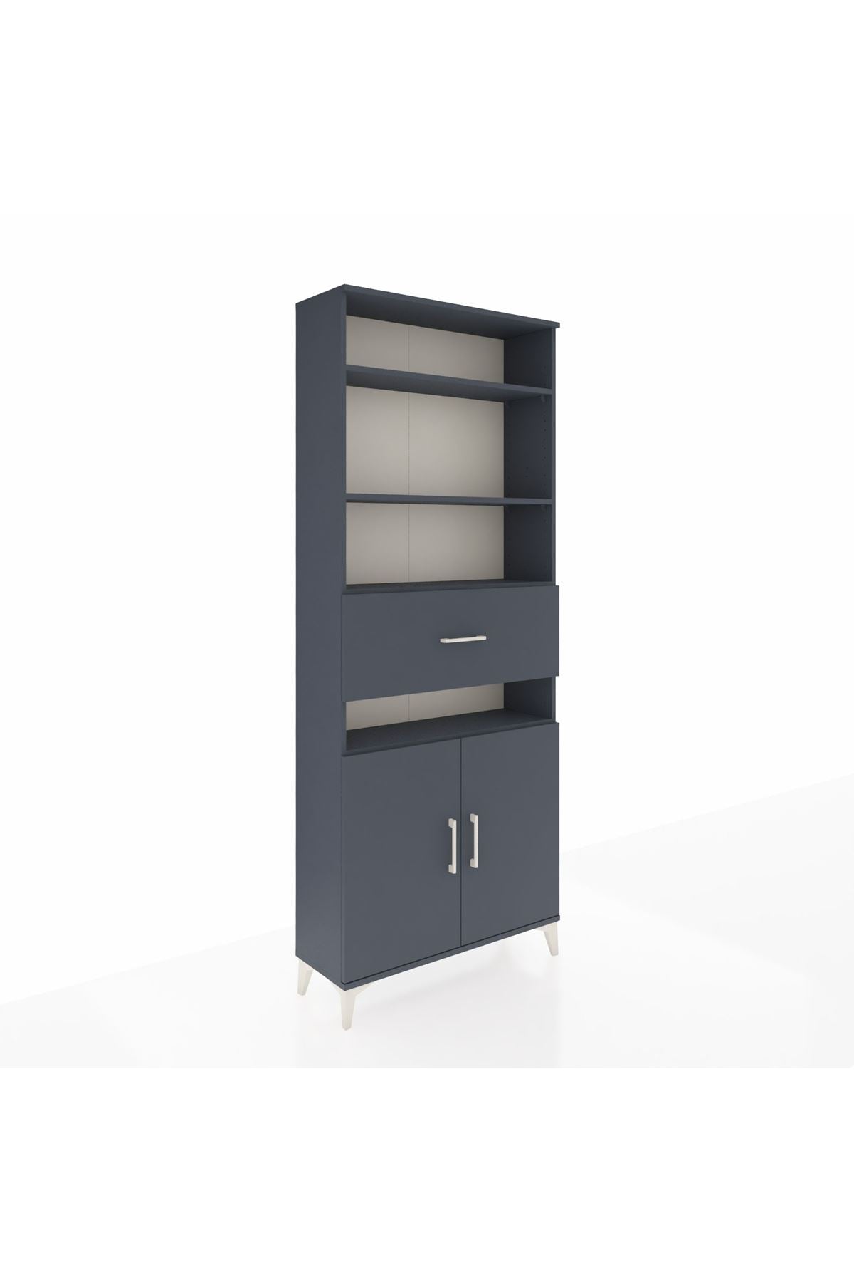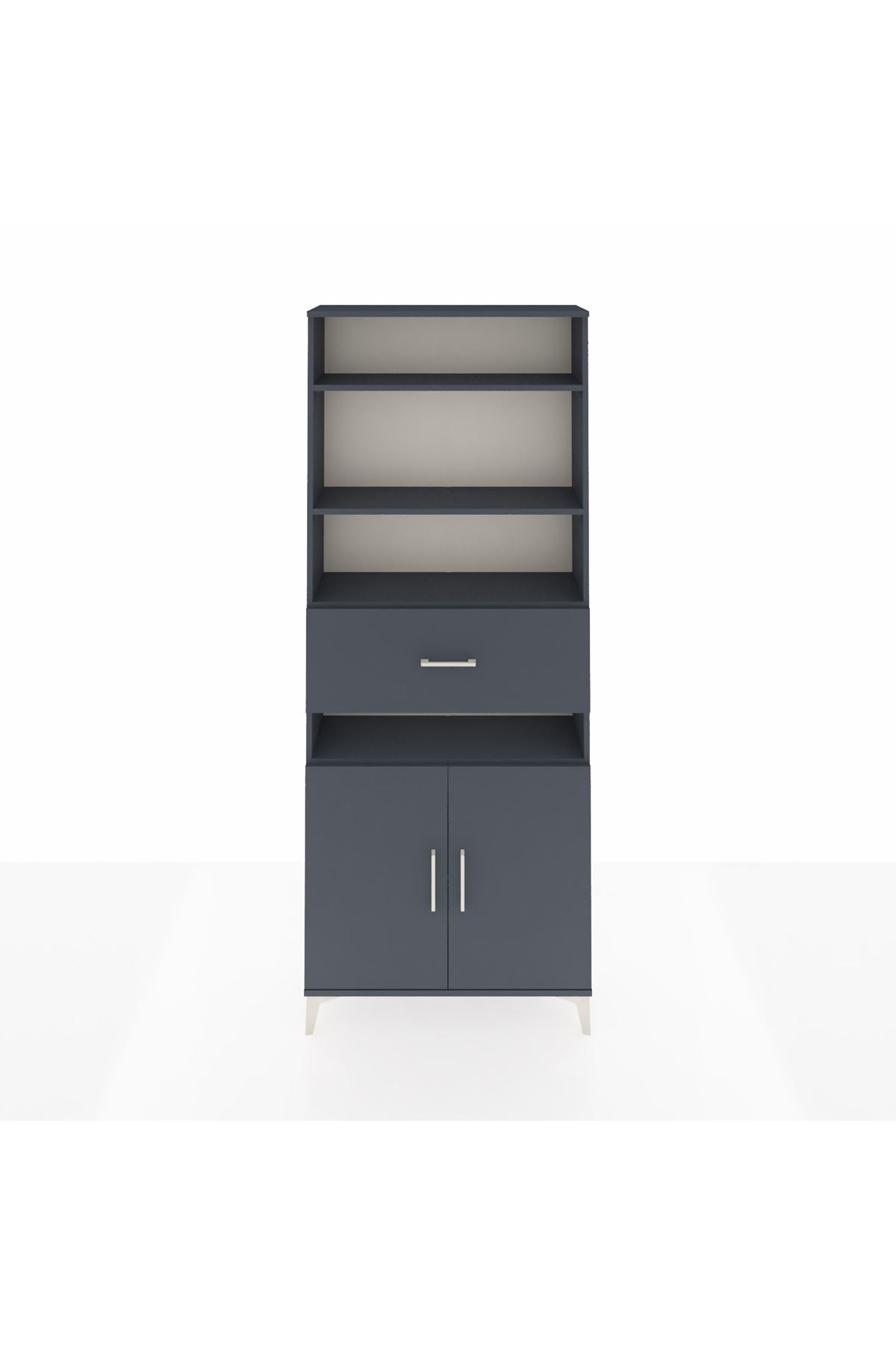 Arges Dolap 5 Raflı Tek Çekmeceli 2 Kapaklı 88x30x221 Antrasit-Antrasit