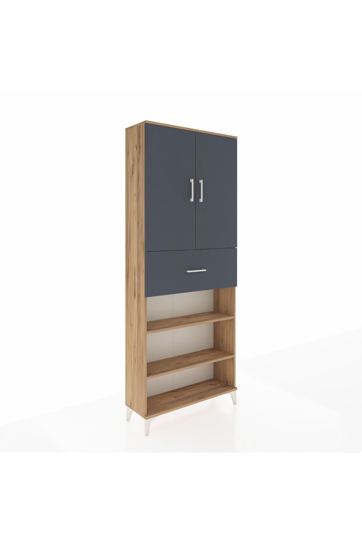 Arges Dolap 5 Raflı Tek Çekmeceli 2 Kapaklı 88x30x221 Çam-Antrasit