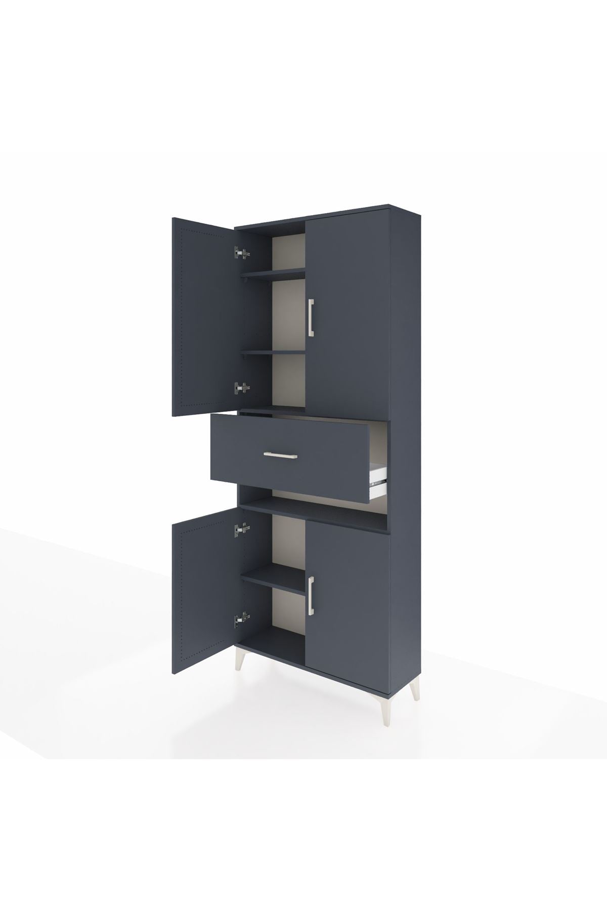Arges Dolap 5 Raflı Tek Çekmeceli 4 Kapaklı 88x30x221 Antrasit-Antrasit
