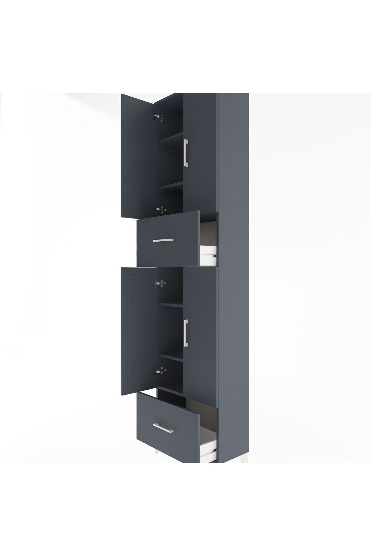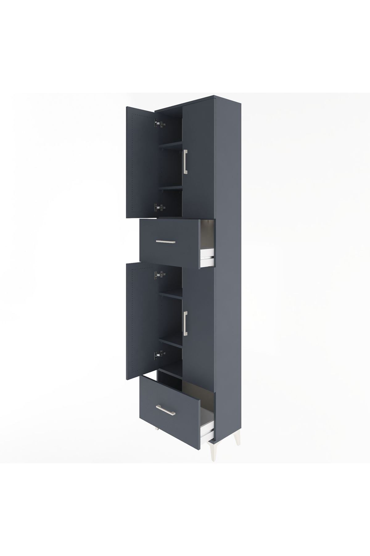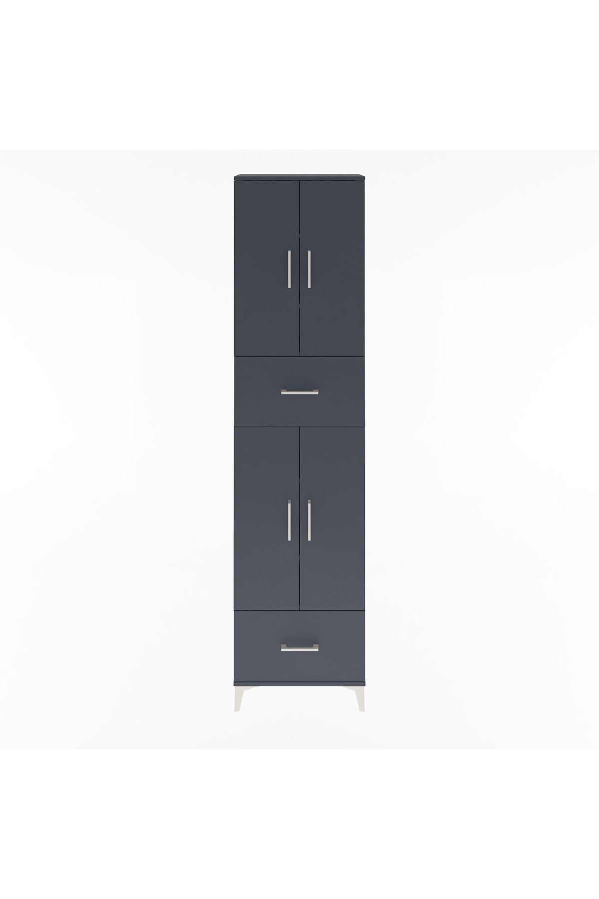 Arges Dolap 6 Raflı 2 Çekmeceli 4 Kapaklı 60x30x243 Antrasit-Antrasit
