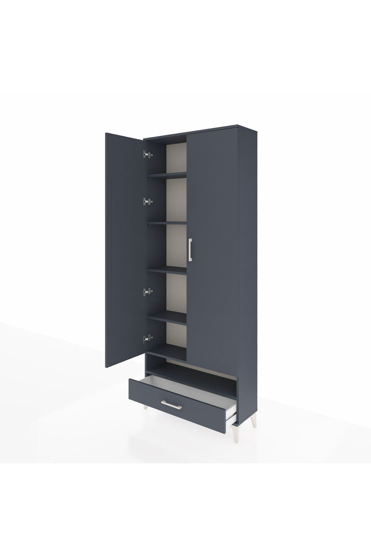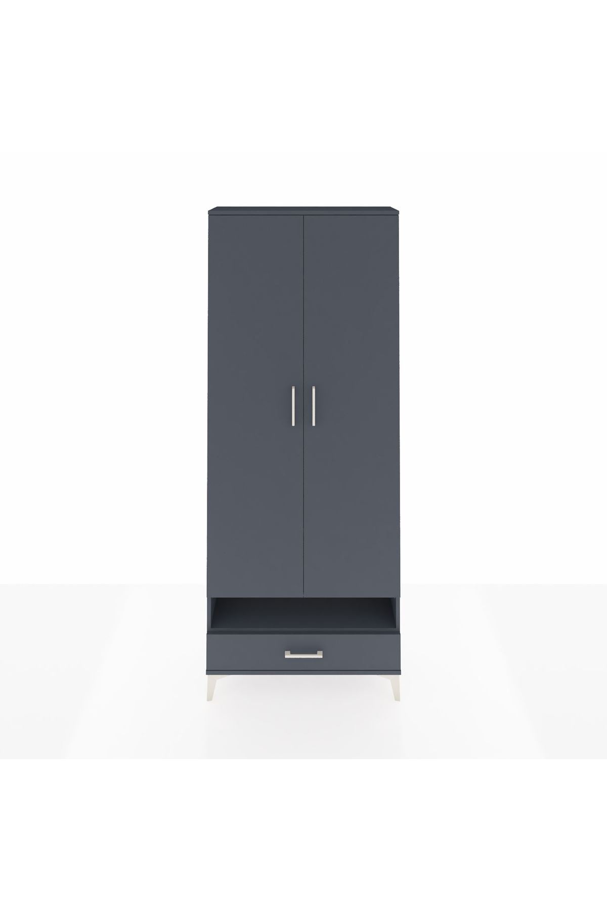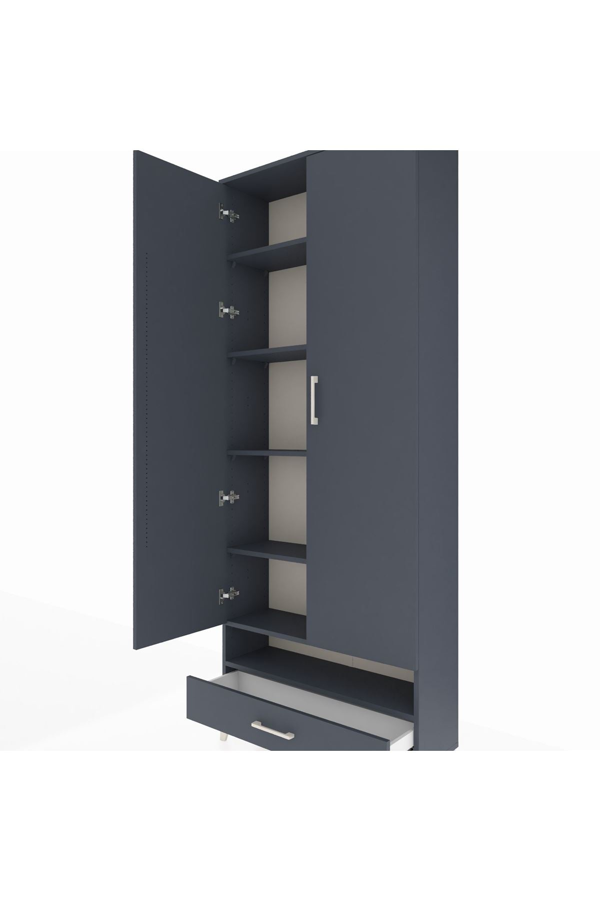 Arges Dolap 6 Raflı Tek Çekmeceli 2 Kapaklı 88x30x221 Antrasit-Antrasit