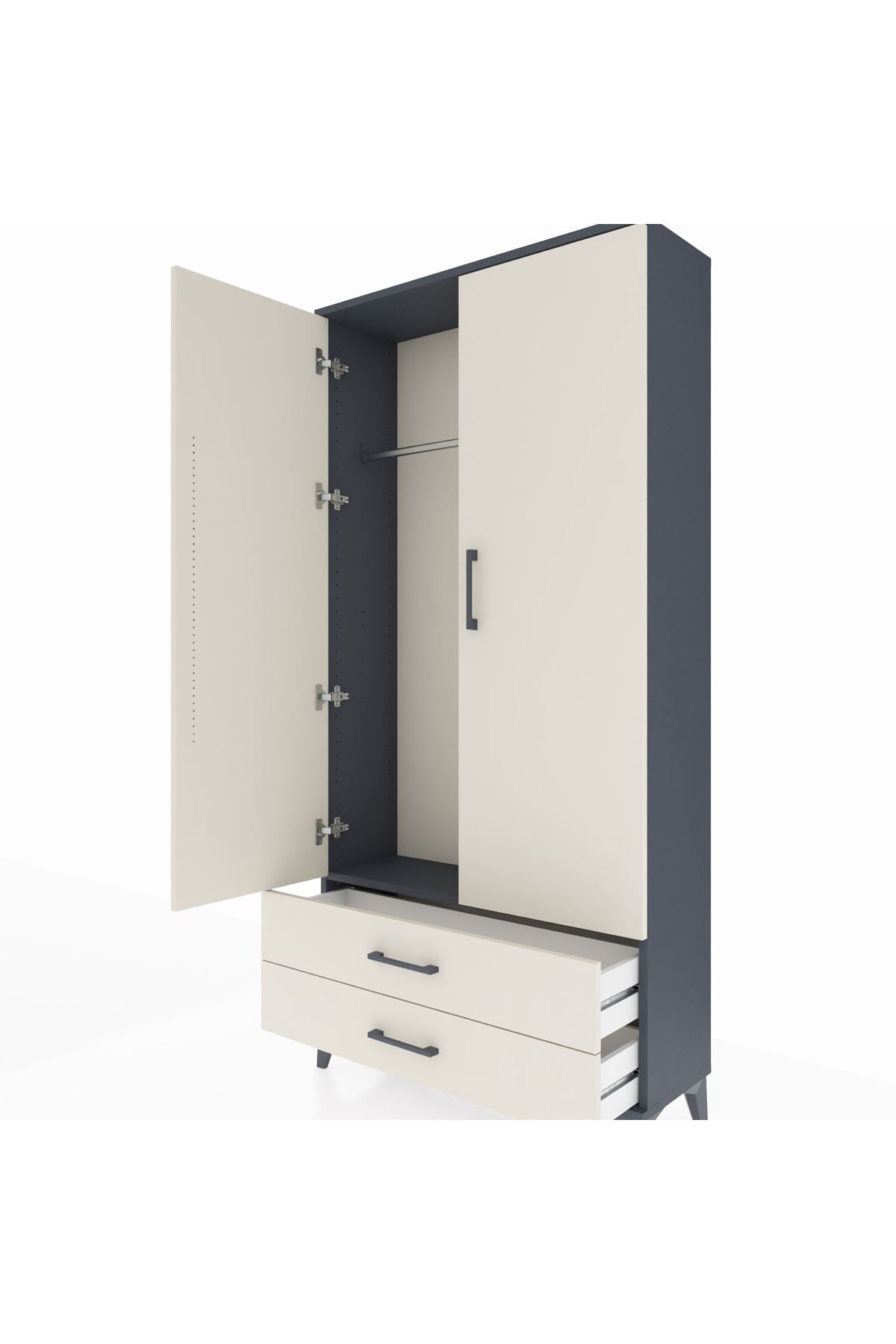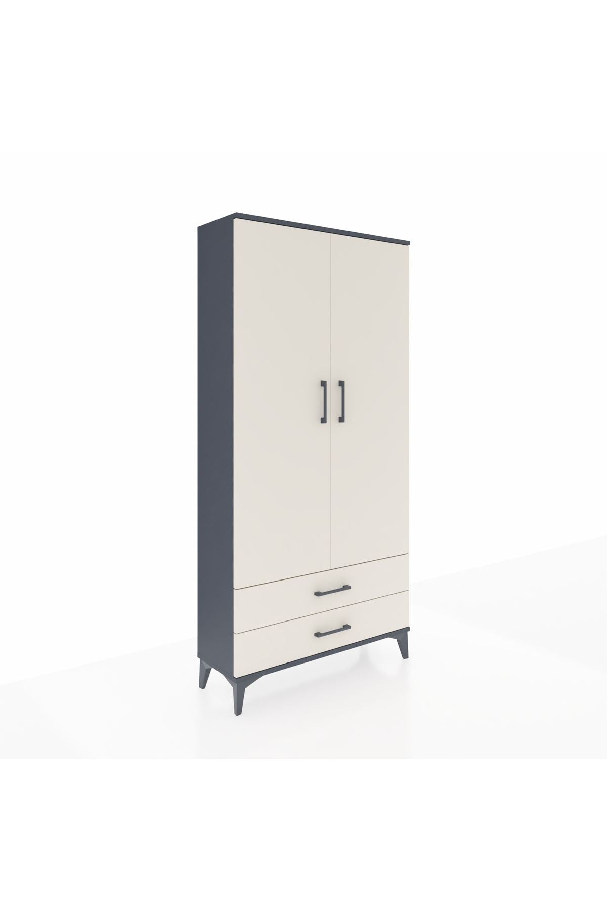 Arges Dolap Tek Raflı 2 Çekmeceli Tek Askılı 88x30x182 Antrasit-Aytaşı