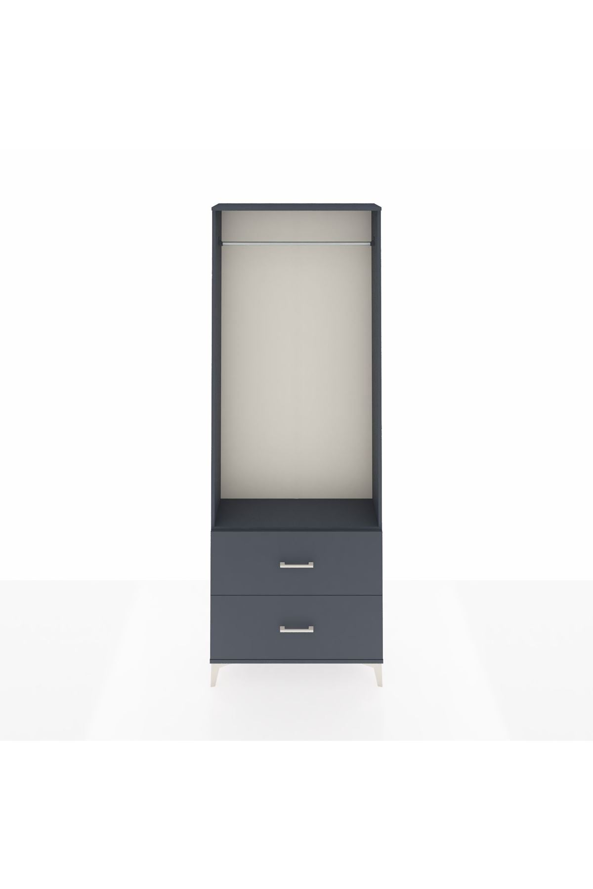 Arges Dolap Tek Raflı 2 Çekmeceli Tek Askılı 88x30x243 Antrasit-Antrasit