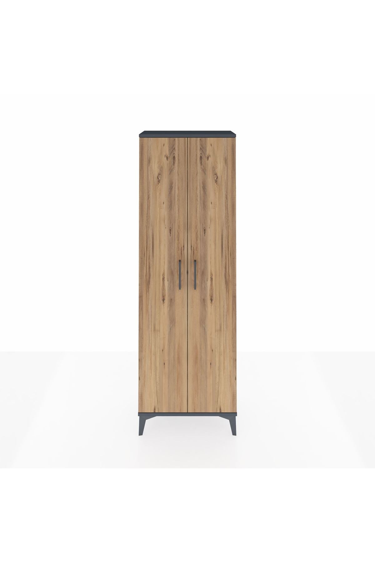 Arges Dolap Tek Raflı 2 Kapaklı Tek Askılı 60x30x182 Antrasit-Çam