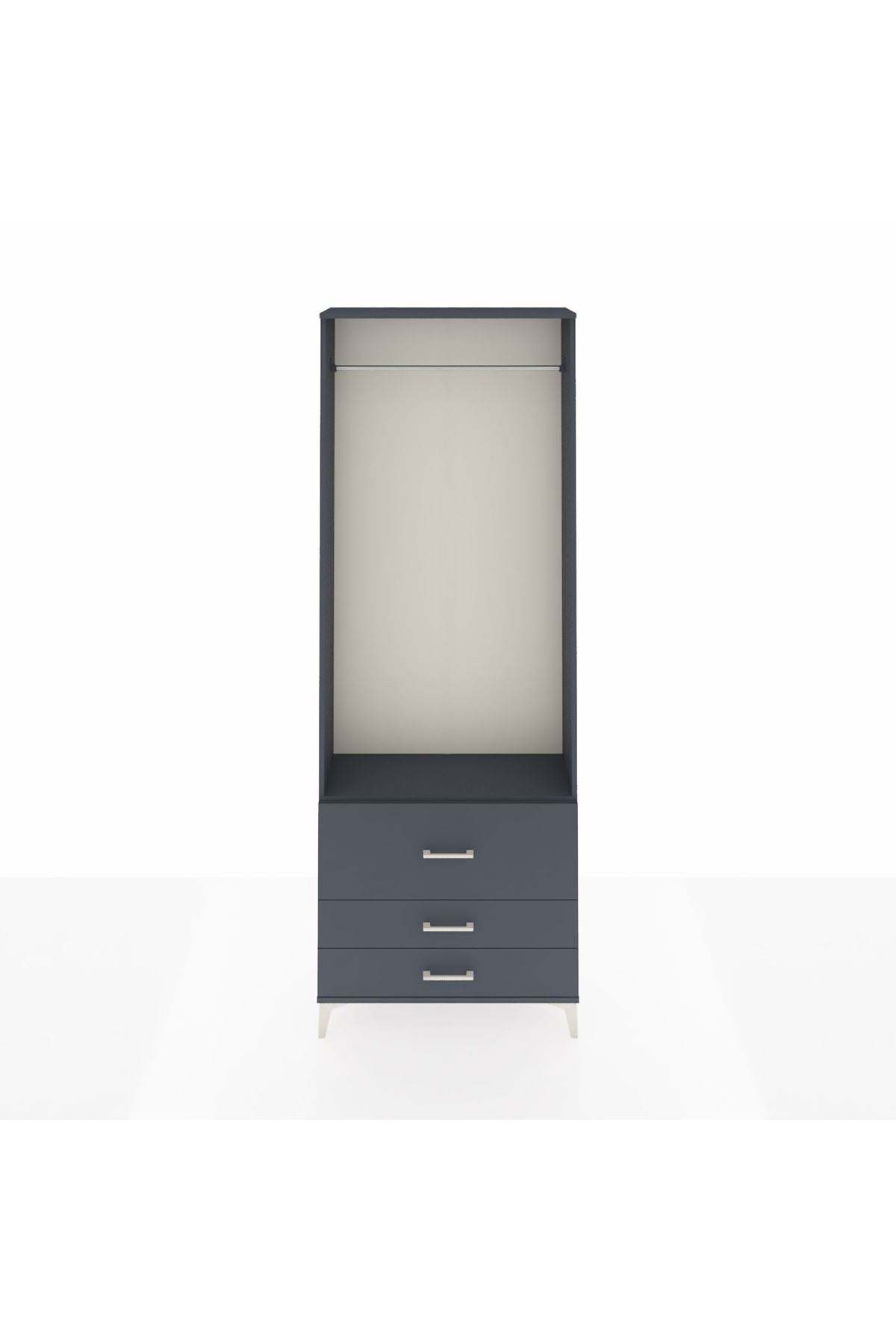 Arges Dolap Tek Raflı 3 Çekmeceli Tek Askılı 88x30x243 Antrasit-Antrasit