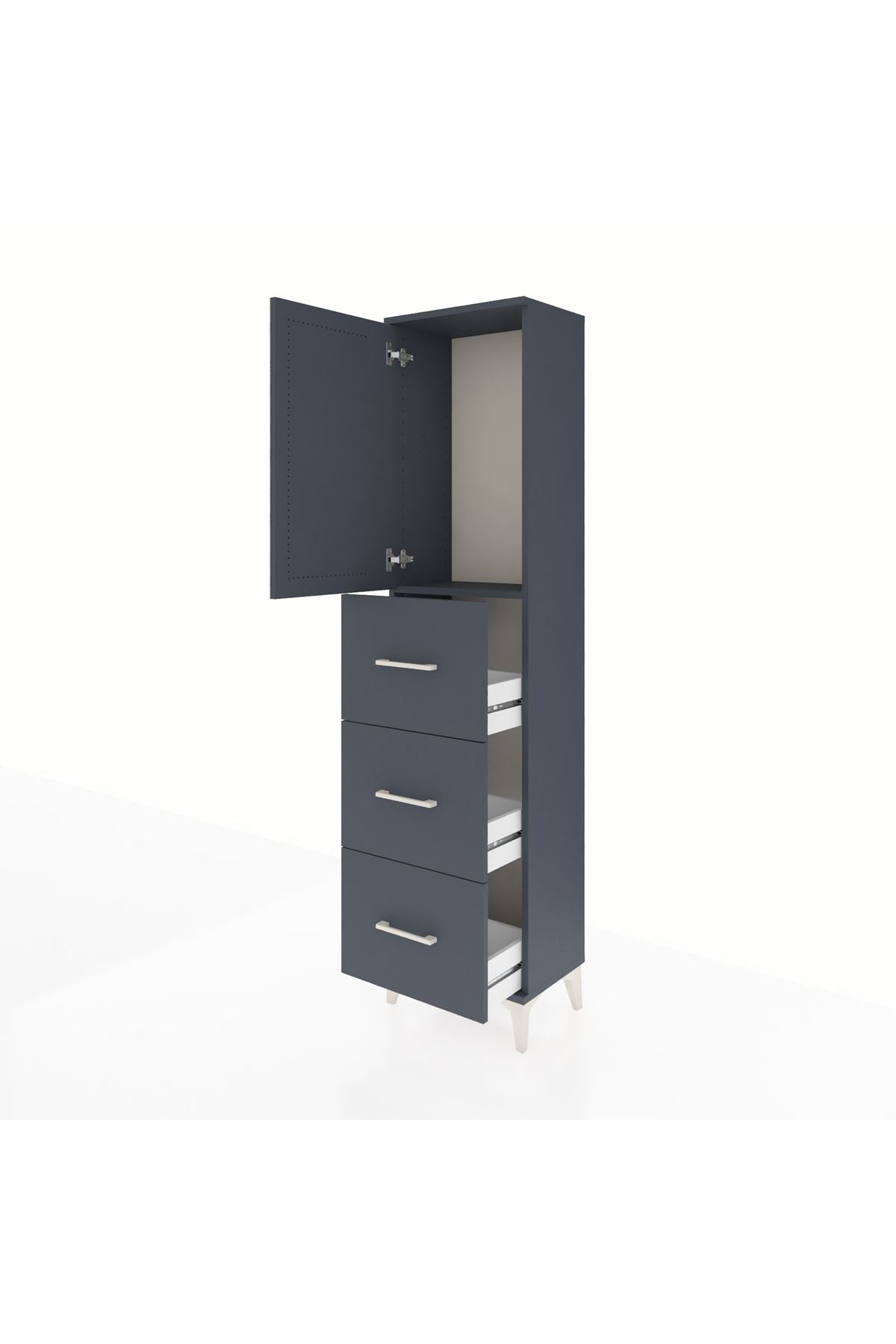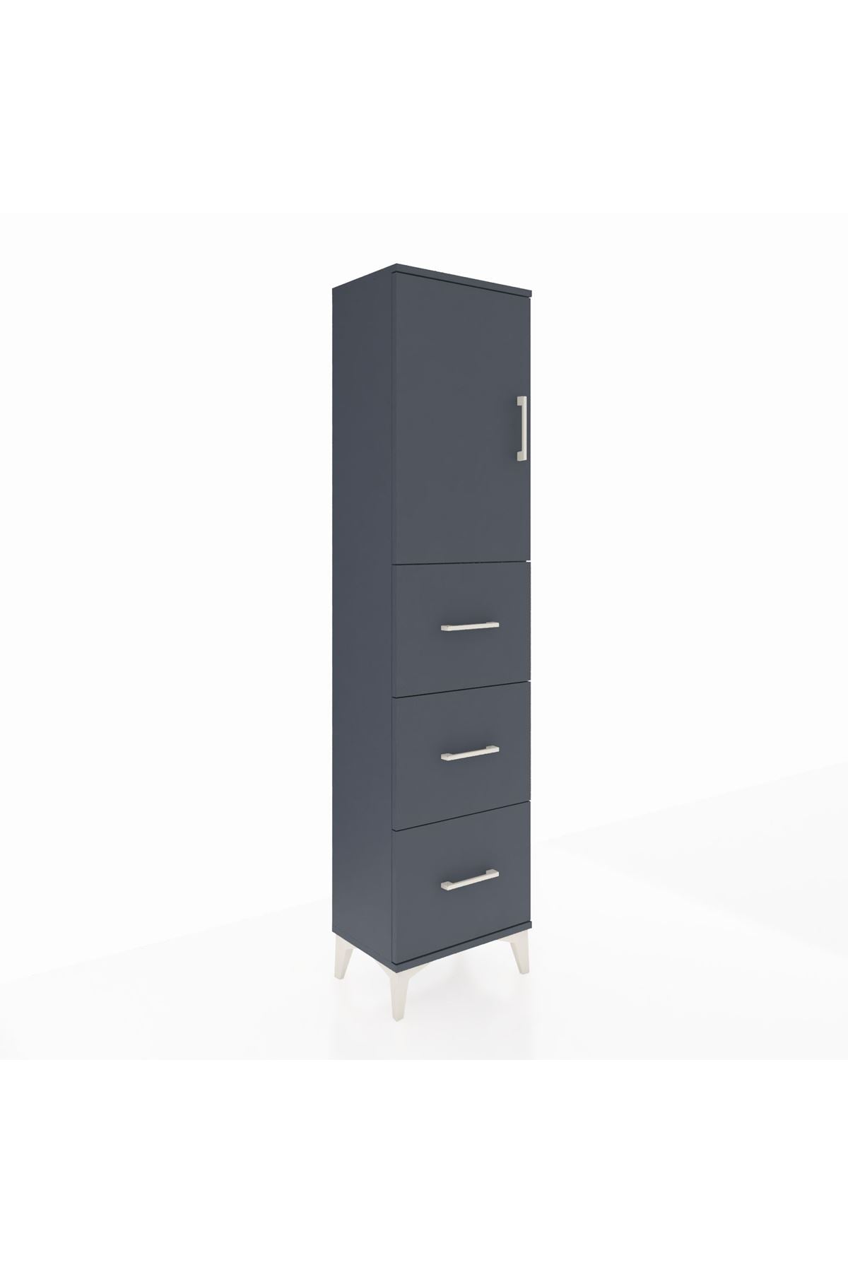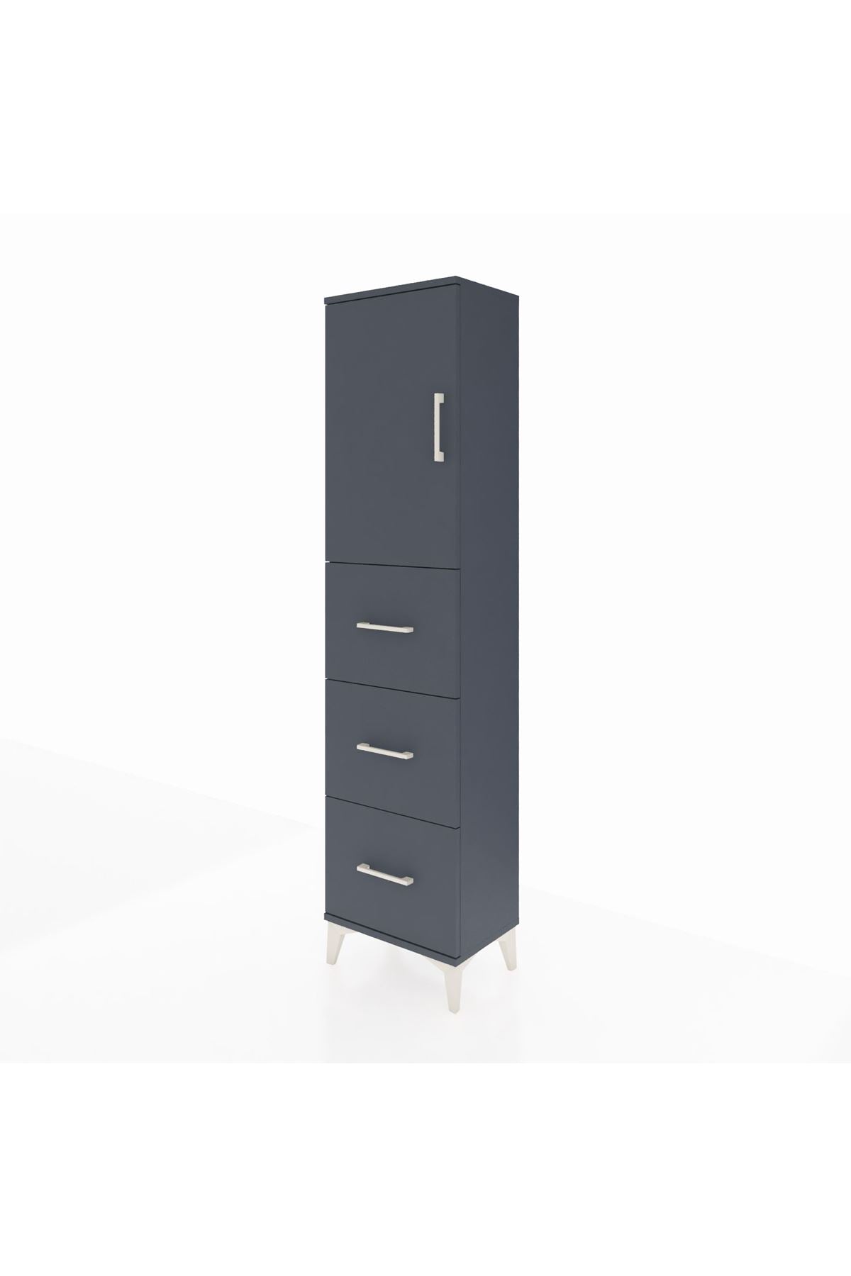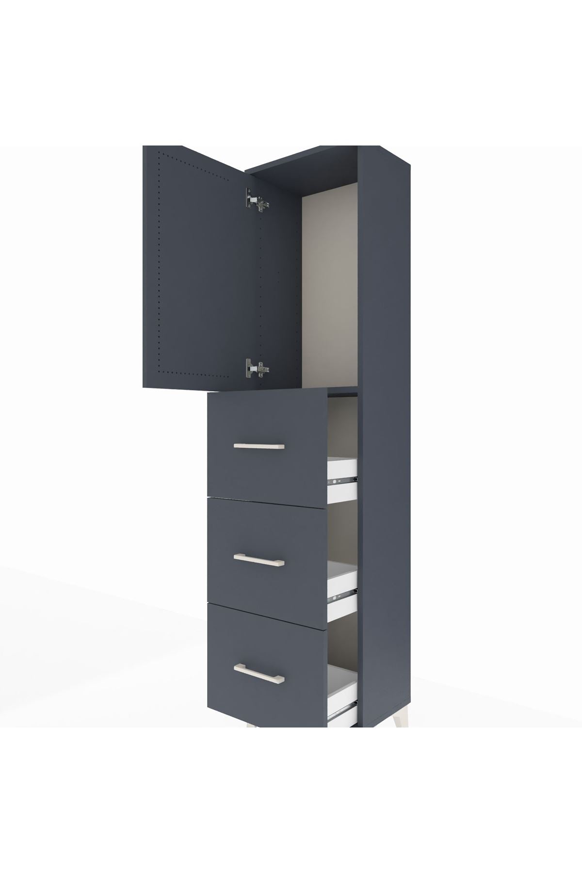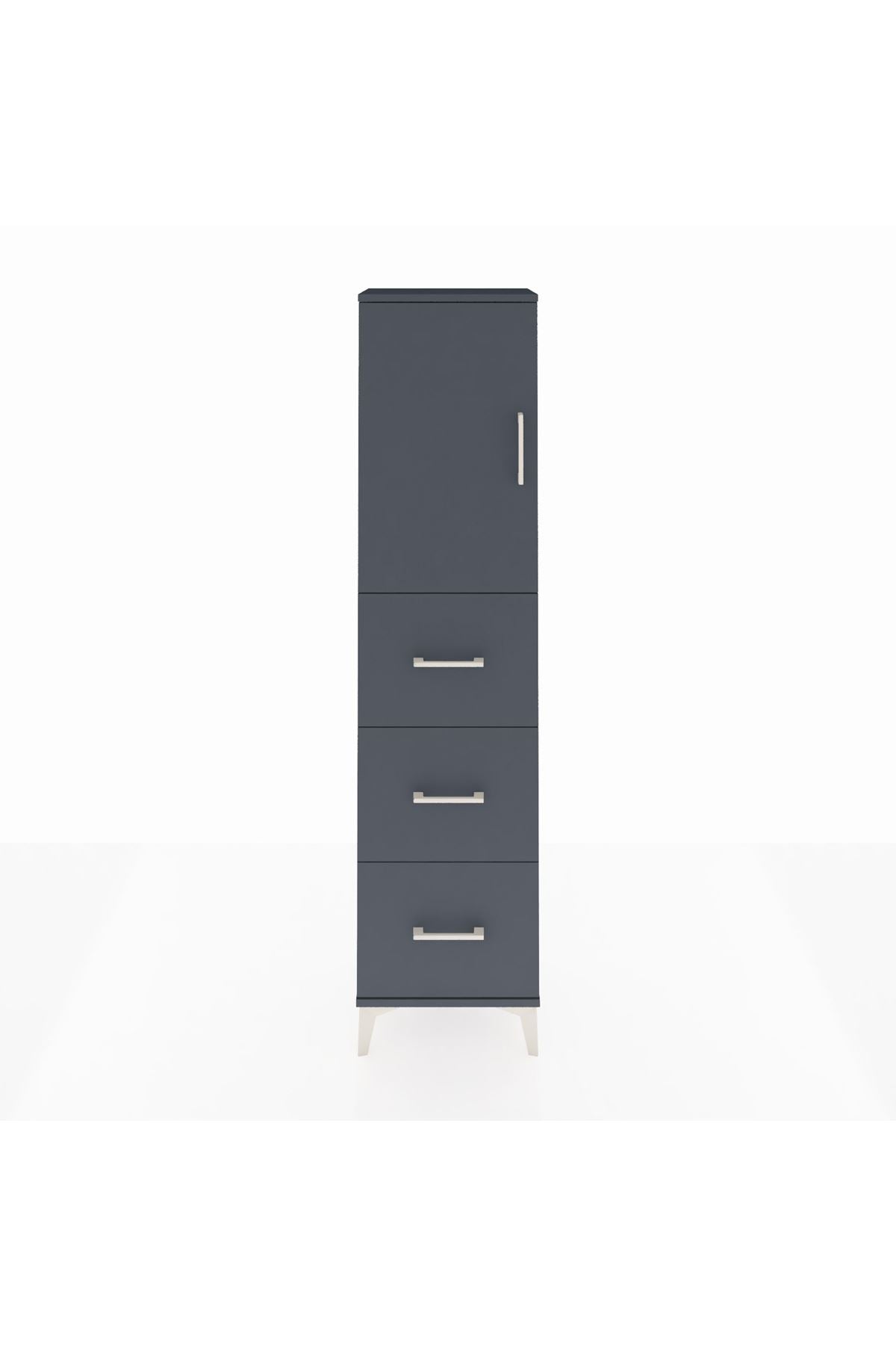 Arges Dolap Tek Raflı 3 Çekmeceli Tek Kapaklı 44x30x182 Antrasit-Antrasit