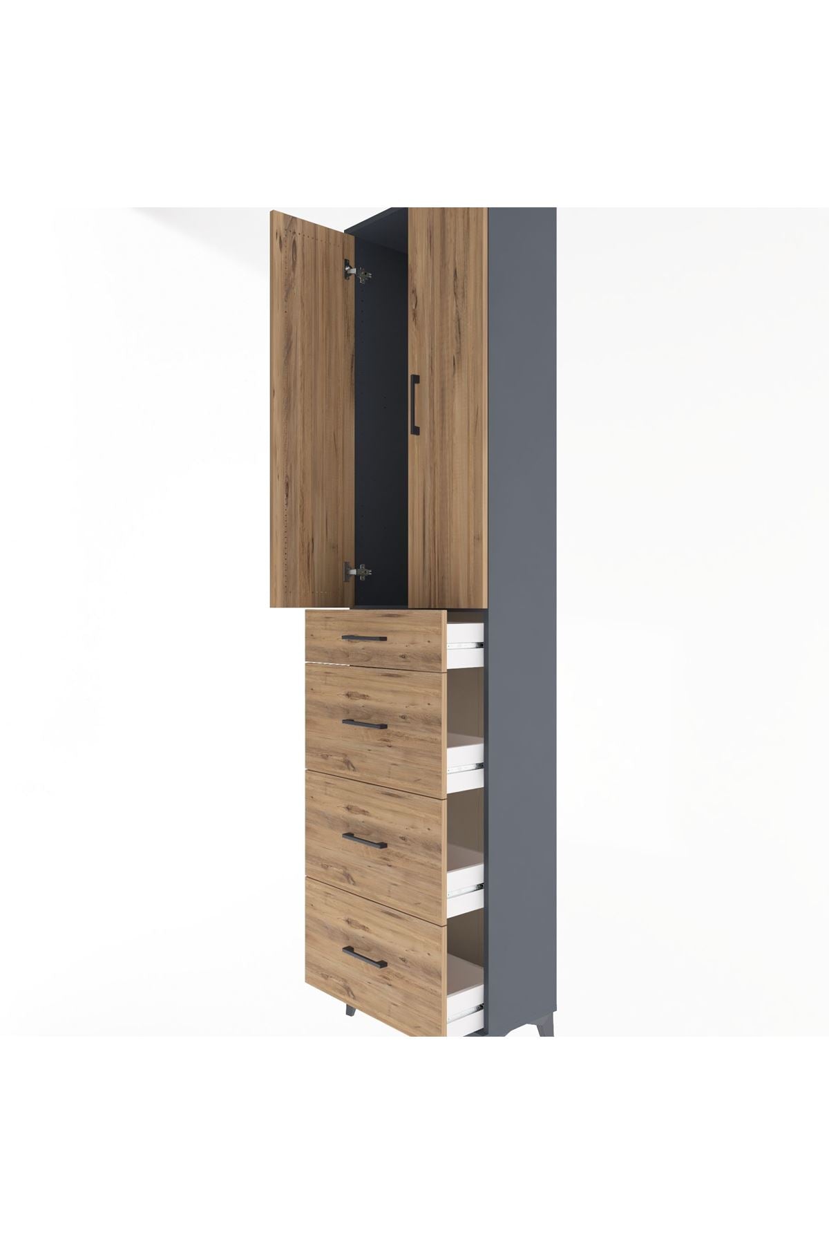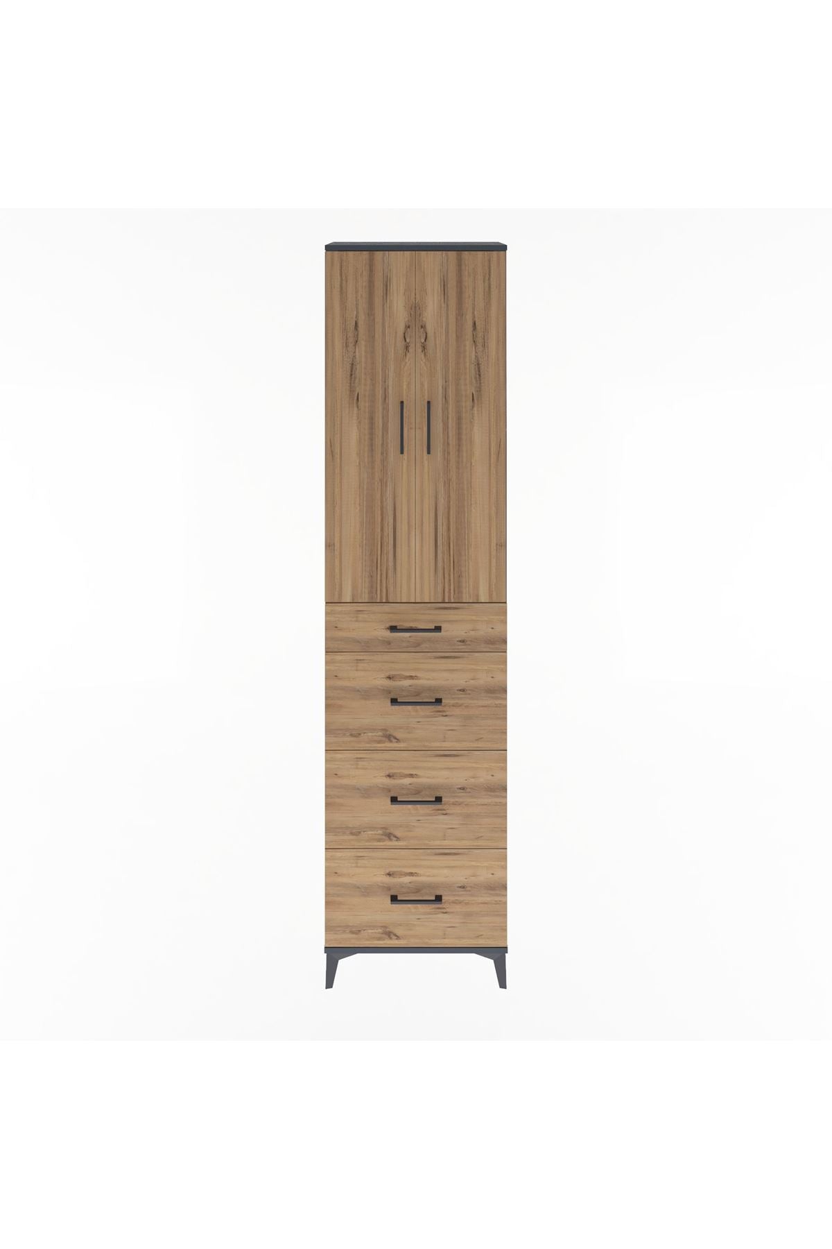 Arges Dolap Tek Raflı 4 Çekmeceli 2 Kapaklı 60x30x243 Antrasit-Çam
