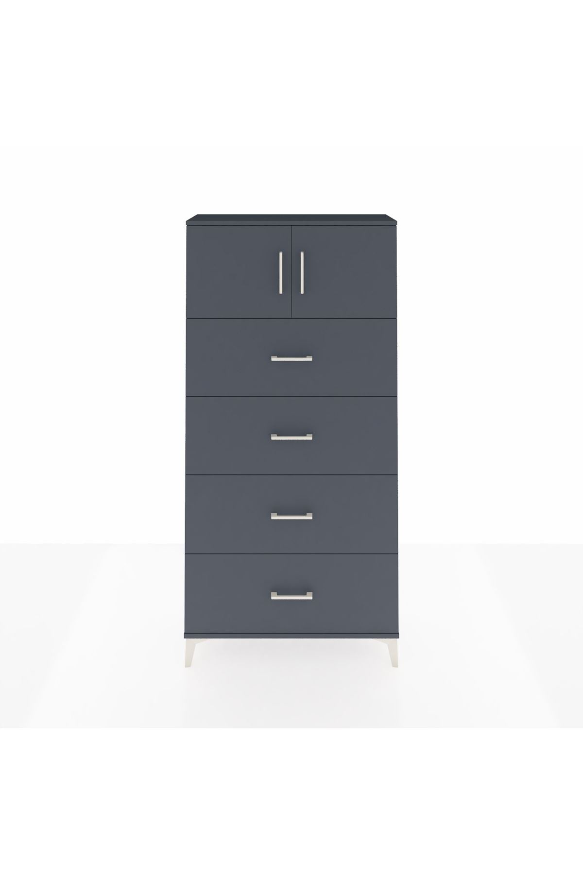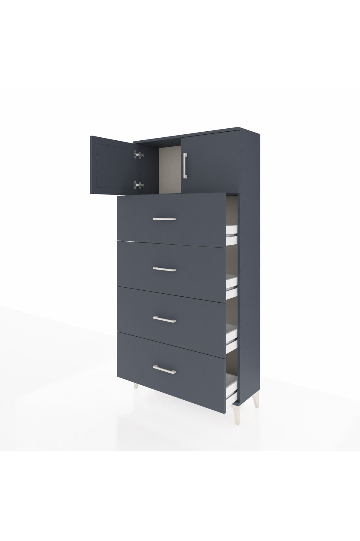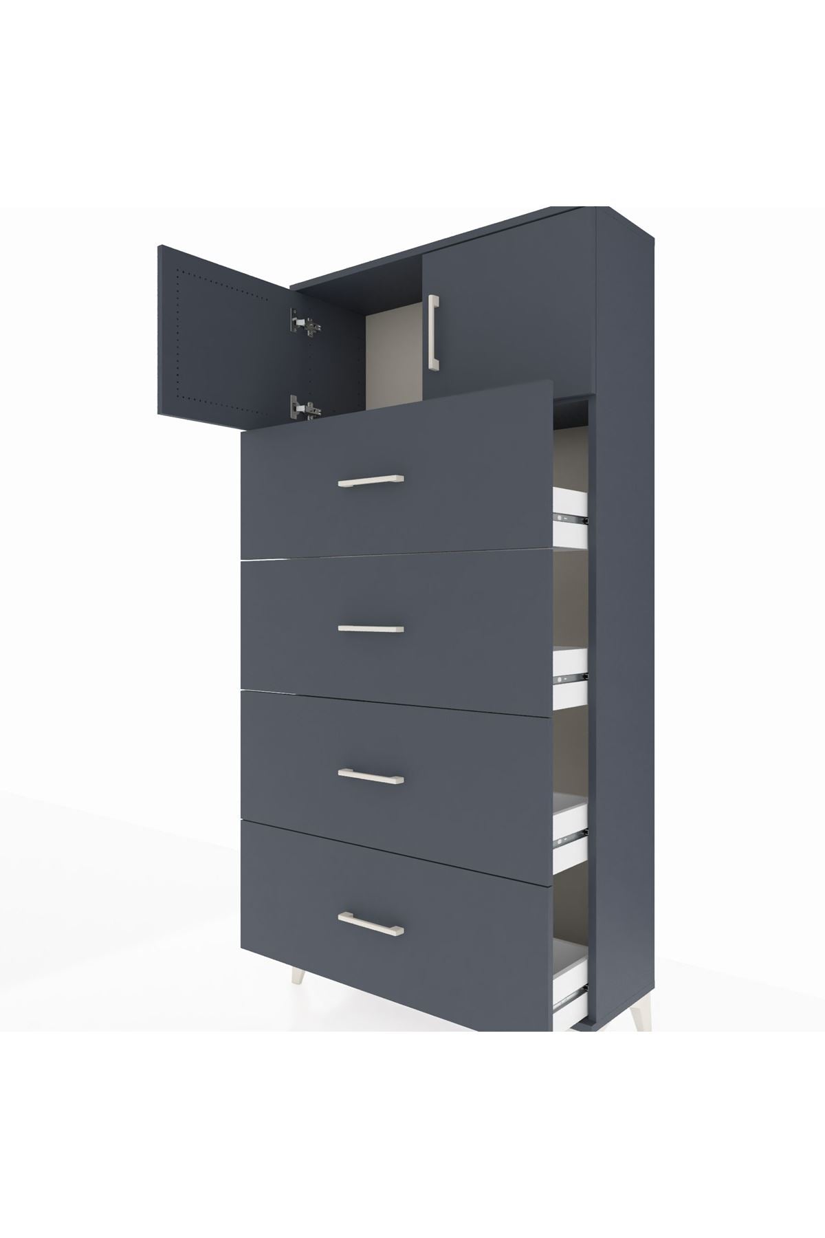 Arges Dolap Tek Raflı 4 Çekmeceli 2 Kapaklı 88x30x182 Antrasit-Antrasit