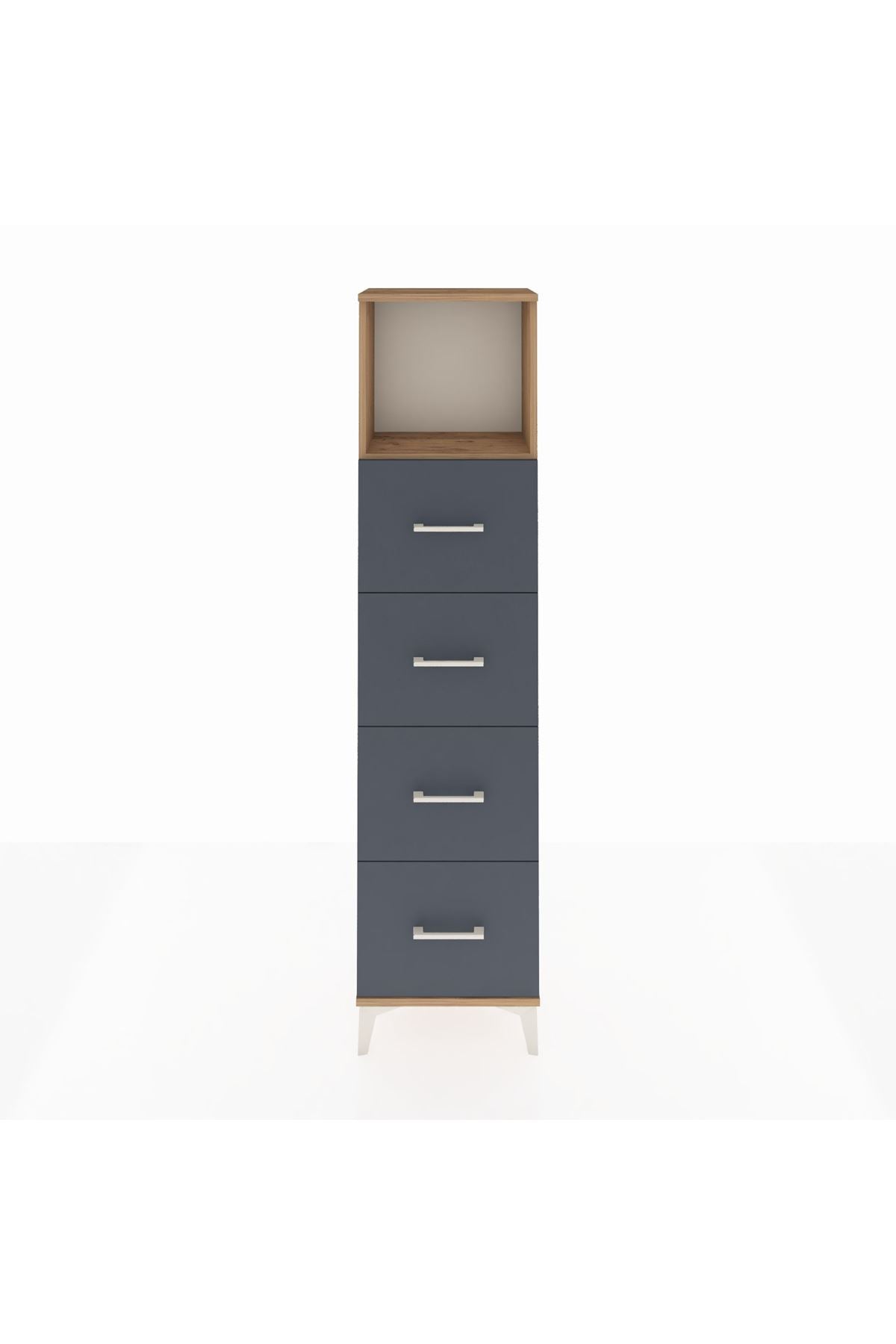 Arges Dolap Tek Raflı 4 Çekmeceli 44x30x182 Çam-Antrasit