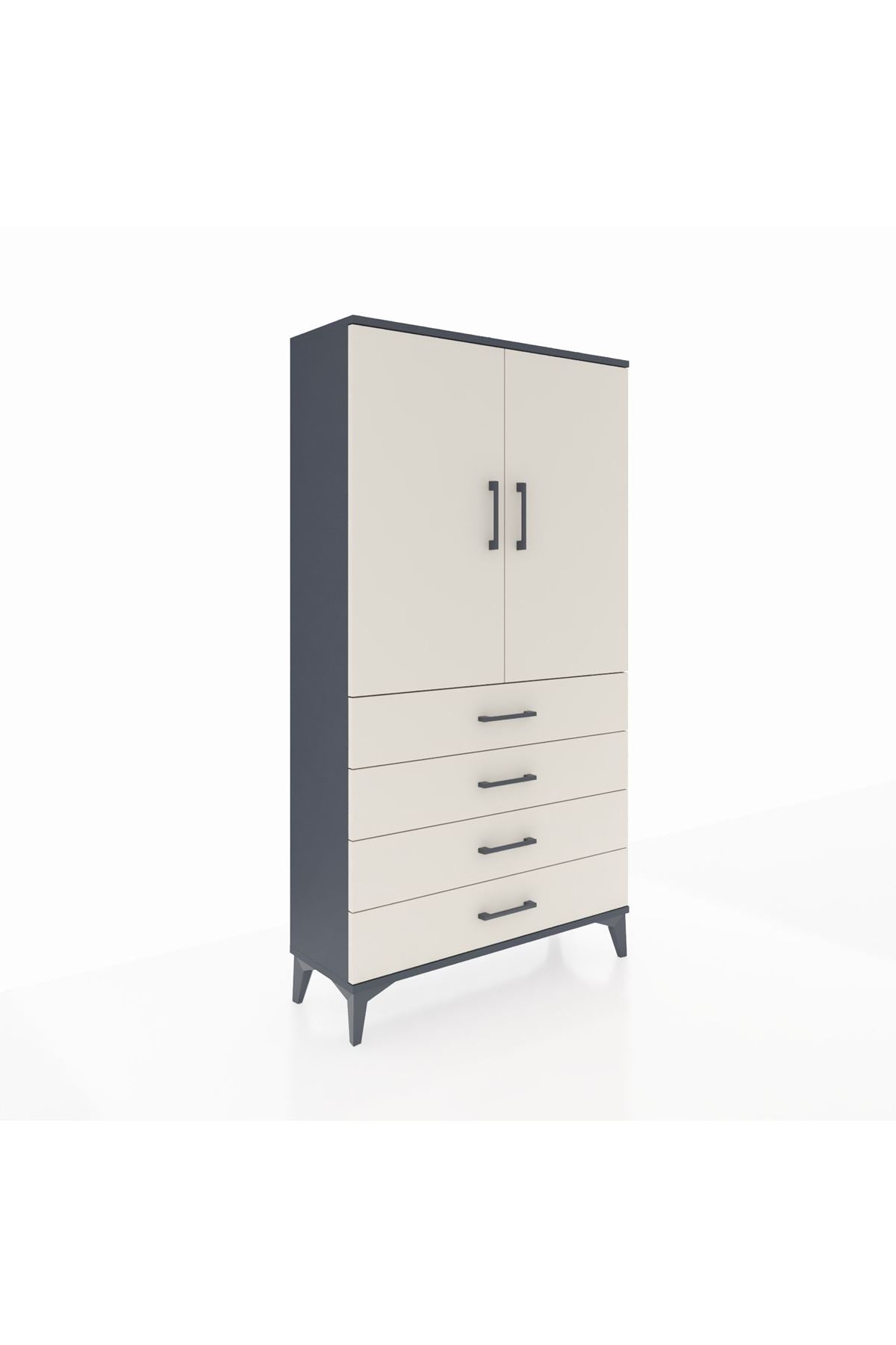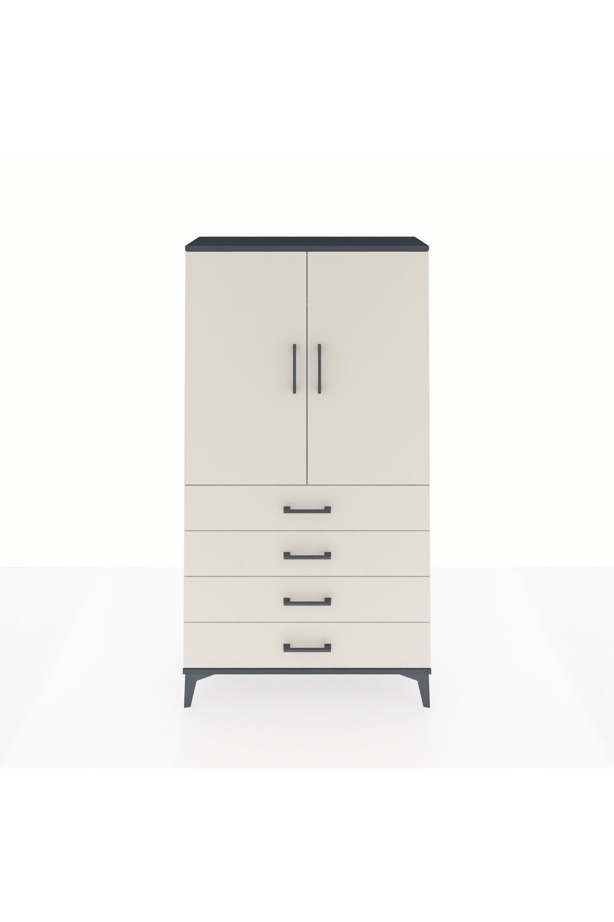 Arges Dolap Tek Raflı 4 Çekmeceli Tek Askılı 88x30x163 Antrasit-Aytaşı