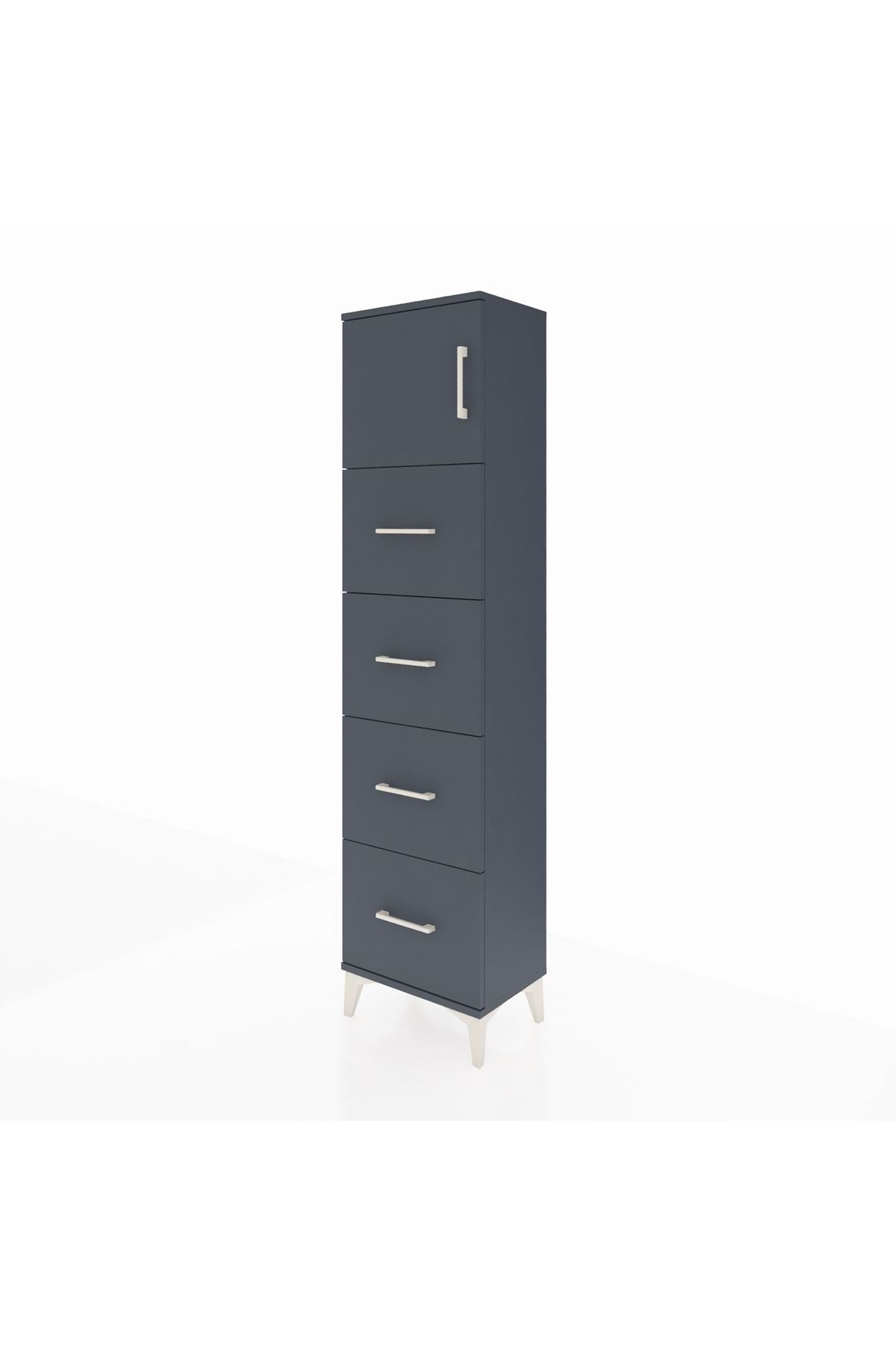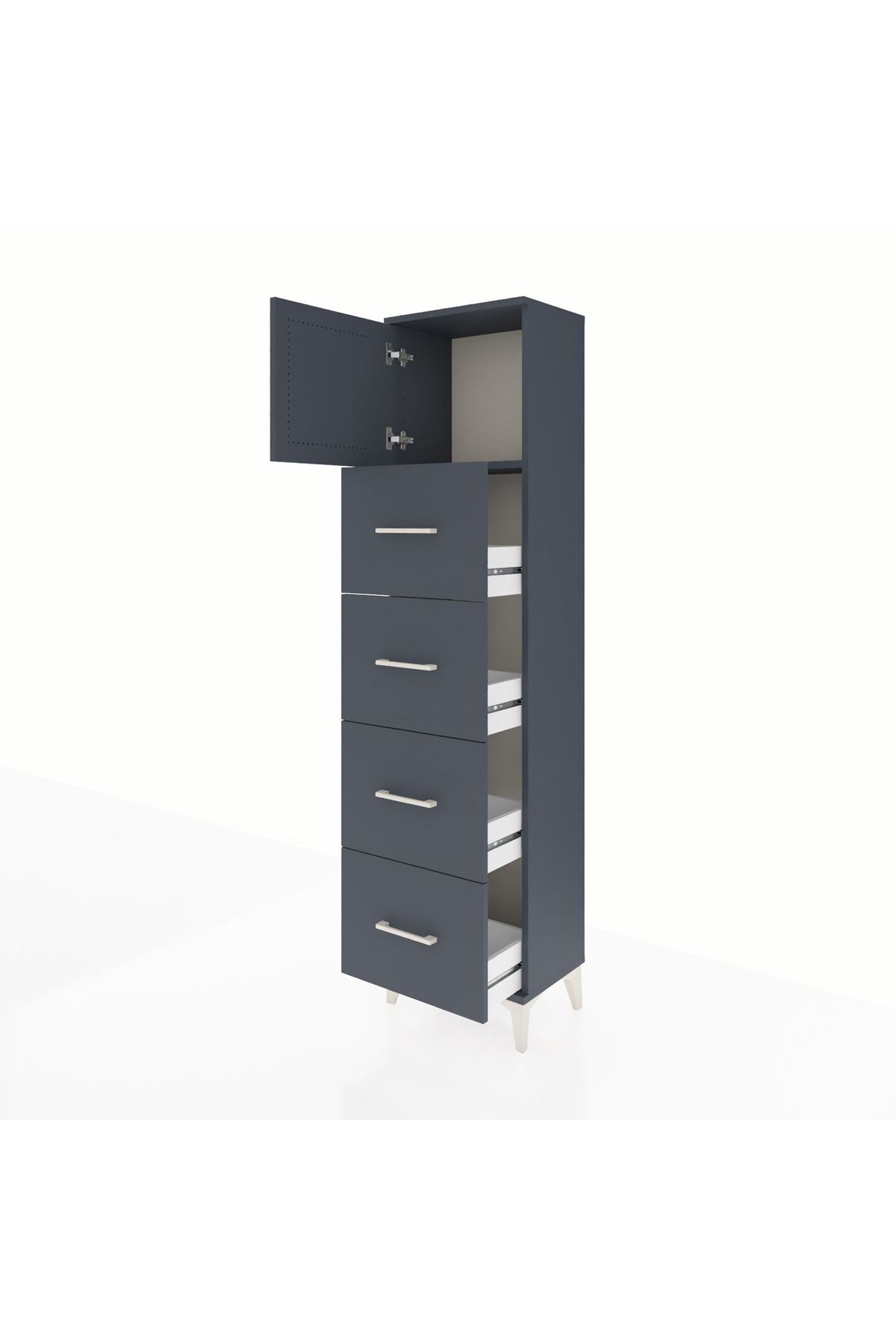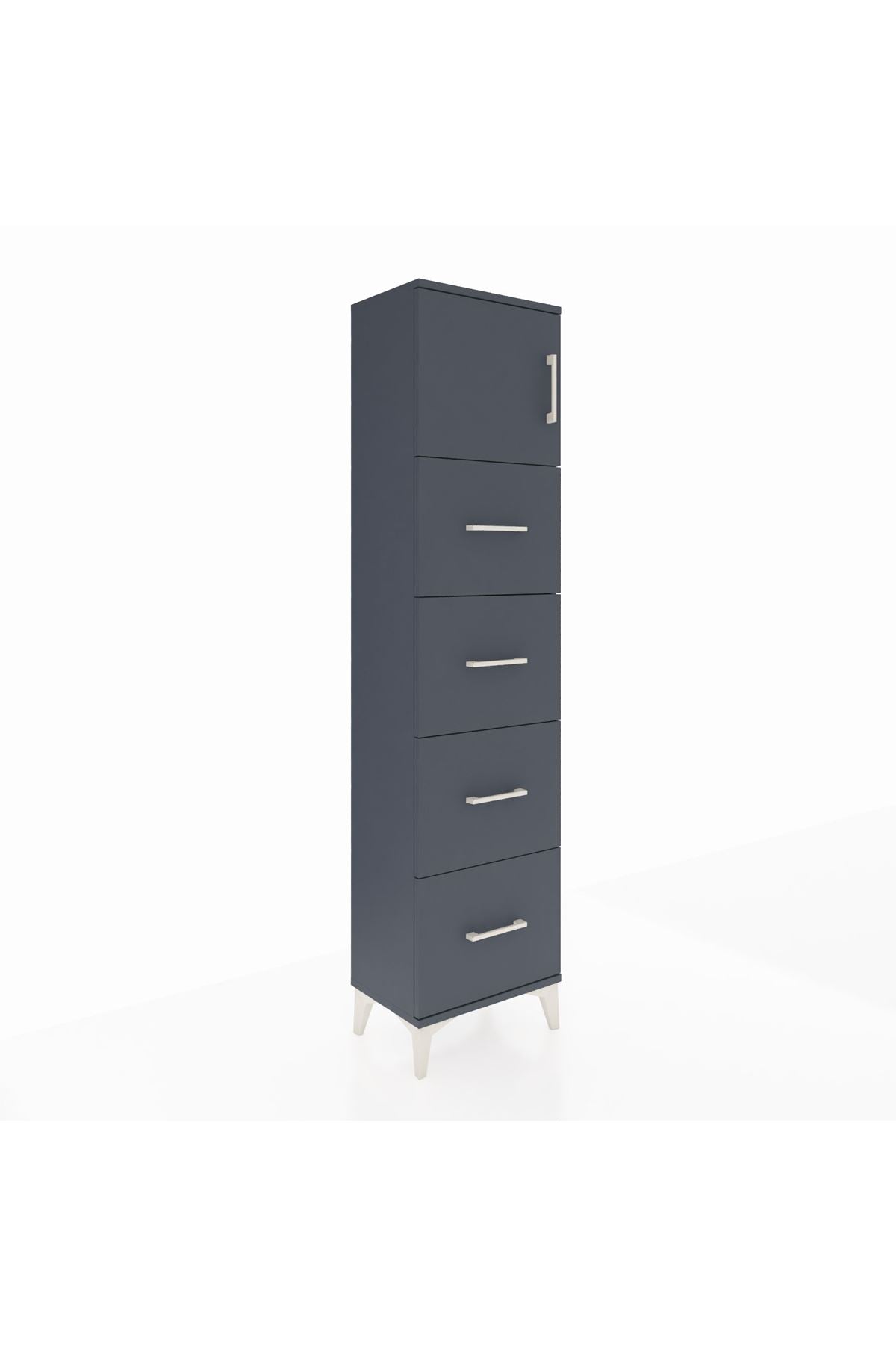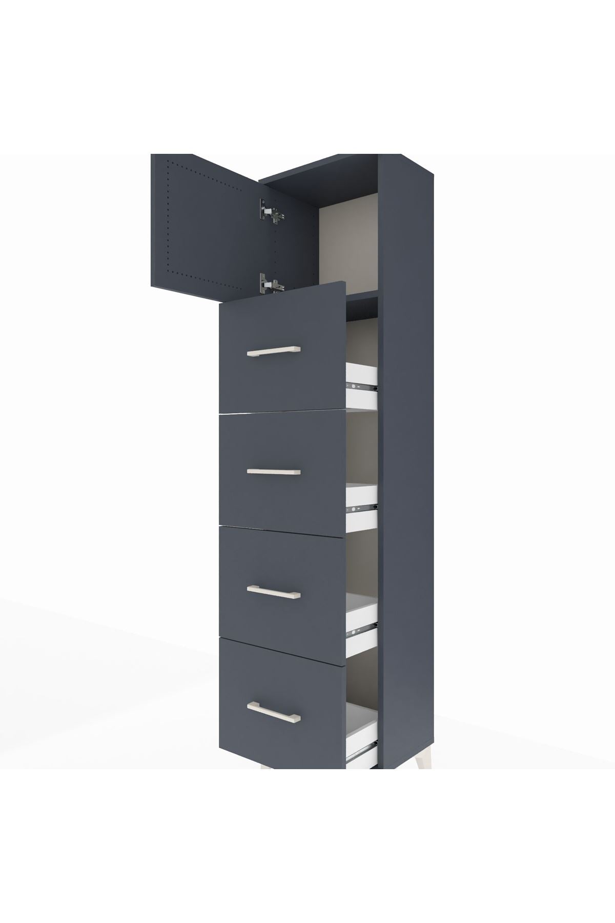 Arges Dolap Tek Raflı 4 Çekmeceli Tek Kapaklı 44x30x182 Antrasit-Antrasit