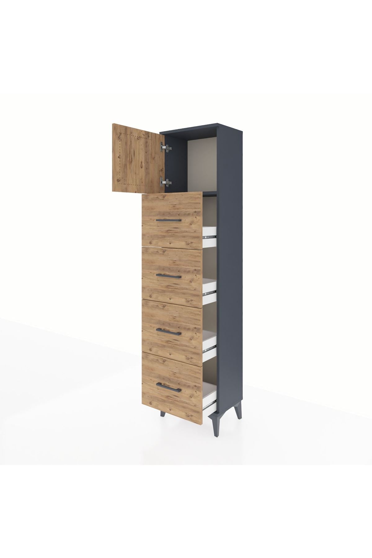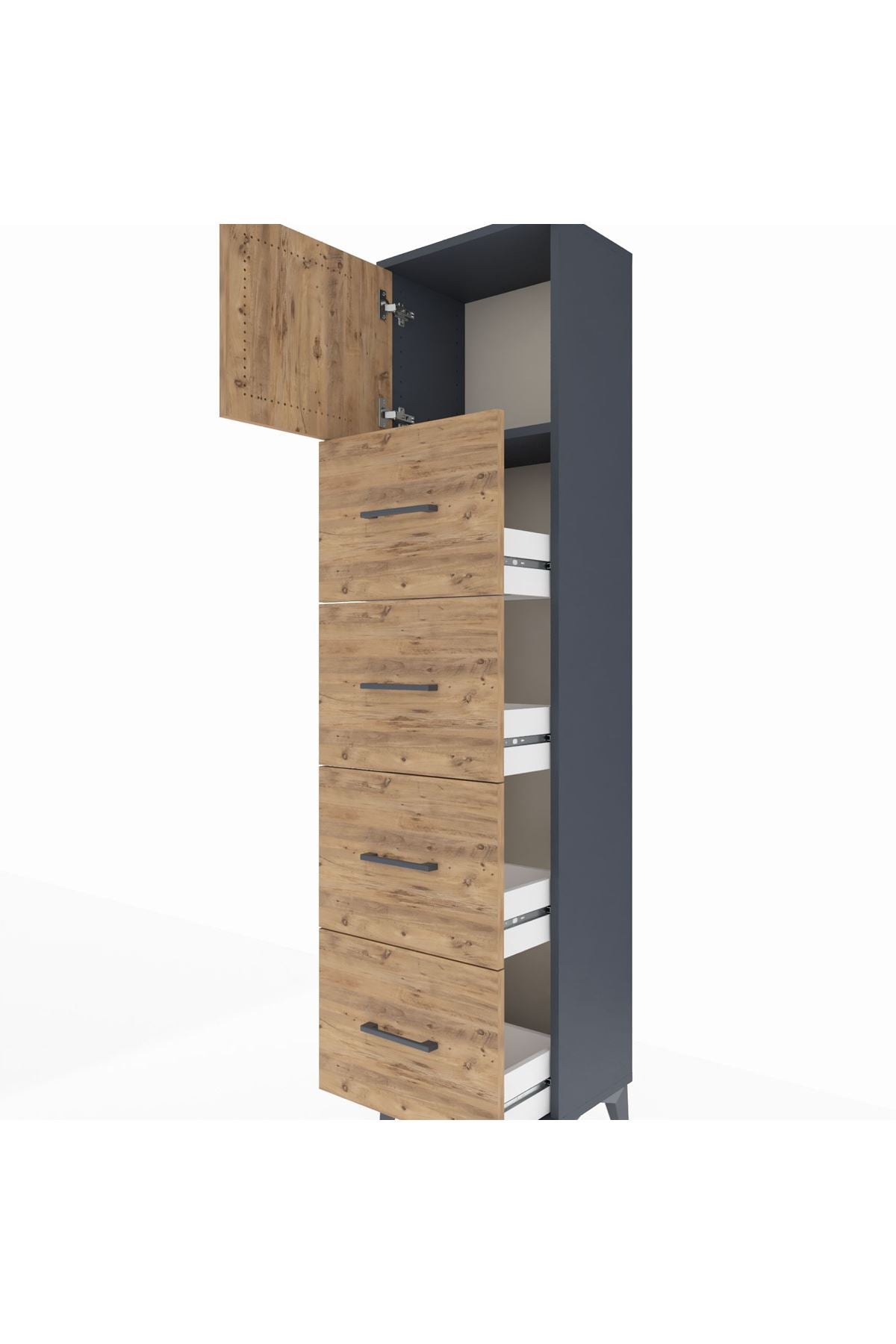Arges Dolap Tek Raflı 4 Çekmeceli Tek Kapaklı 44x30x182 Antrasit-Çam