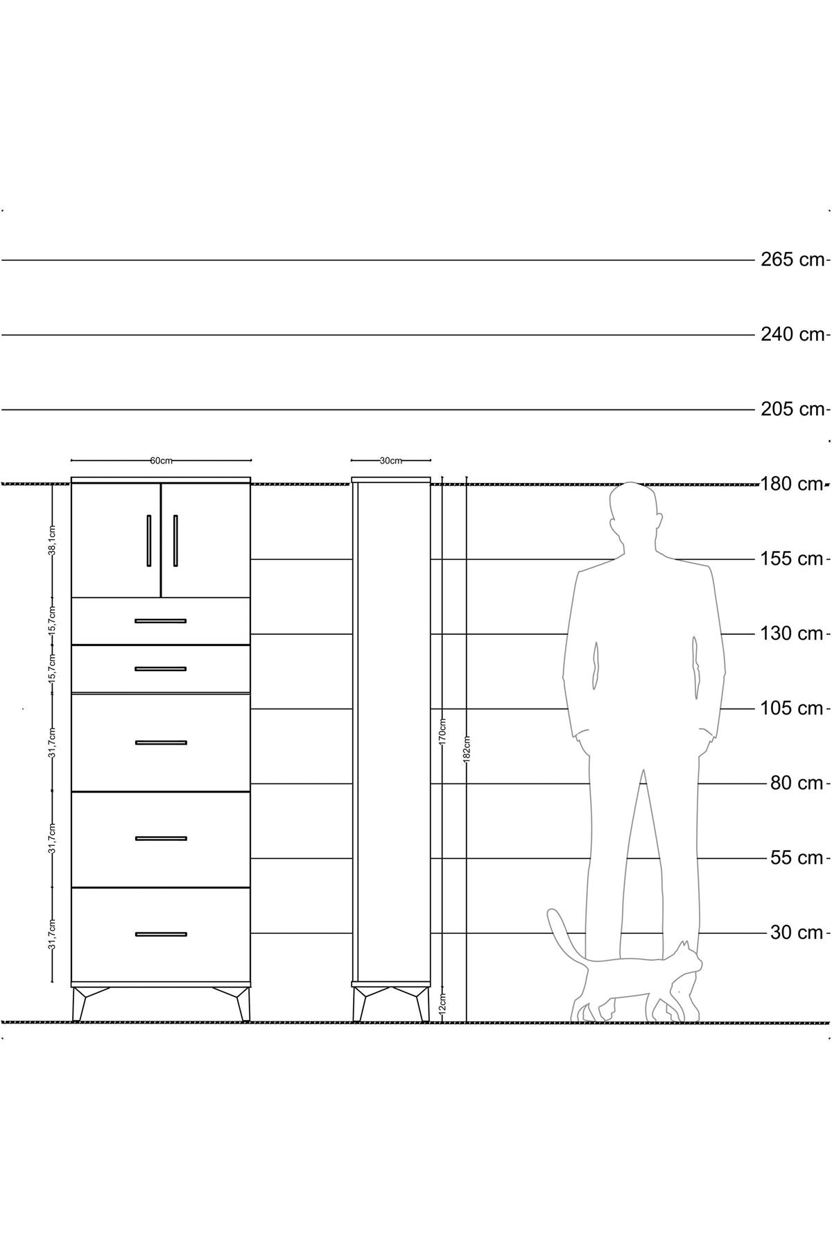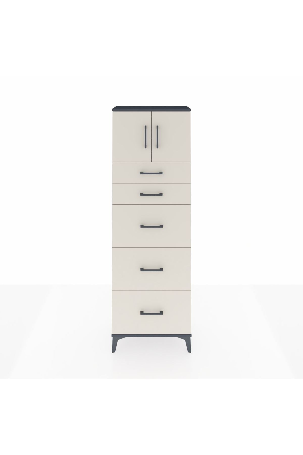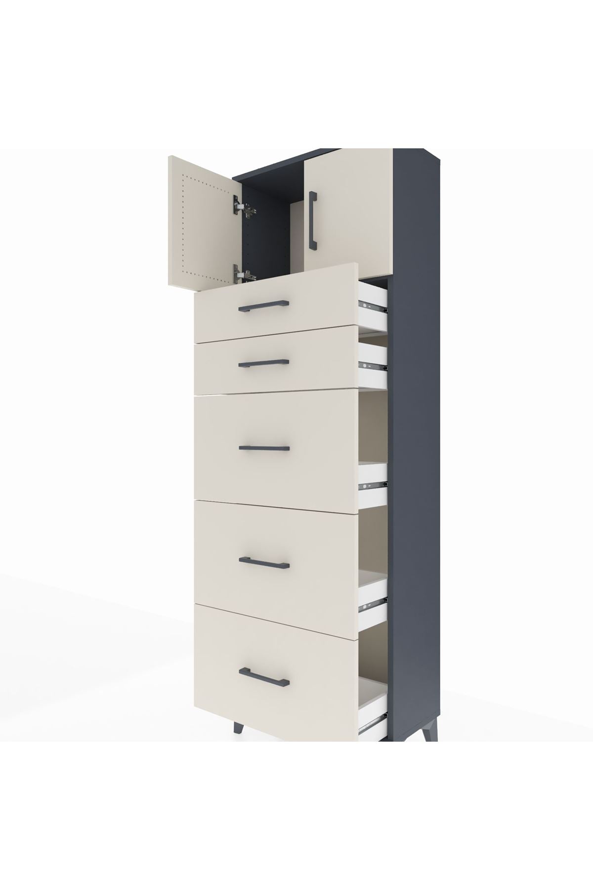 Arges Dolap Tek Raflı 5 Çekmeceli 2 Kapaklı 60x30x182 Antrasit-Aytaşı