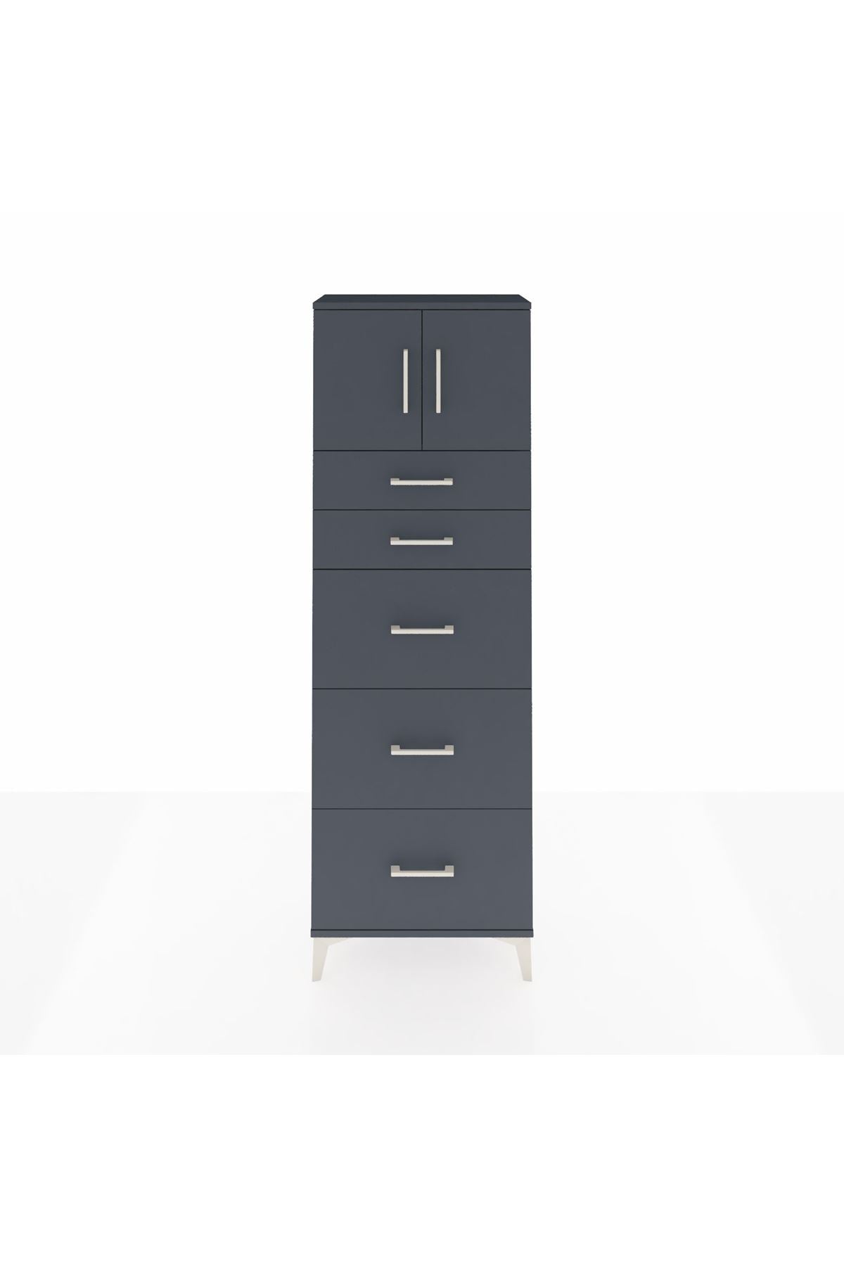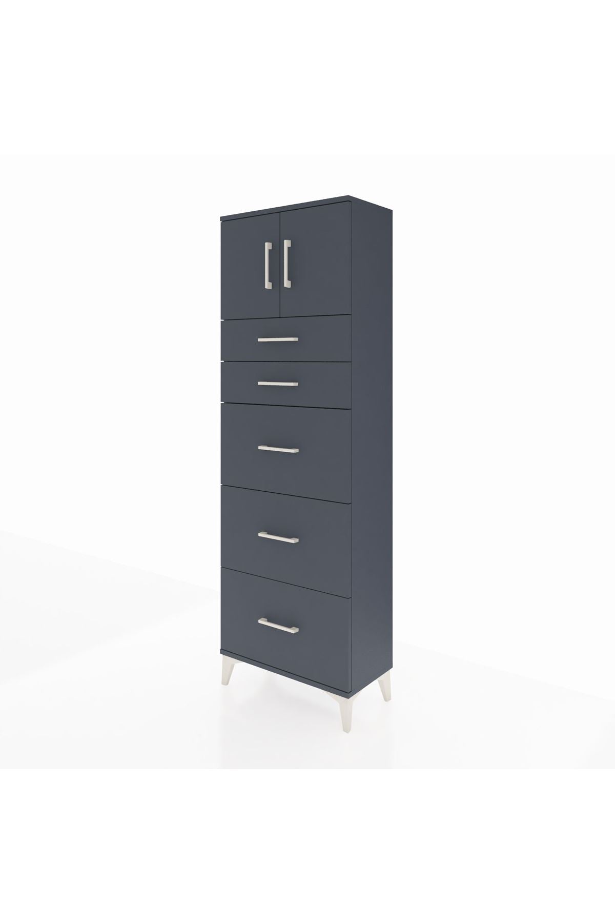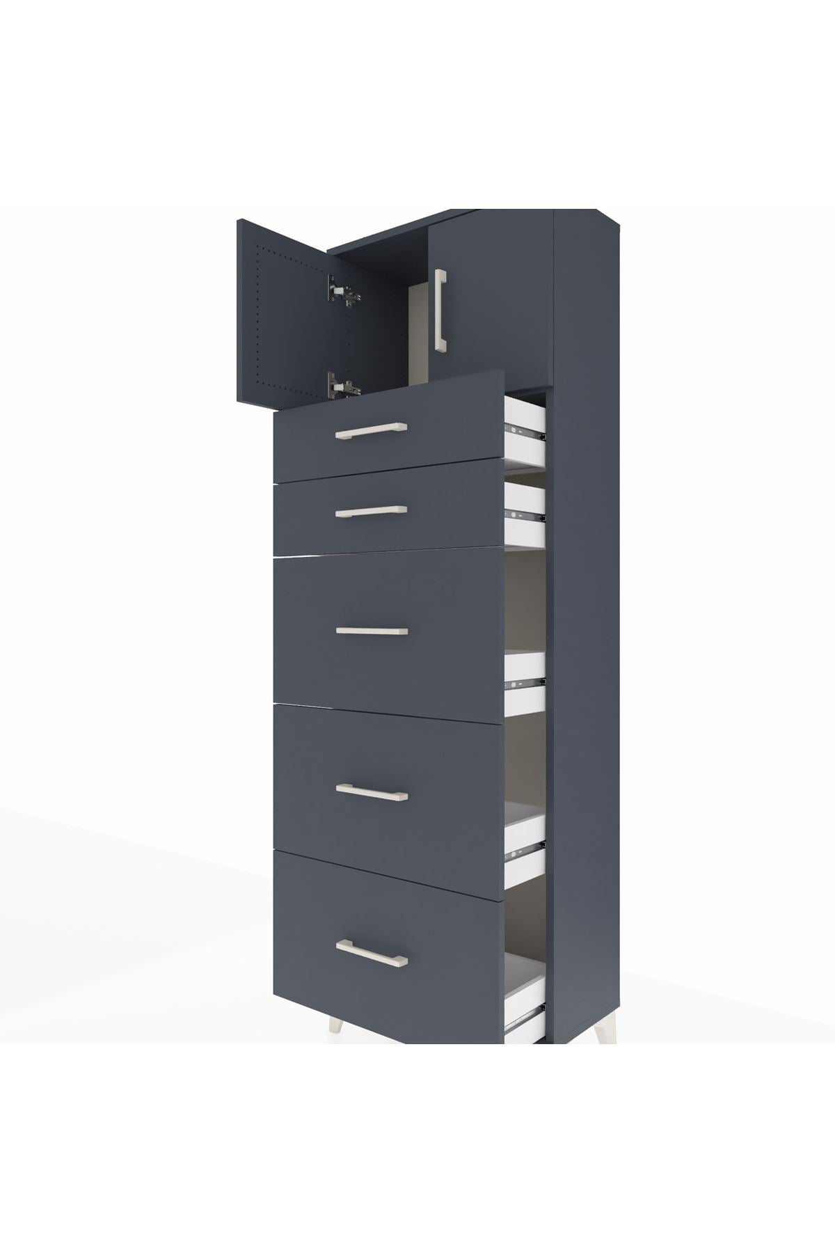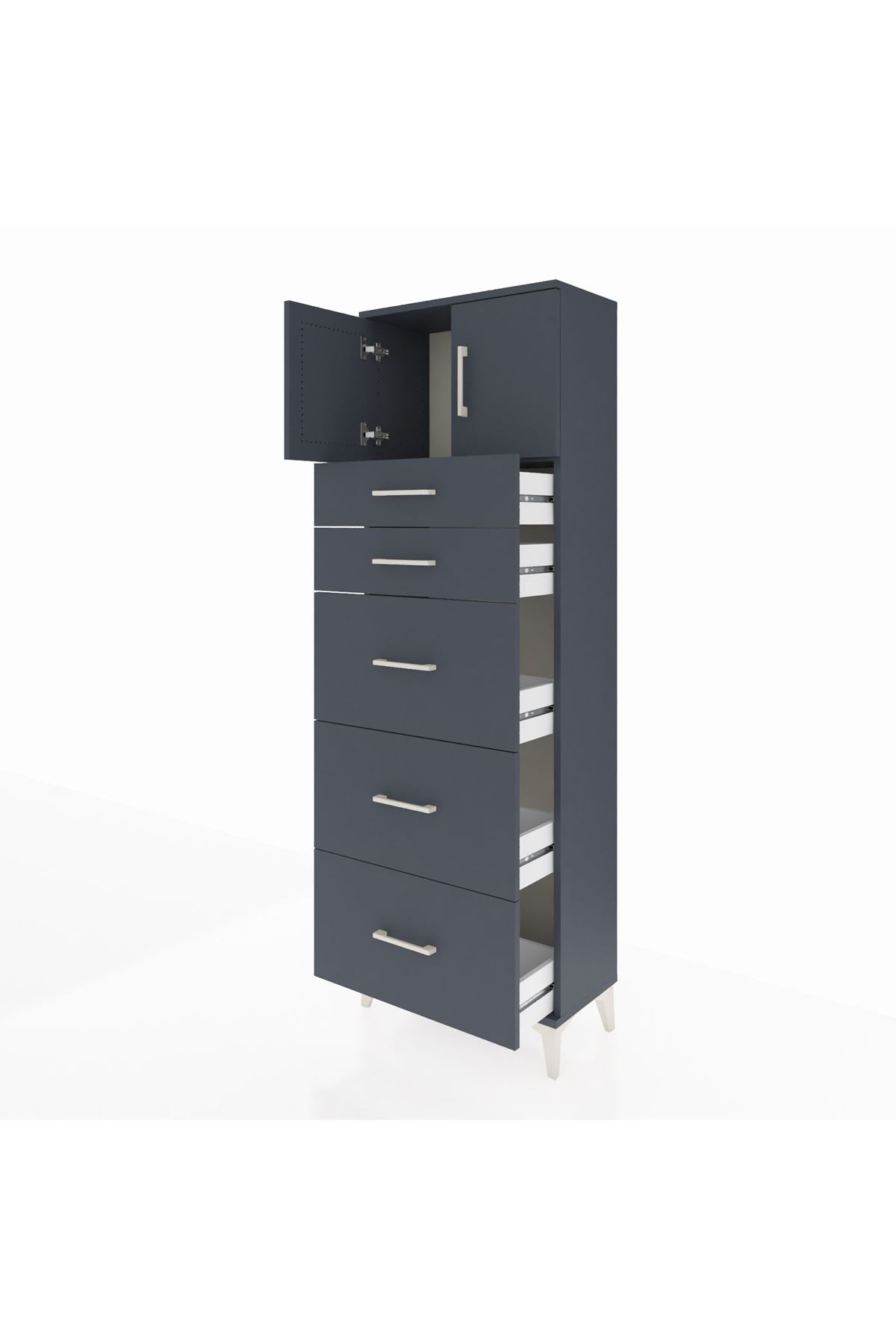 Arges Dolap Tek Raflı 5 Çekmeceli 2 Kapaklı 60x30x182 Antrasit-Antrasit