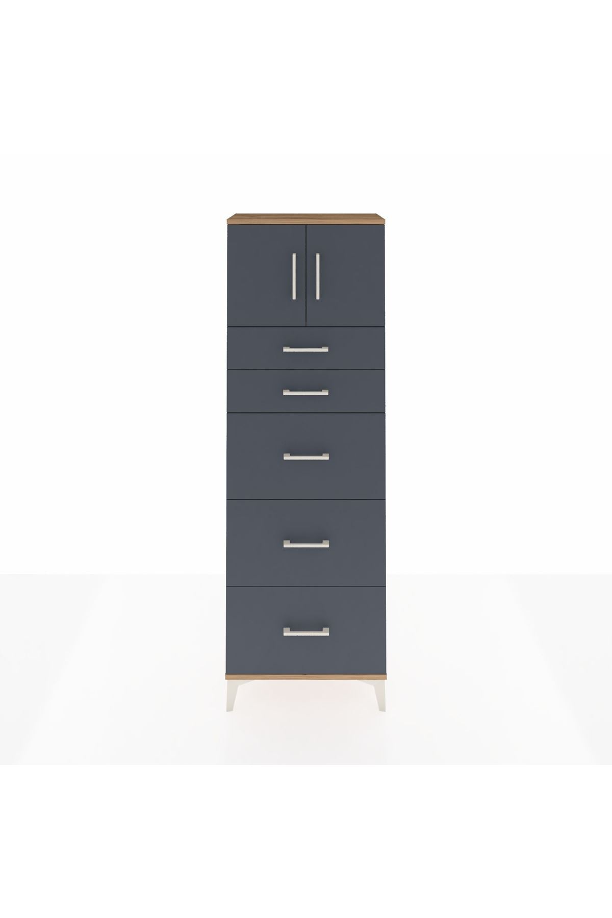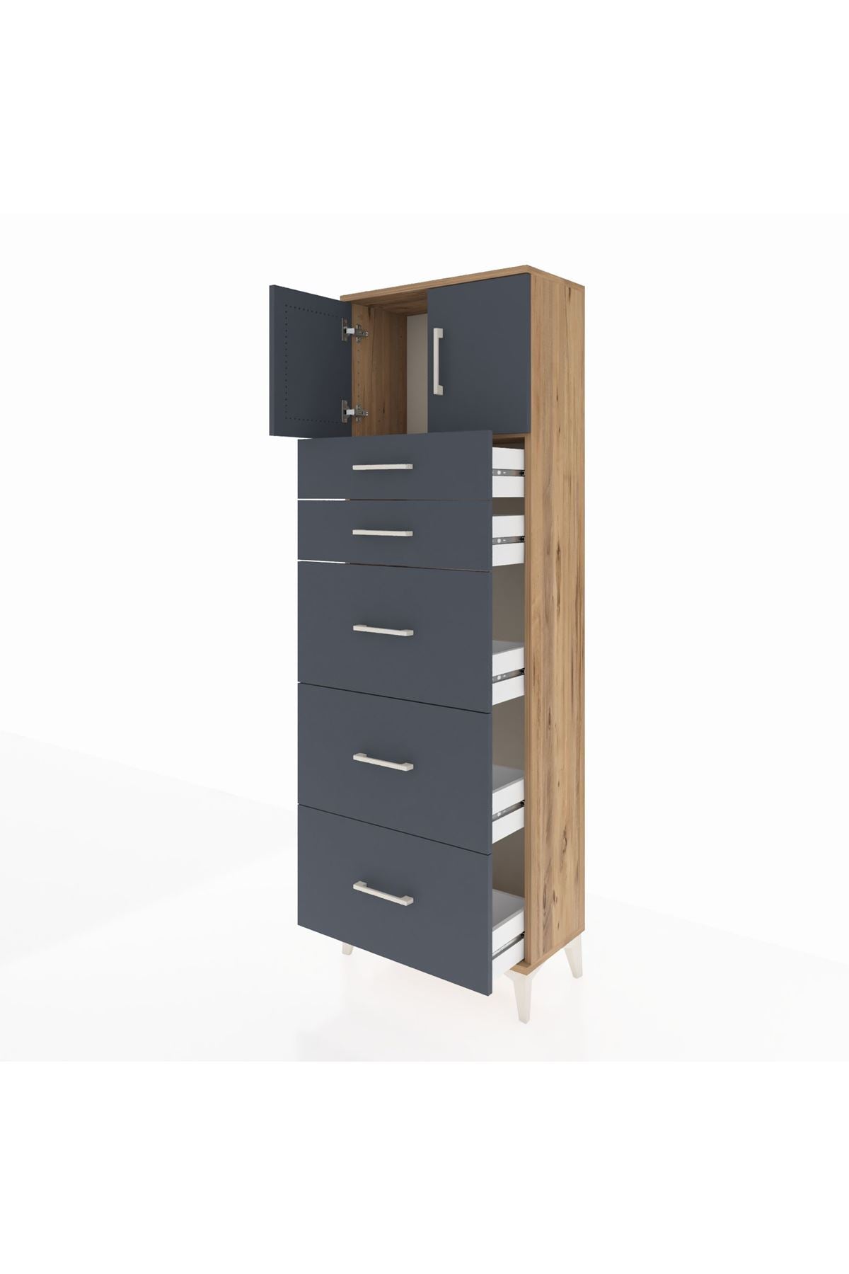 Arges Dolap Tek Raflı 5 Çekmeceli 2 Kapaklı 60x30x182 Çam-Antrasit