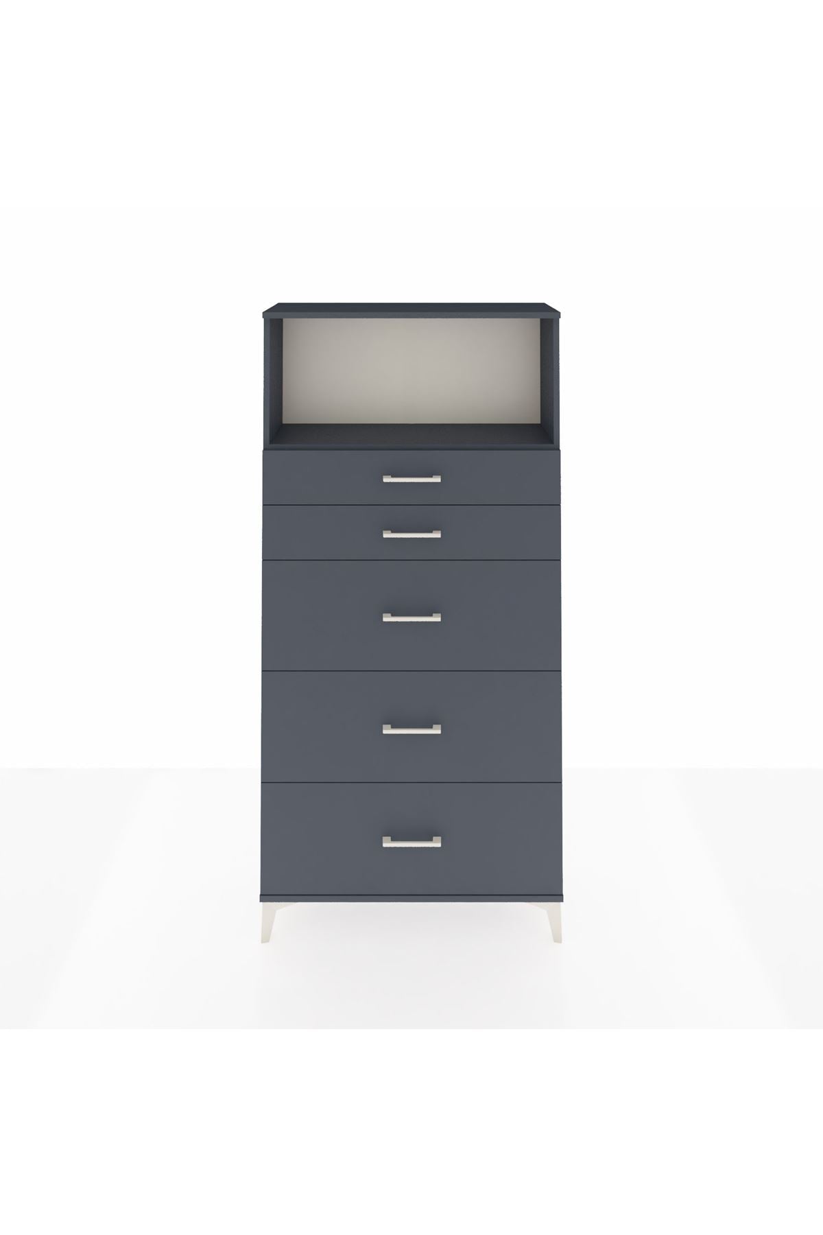 Arges Dolap Tek Raflı 5 Çekmeceli 88x30x182 Antrasit-Antrasit