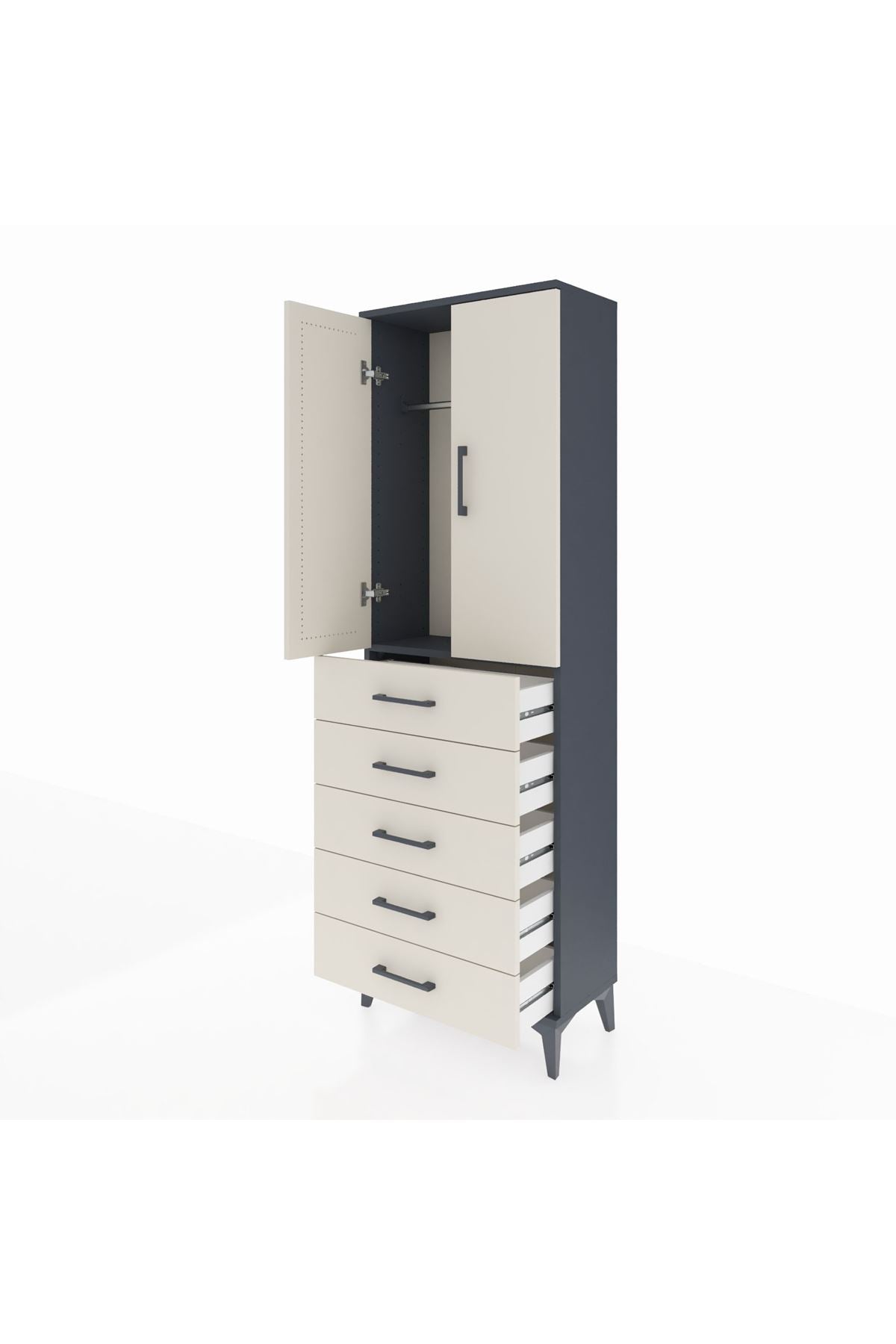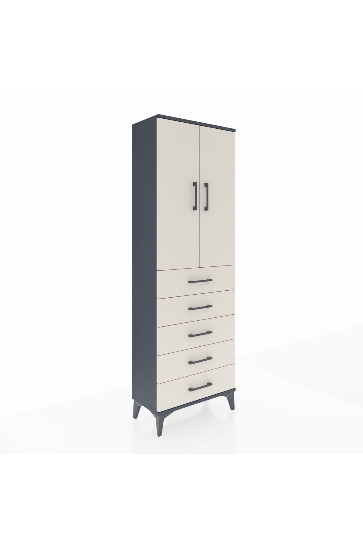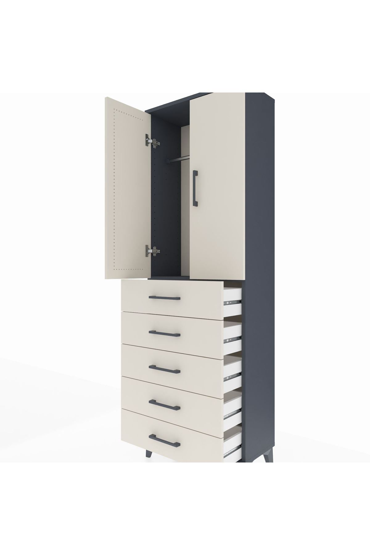 Arges Dolap Tek Raflı 5 Çekmeceli Tek Askılı 60x30x182 Antrasit-Aytaşı