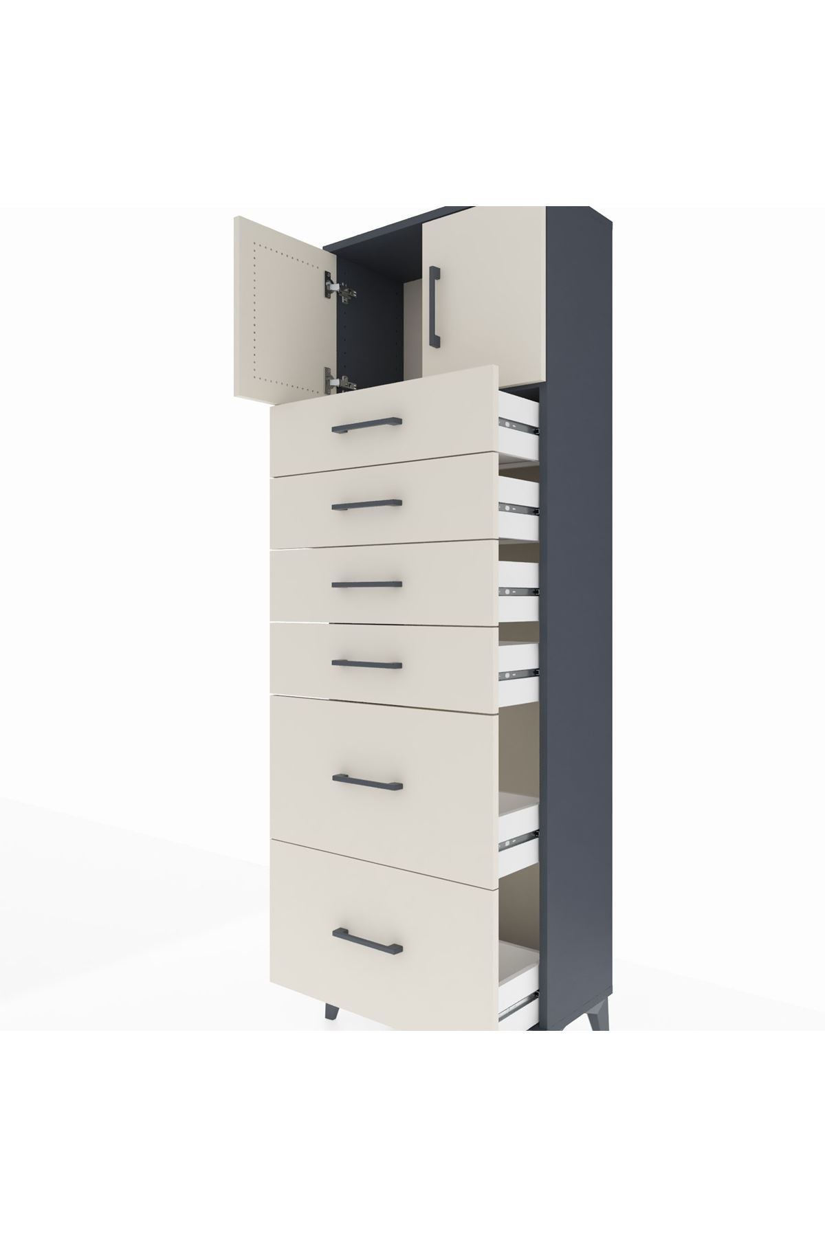 Arges Dolap Tek Raflı 6 Çekmeceli 2 Kapaklı 60x30x182 Antrasit-Aytaşı