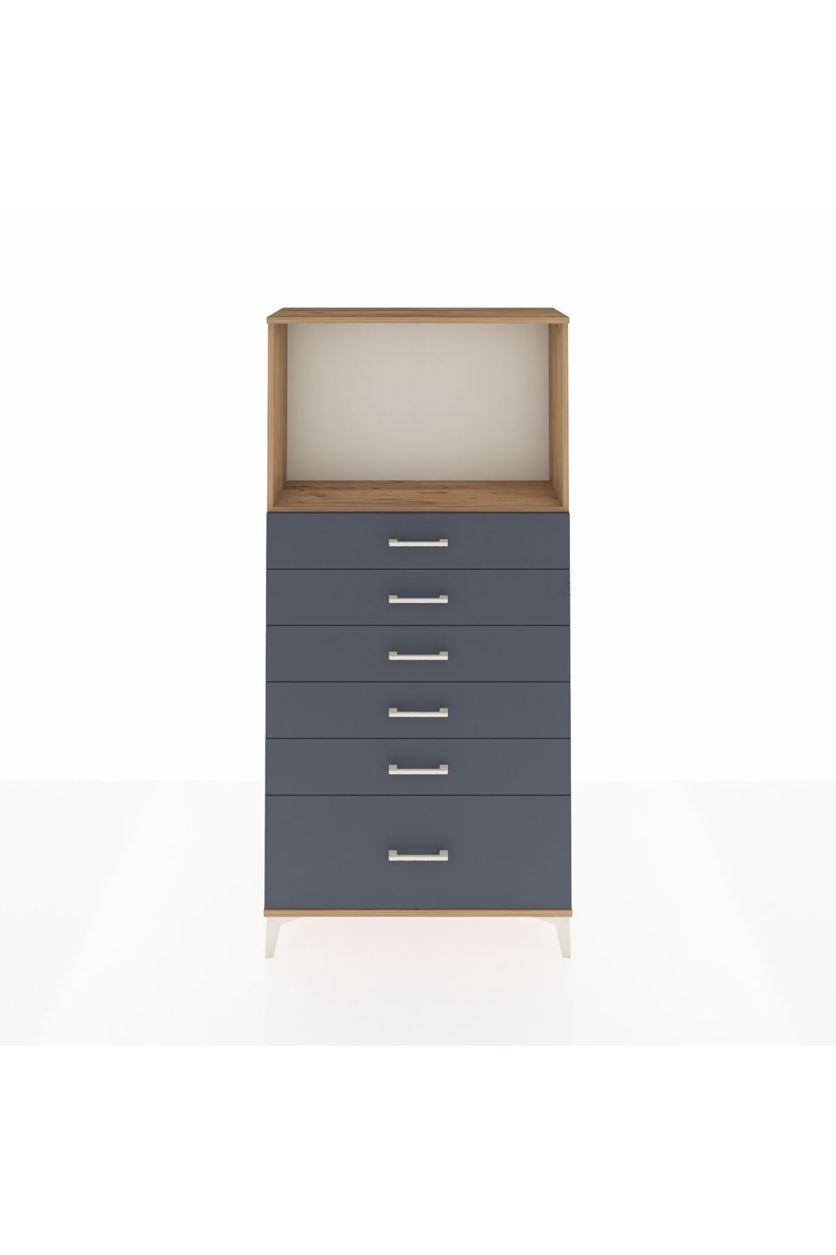 Arges Dolap Tek Raflı 6 Çekmeceli 88x30x182 Çam-Antrasit