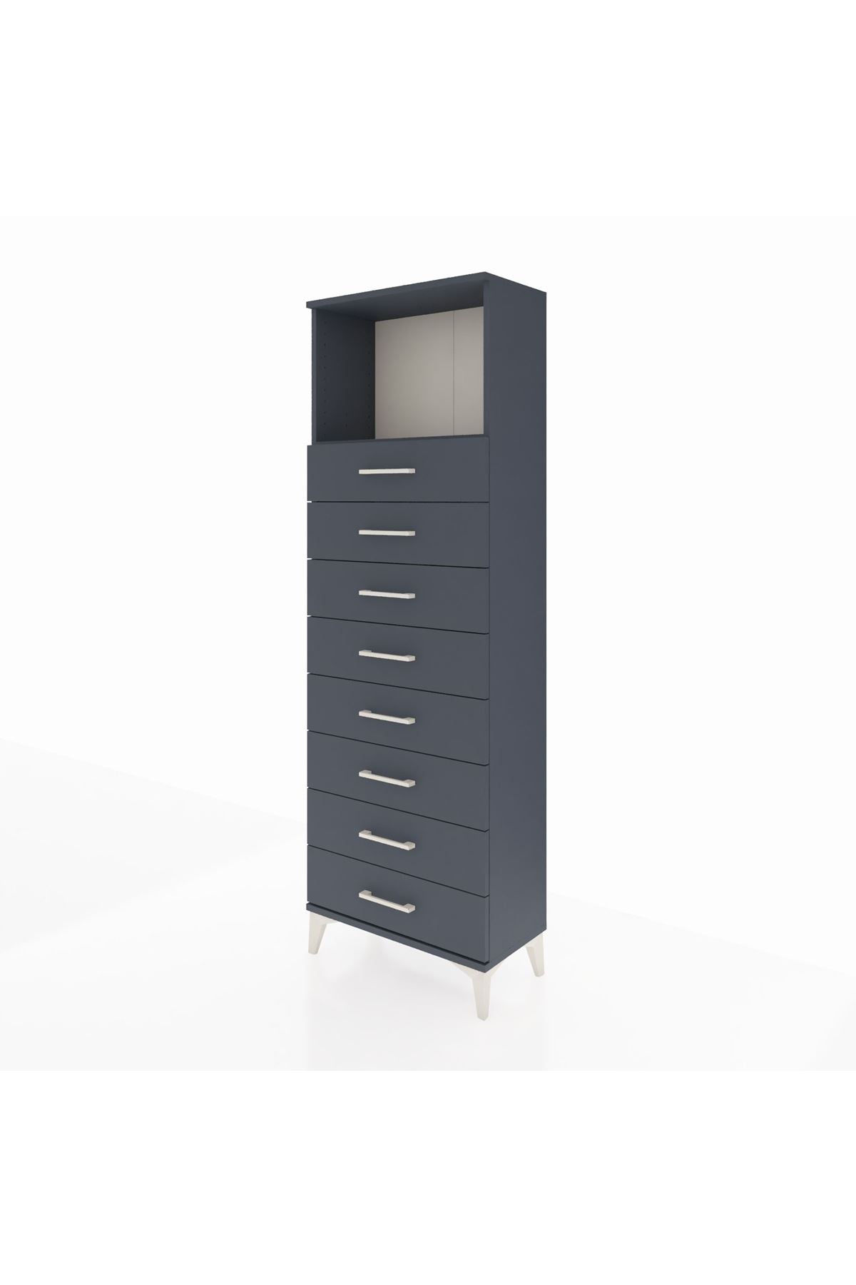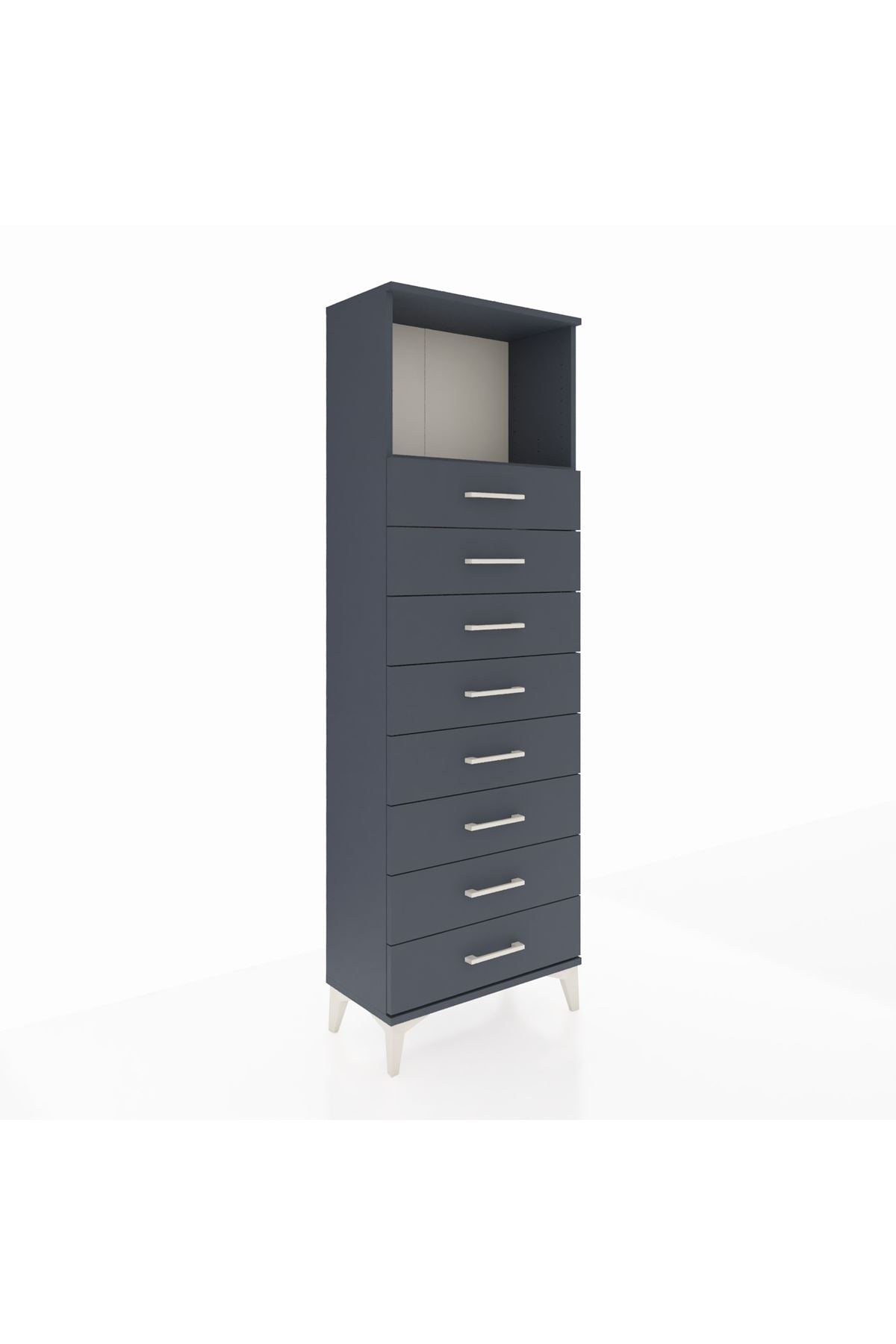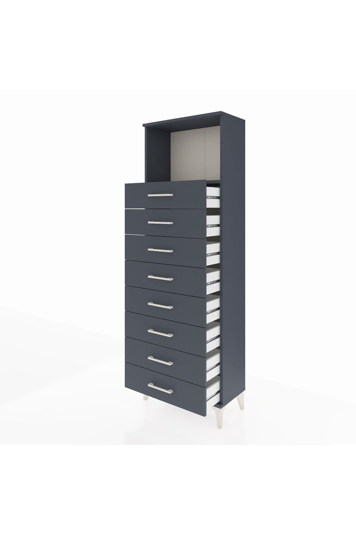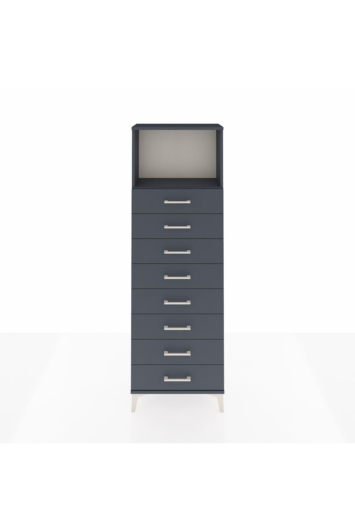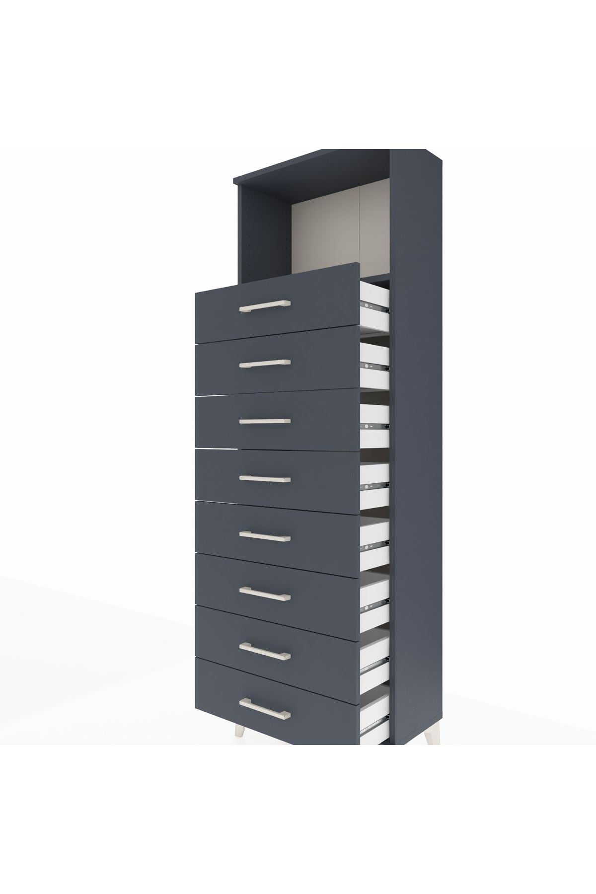 Arges Dolap Tek Raflı 8 Çekmeceli 60x30x182 Antrasit-Antrasit