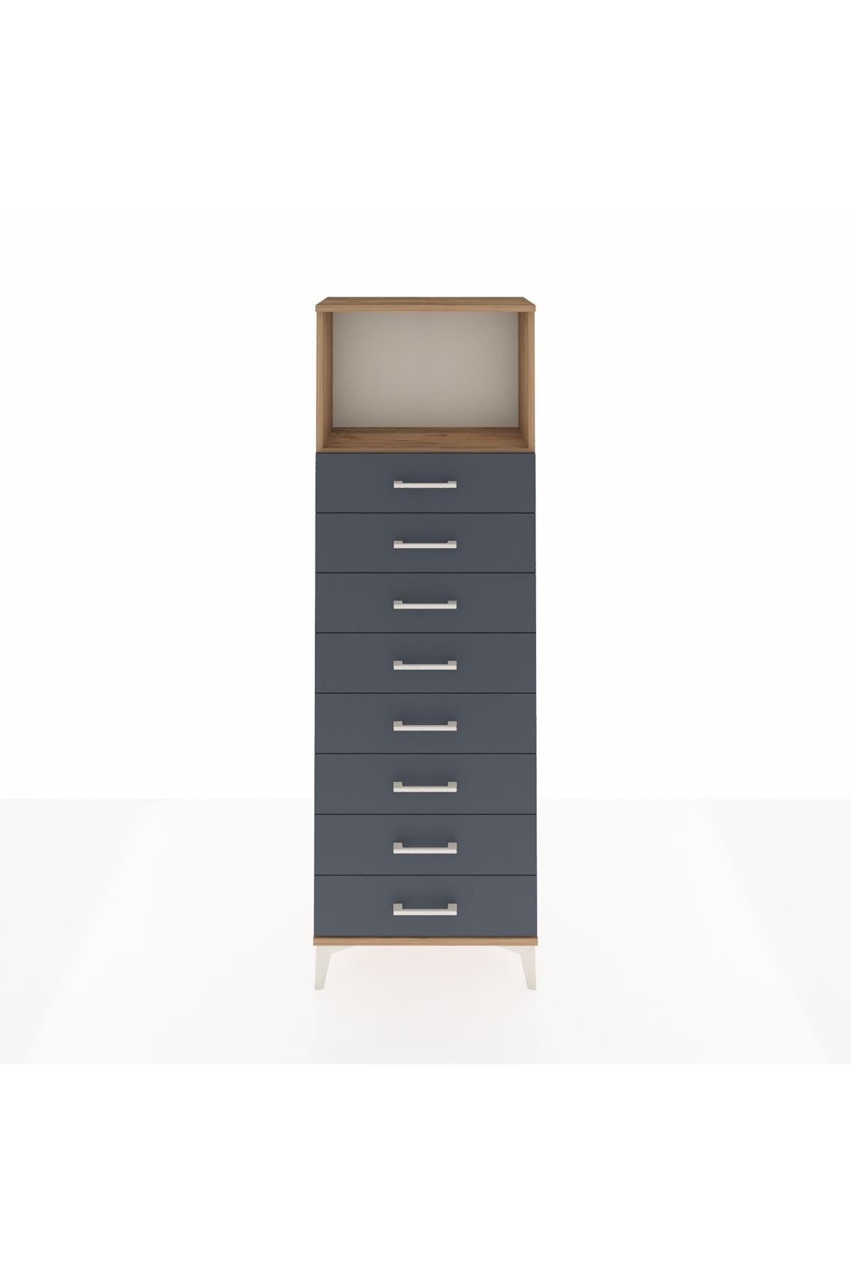 Arges Dolap Tek Raflı 8 Çekmeceli 60x30x182 Çam-Antrasit