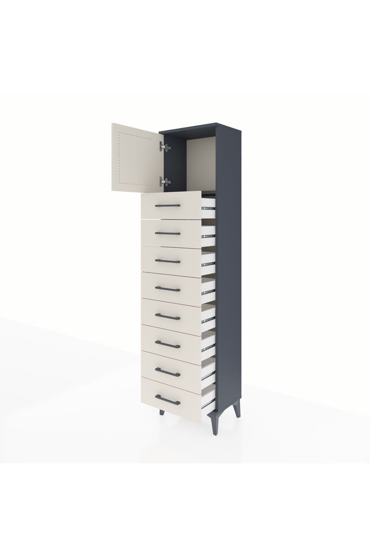 Arges Dolap Tek Raflı 8 Çekmeceli Tek Kapaklı 44x30x182 Antrasit-Aytaşı