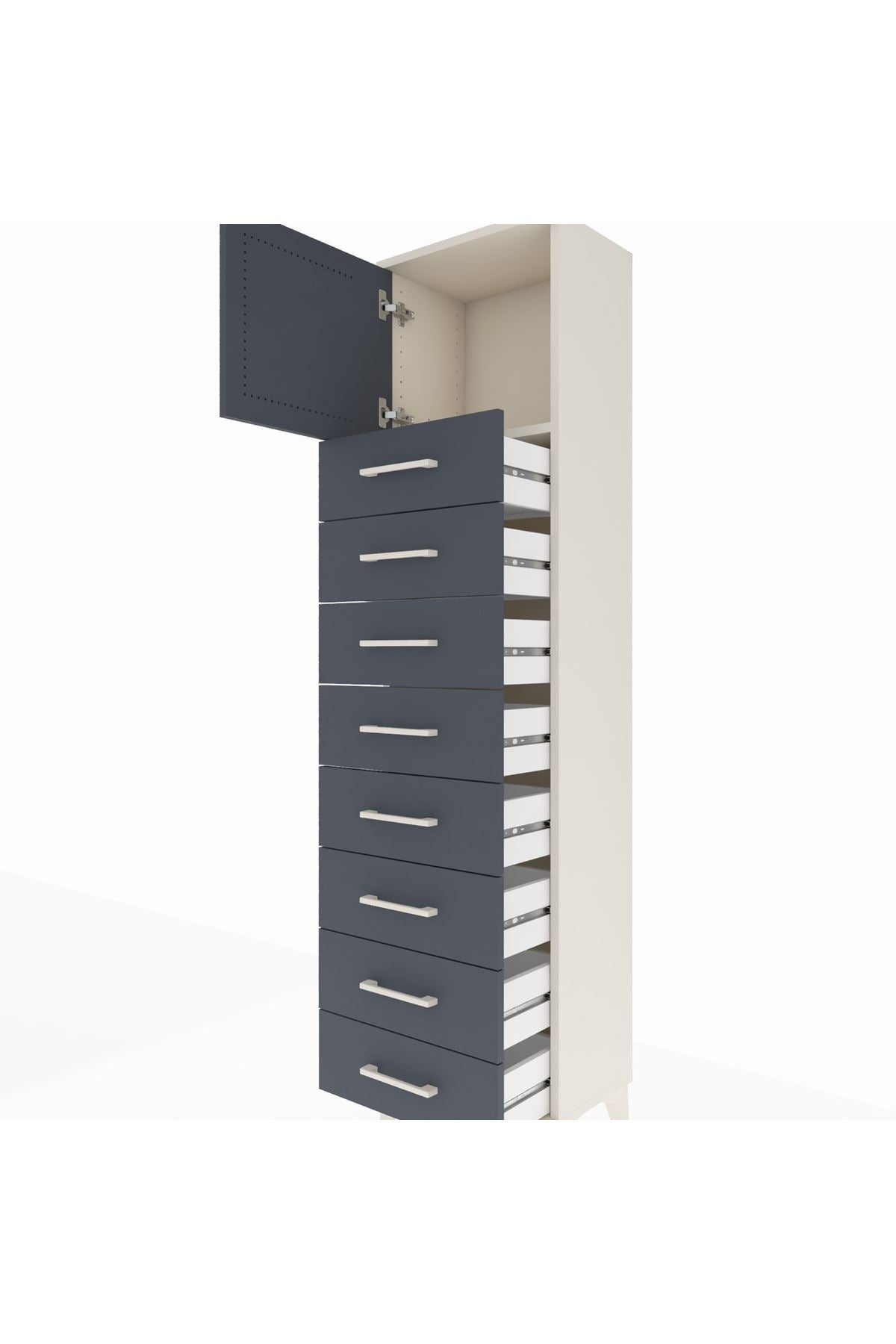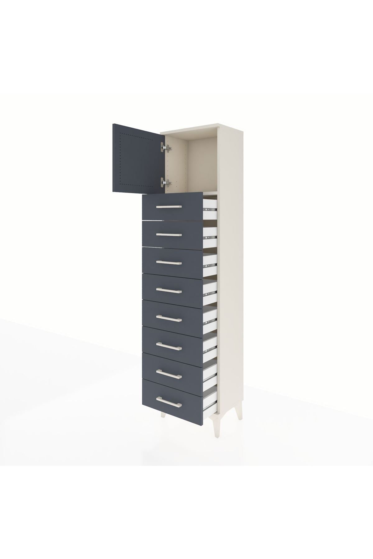 Arges Dolap Tek Raflı 8 Çekmeceli Tek Kapaklı 44x30x182 Aytaşı-Antrasit
