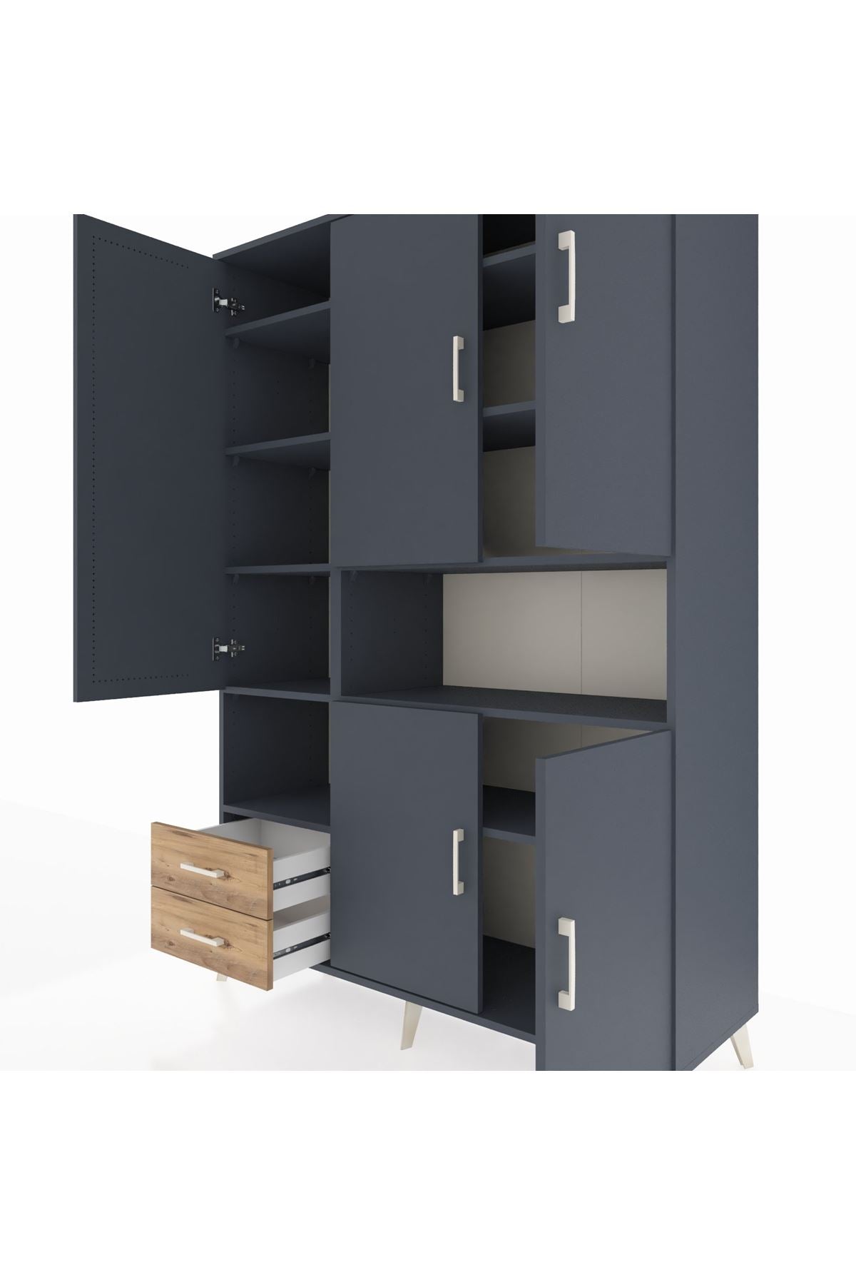 Hyperion Dolap 10 Raflı 2 Çekmeceli 5 Kapaklı 132x44x195 Antrasit-Antrasit/Çam