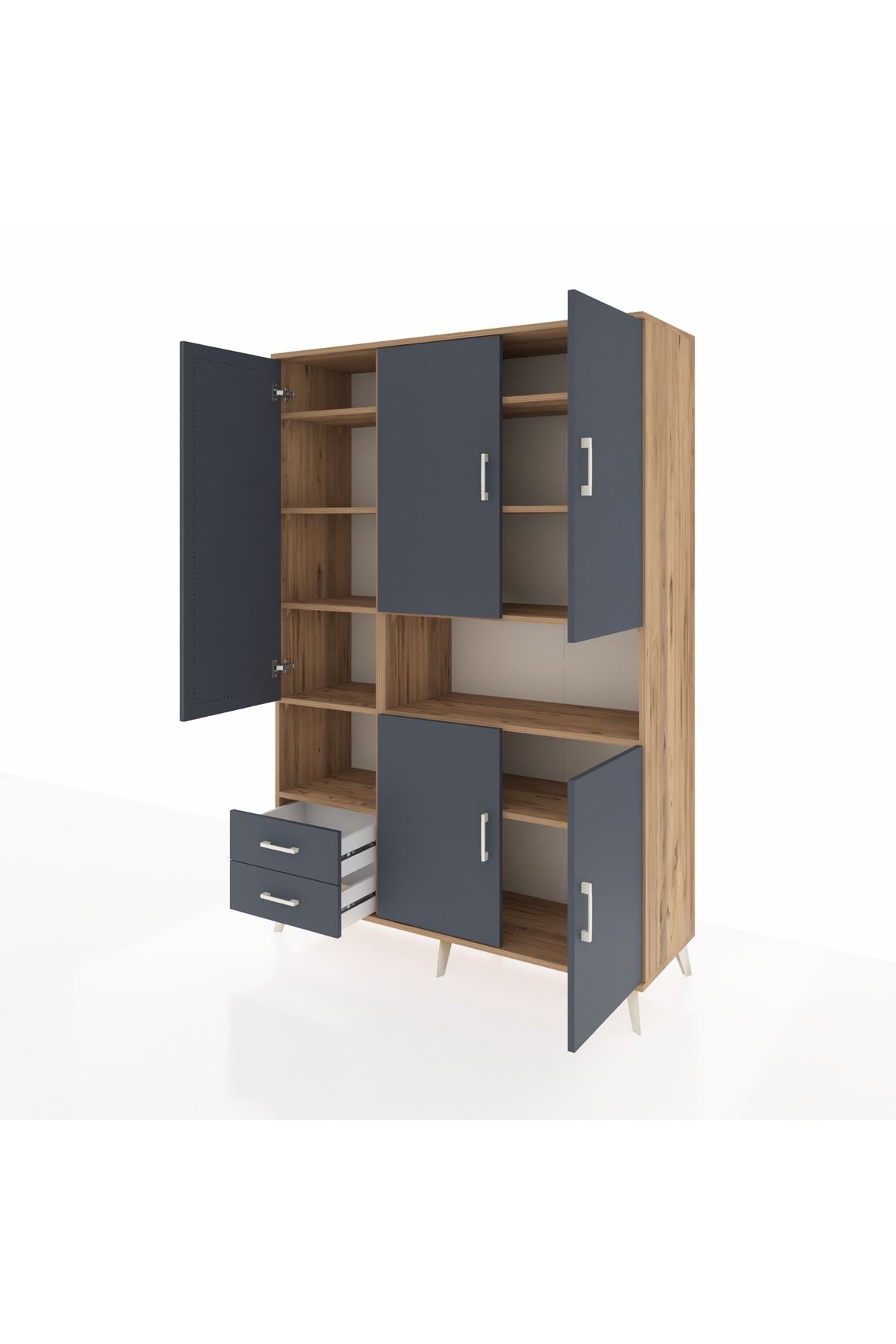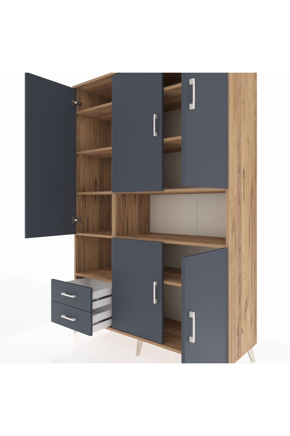 Hyperion Dolap 10 Raflı 2 Çekmeceli 5 Kapaklı 132x44x195 Çam-Antrasit/Antrasit