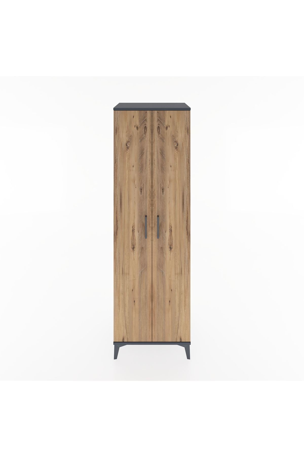 Hyperion Dolap 3 Raflı 2 Kapaklı Tek Askılı 60x44x195 Antrasit-Çam