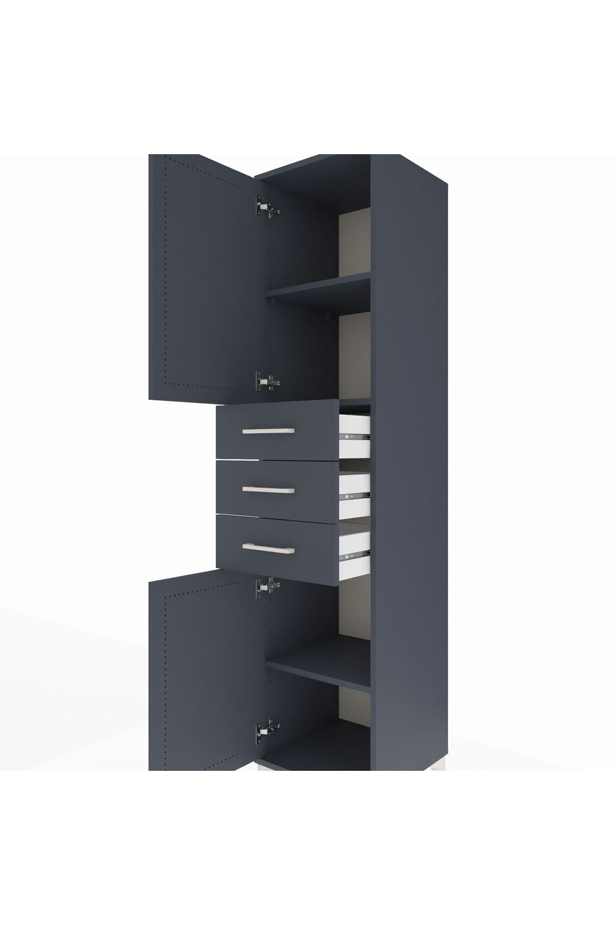 Hyperion Dolap 3 Raflı 3 Çekmeceli 2 Kapaklı 44x44x195 Antrasit-Antrasit