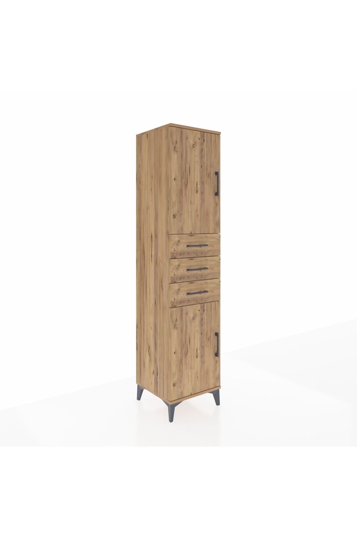 Hyperion Dolap 3 Raflı 3 Çekmeceli 2 Kapaklı 44x44x195 Çam-Çam